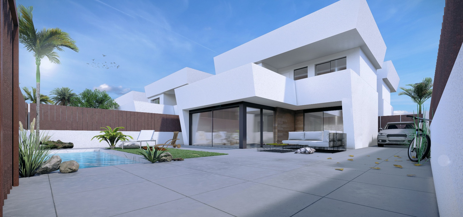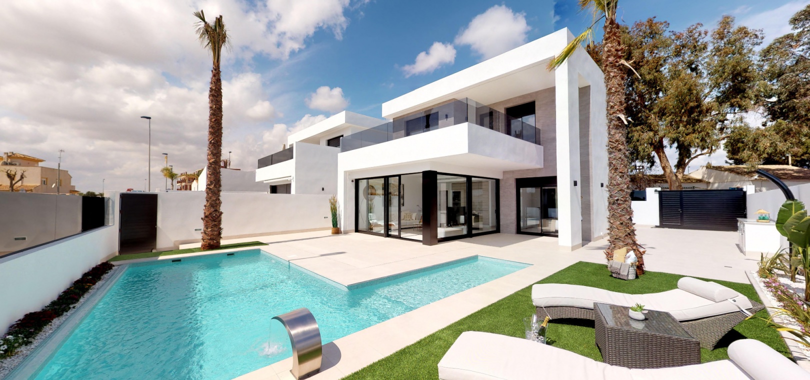 Neu gebaute freistehende Villen im modernen Stil mit 3 Schlafzimmern und 3,5 Schlafzimmern im Nebur-Stil mit privaten Swimmingpools in Roldan, Torre Pacheco, Murcia.