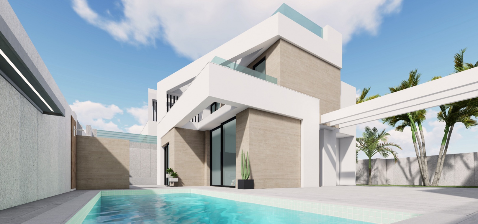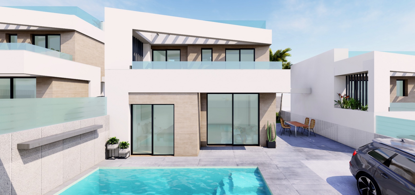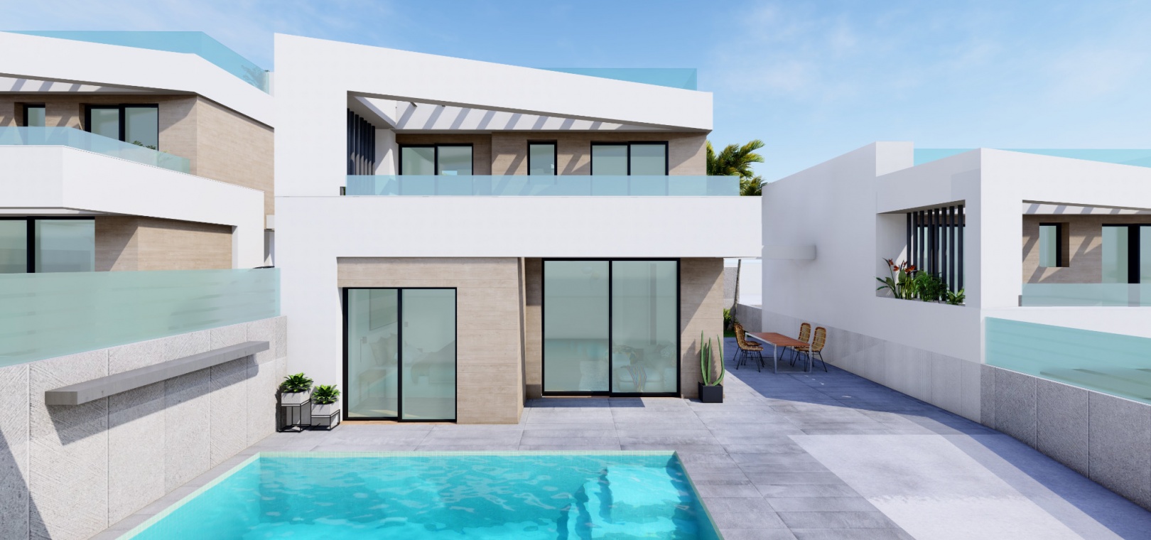 Neu gebaute, freistehende Villa mit 3 Schlafzimmern und 3 Bädern und privatem Pool in Res Villas de Don Tomas, El Galan, Villamartin, Costa Blanca.