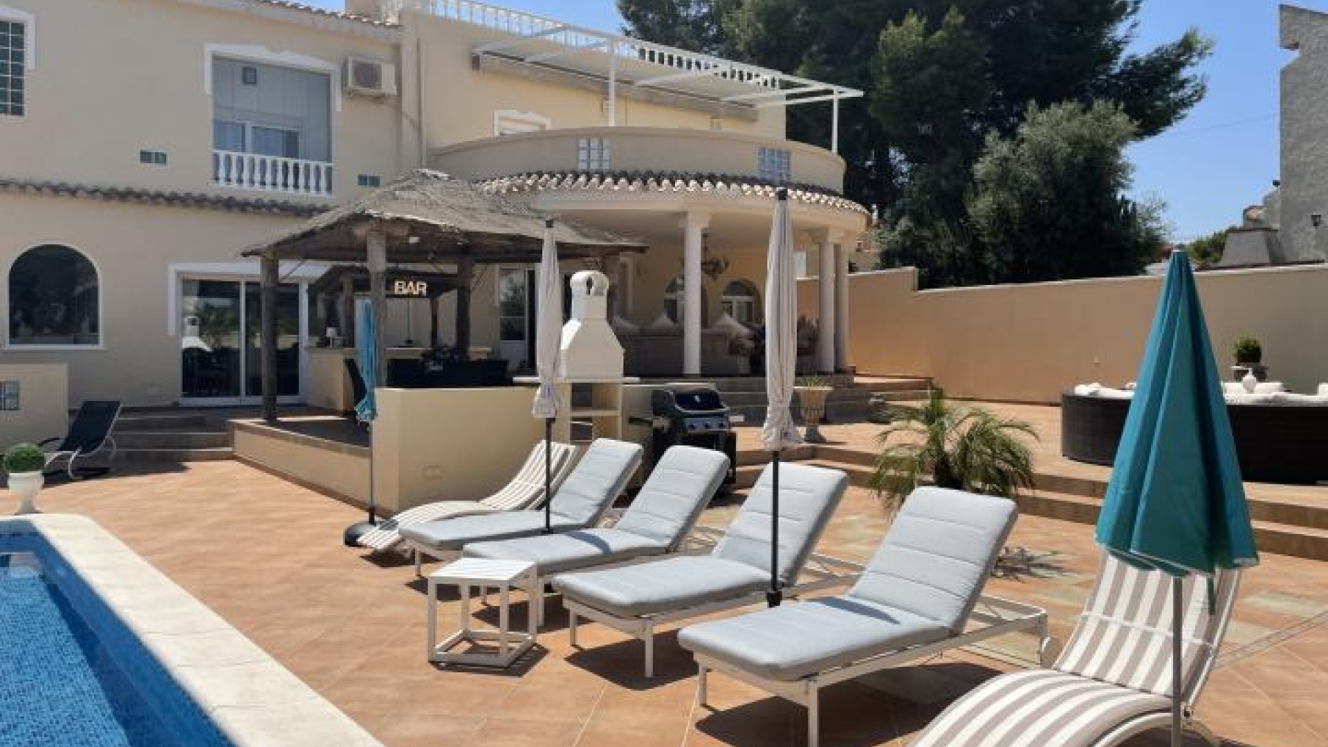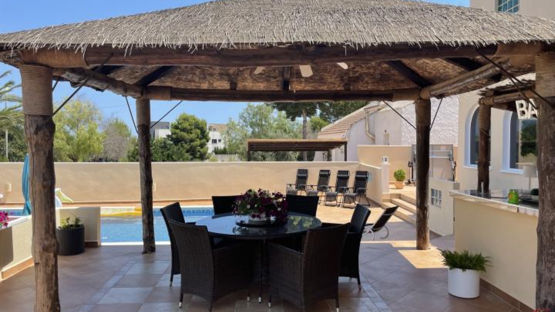 Eine freistehende Villa mit 5 Schlafzimmern und 4 Bädern und privatem Pool auf einem 1000 m² großen Grundstück in Las Comunicaciones, San Miguel de Salinas, Costa Blanca.