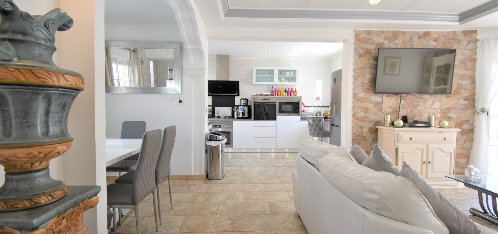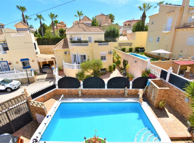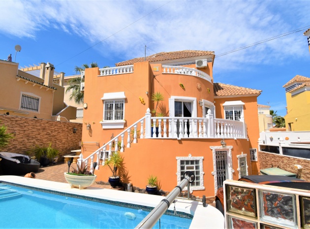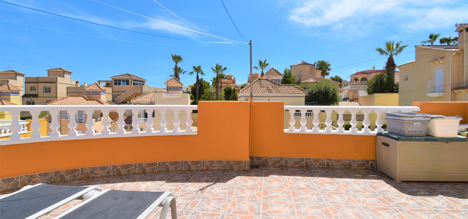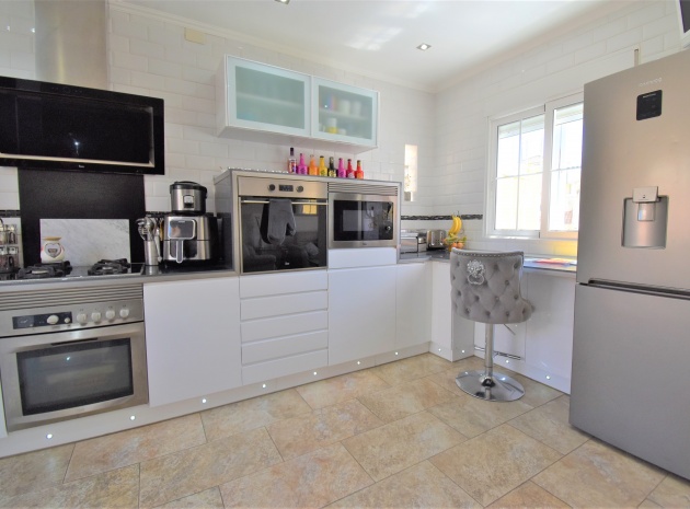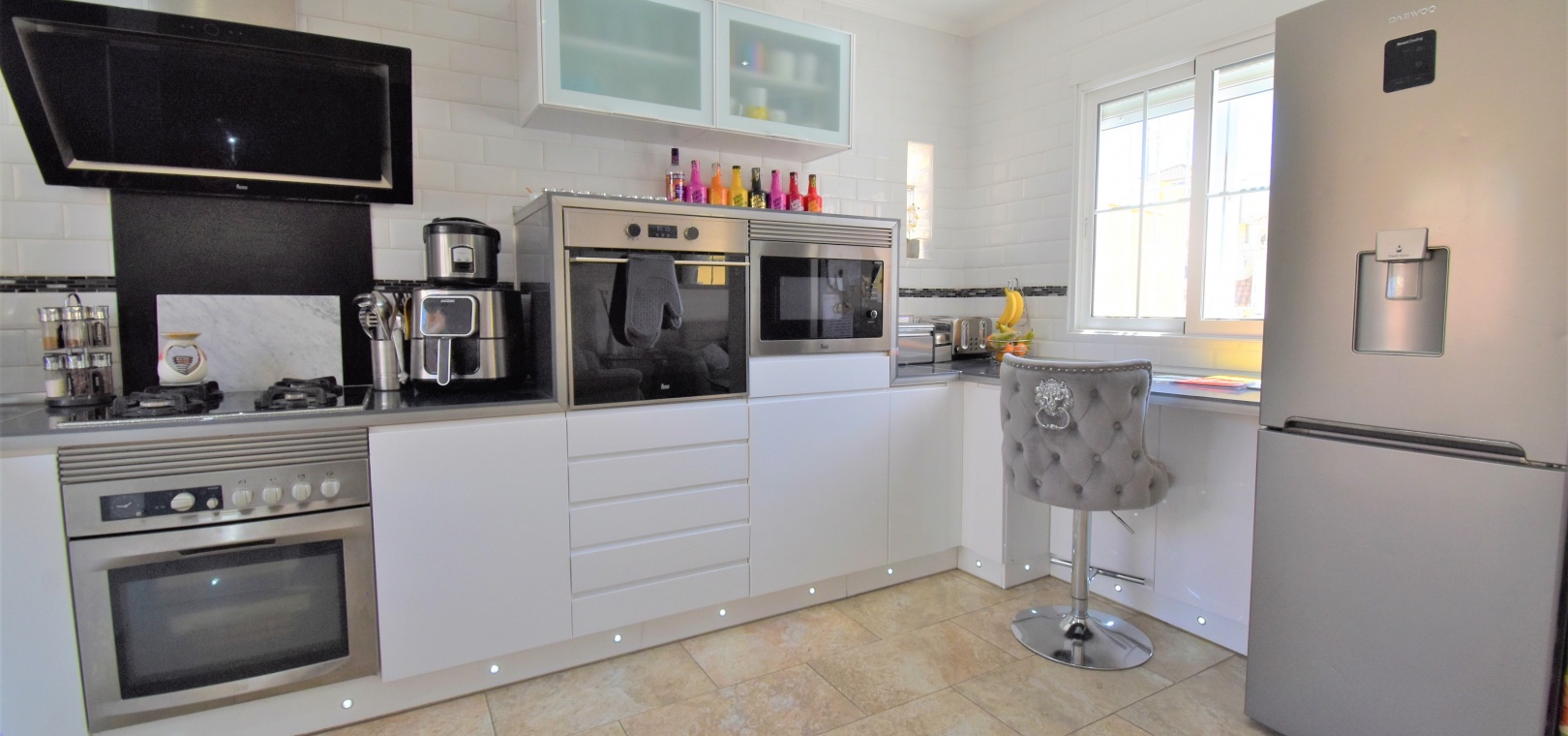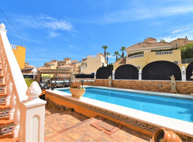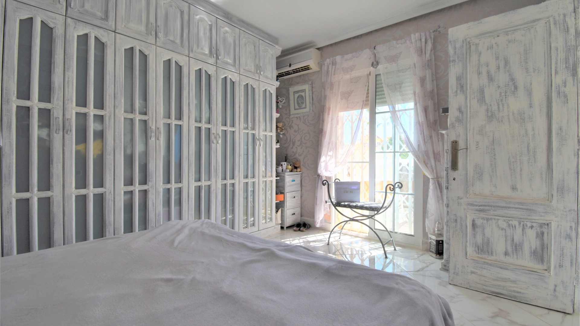 Diese nach Süden ausgerichtete, freistehende Villa mit vier Schlafzimmern in El Galan liegt am Rande dieses beliebten Wohngebiets in Villamartin. Eine Vielzahl von Bars/Restaurants erreichen Sie in nur zehn Minuten zu Fuß; der nächste Supermarkt einer großen Kette ist fünf Autominuten entfernt, ebenso wie drei Golfplätze, Villamartin Plaza und das Einkaufszentrum La Fuente. Das Einkaufszentrum La Zenia Boulevard ist zehn Autominuten entfernt und die Strände entlang der Küste fünfzehn Minuten. Bei der Instandhaltung und Wartung dieses atemberaubenden Familienhauses wurden keine Kosten gescheut. Es besteht aus einem offenen Wohnbereich im Erdgeschoss, einem Loungebereich mit zwei Schiebetüren, die auf eine geschwungene Terrasse führen, einem wunderschönen, verzierten Bogen zum Essbereich, einer offenen, modernen weißen Einbauküche, einer Garderobe, einem Duschraum und einem Doppelzimmer mit Einbauschränken. Im ersten Stock gibt es ein weiteres Doppelzimmer mit Einbauschränken und Terrasse sowie ein Familienbadezimmer. Der Unterbau besteht aus zwei erstaunlich großen Schlafzimmern, eines davon mit eigenem Duschraum. Eine Außentreppe führt hinauf zum Solarium; der Gartenbereich ist gefliest und somit pflegeleicht; es gibt einen privaten Pool und einen Parkplatz abseits der Straße. So ein atemberaubendes Zuhause, in das man einfach „hineinspazieren“ kann.