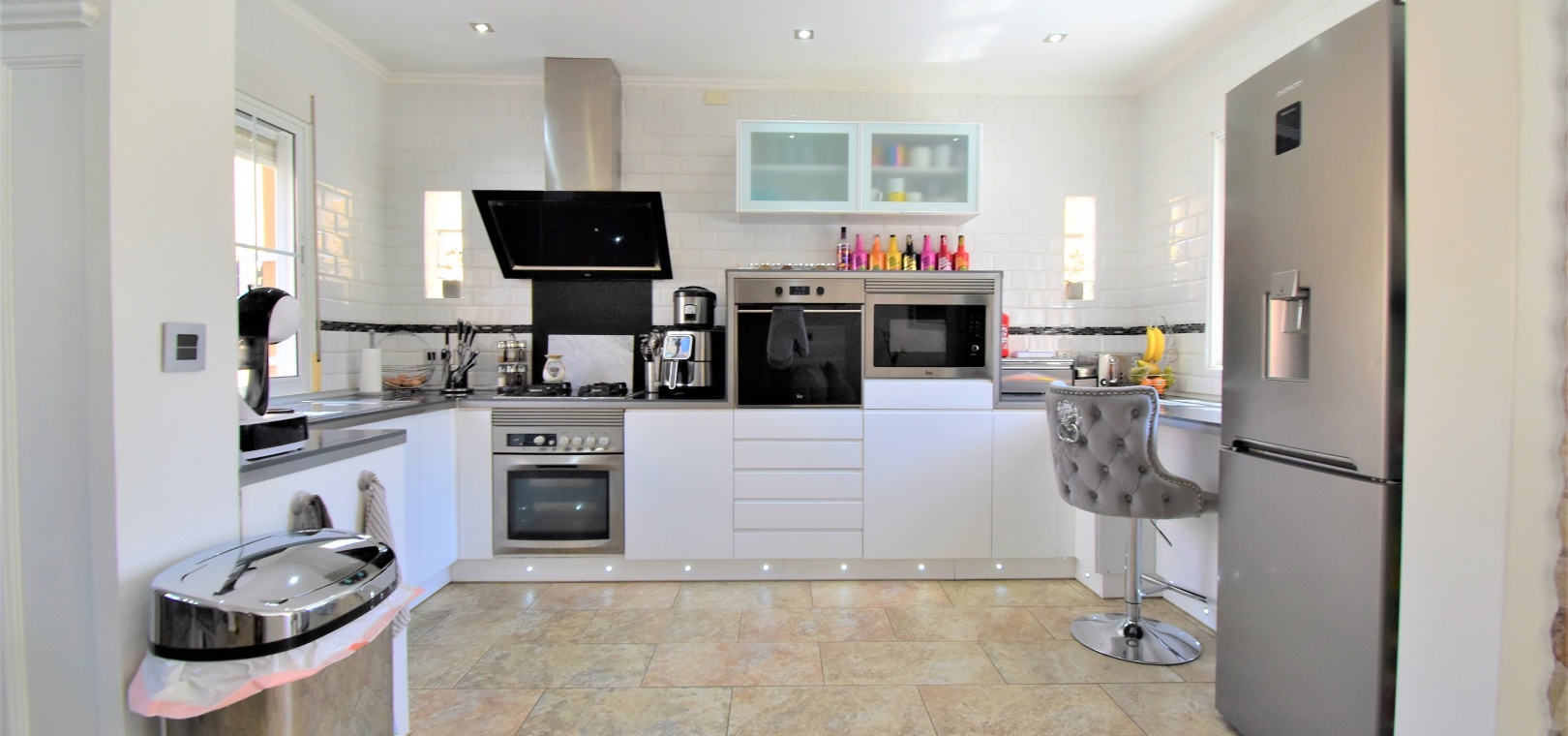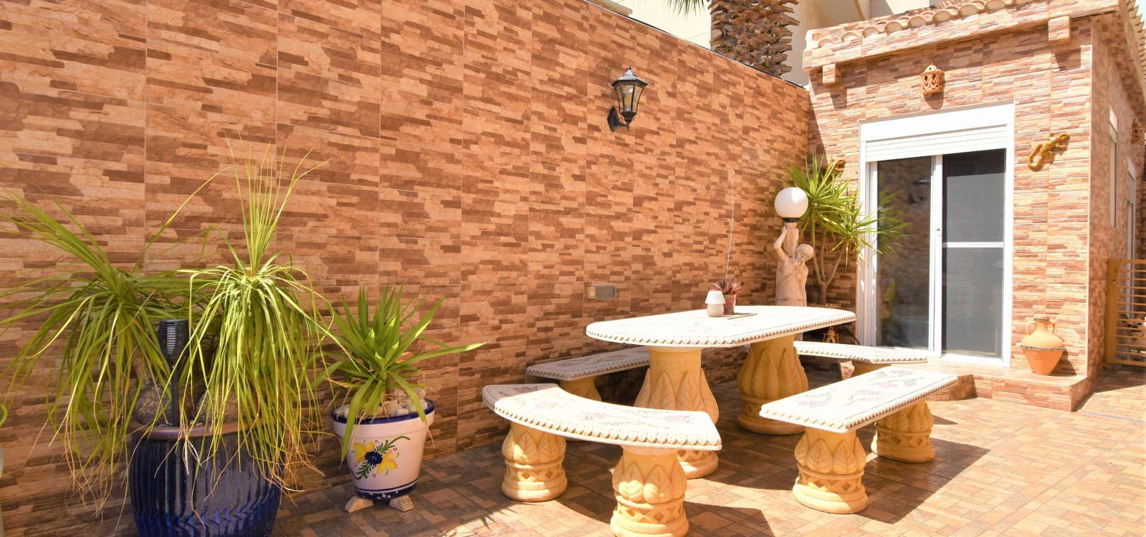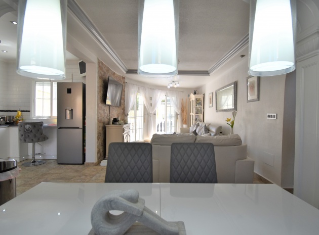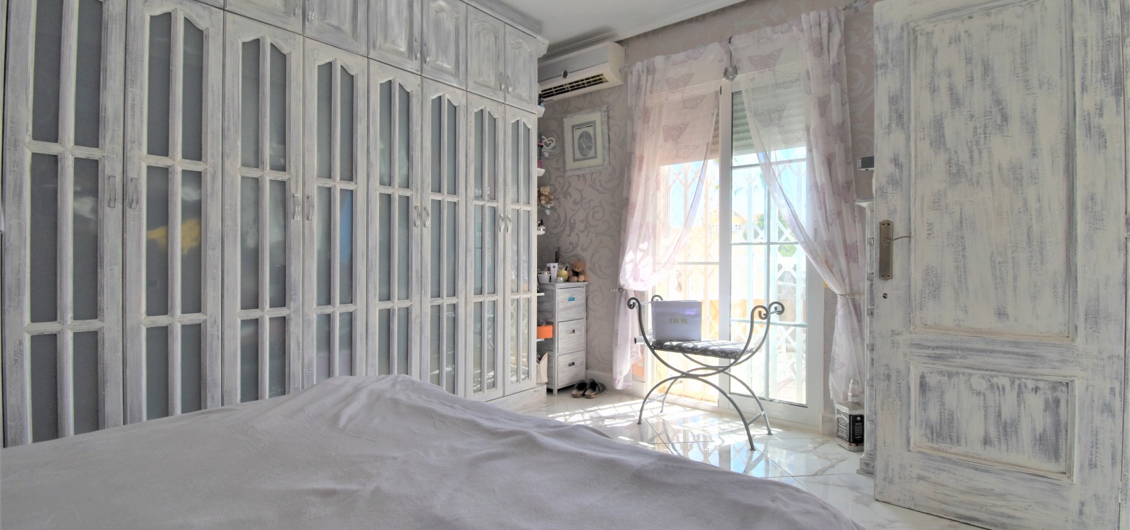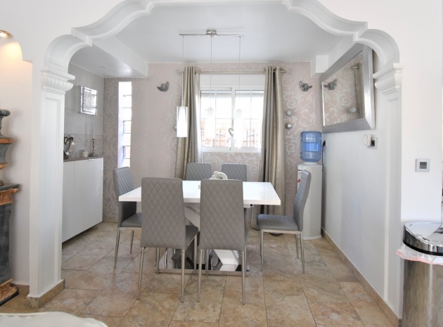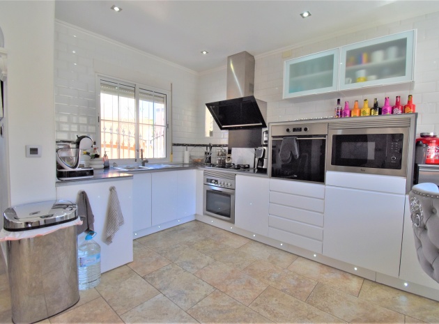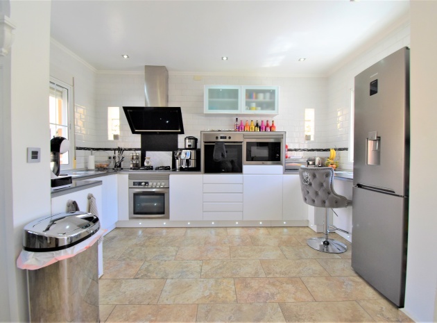 Diese nach Süden ausgerichtete, freistehende Villa mit vier Schlafzimmern in El Galan liegt am Rande dieses beliebten Wohngebiets in Villamartin. Eine Vielzahl von Bars/Restaurants erreichen Sie in nur zehn Minuten zu Fuß; der nächste Supermarkt einer großen Kette ist fünf Autominuten entfernt, ebenso wie drei Golfplätze, Villamartin Plaza und das Einkaufszentrum La Fuente. Das Einkaufszentrum La Zenia Boulevard ist zehn Autominuten entfernt und die Strände entlang der Küste fünfzehn Minuten. Bei der Instandhaltung und Wartung dieses atemberaubenden Familienhauses wurden keine Kosten gescheut. Es besteht aus einem offenen Wohnbereich im Erdgeschoss, einem Loungebereich mit zwei Schiebetüren, die auf eine geschwungene Terrasse führen, einem wunderschönen, verzierten Bogen zum Essbereich, einer offenen, modernen weißen Einbauküche, einer Garderobe, einem Duschraum und einem Doppelzimmer mit Einbauschränken. Im ersten Stock gibt es ein weiteres Doppelzimmer mit Einbauschränken und Terrasse sowie ein Familienbadezimmer. Der Unterbau besteht aus zwei erstaunlich großen Schlafzimmern, eines davon mit eigenem Duschraum. Eine Außentreppe führt hinauf zum Solarium; der Gartenbereich ist gefliest und somit pflegeleicht; es gibt einen privaten Pool und einen Parkplatz abseits der Straße. So ein atemberaubendes Zuhause, in das man einfach „hineinspazieren“ kann.