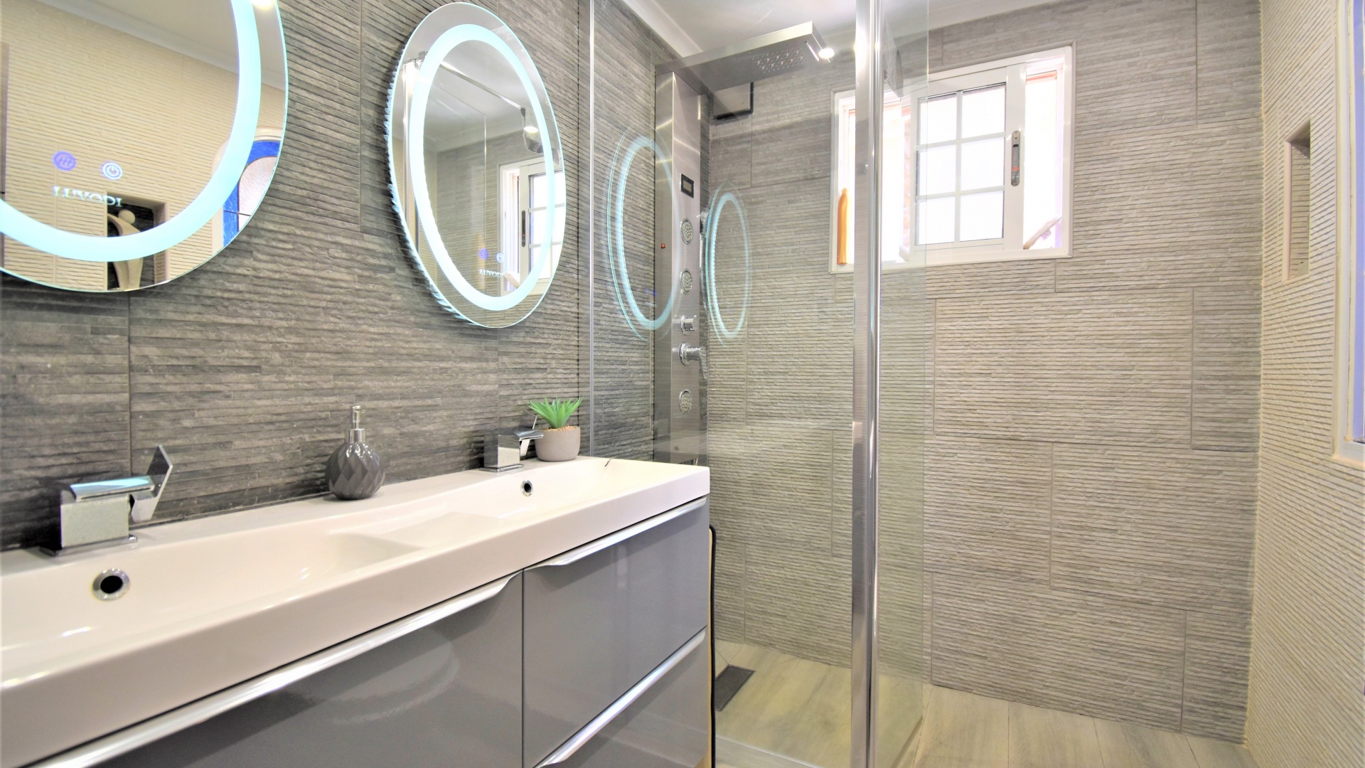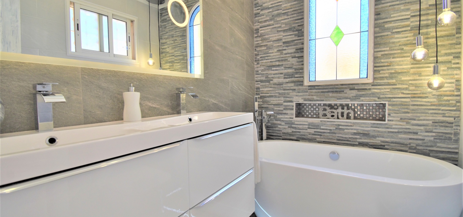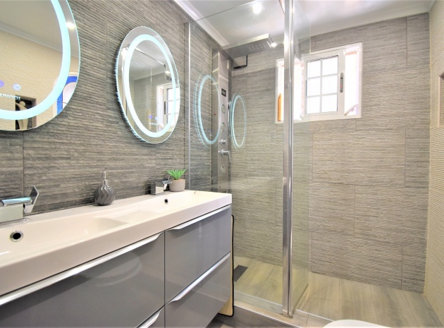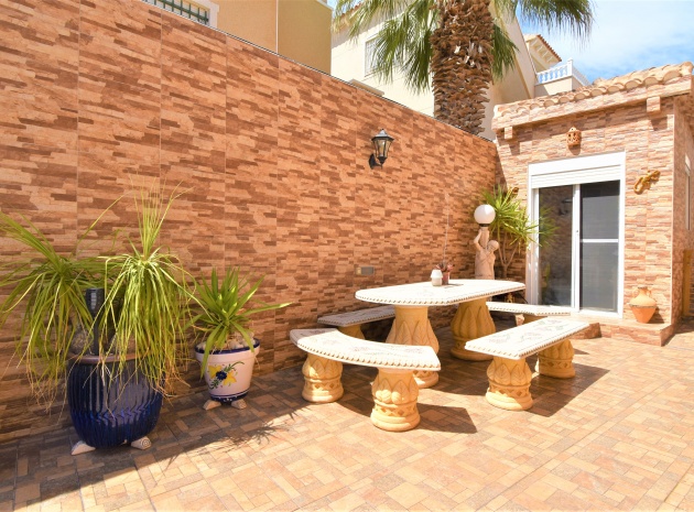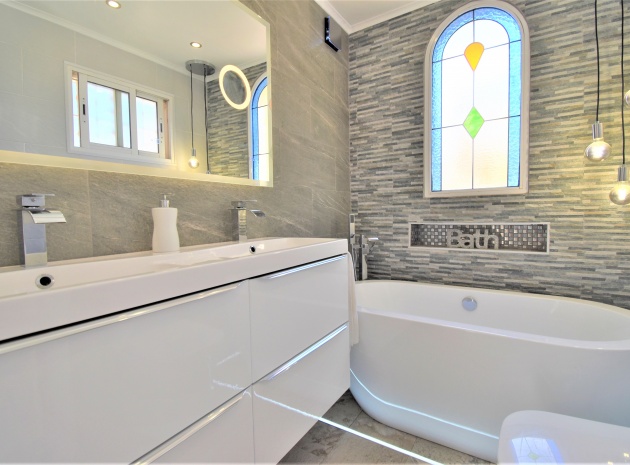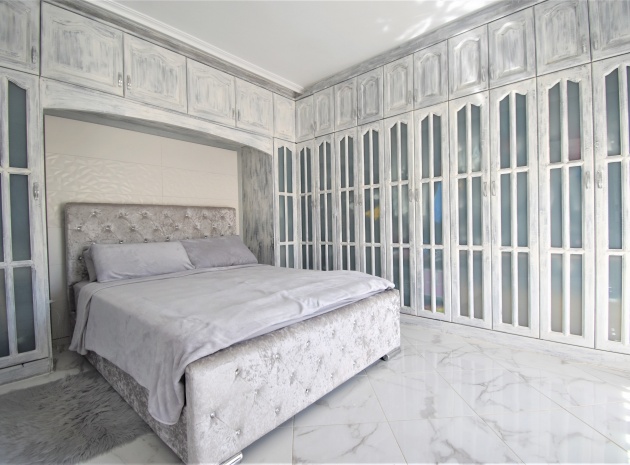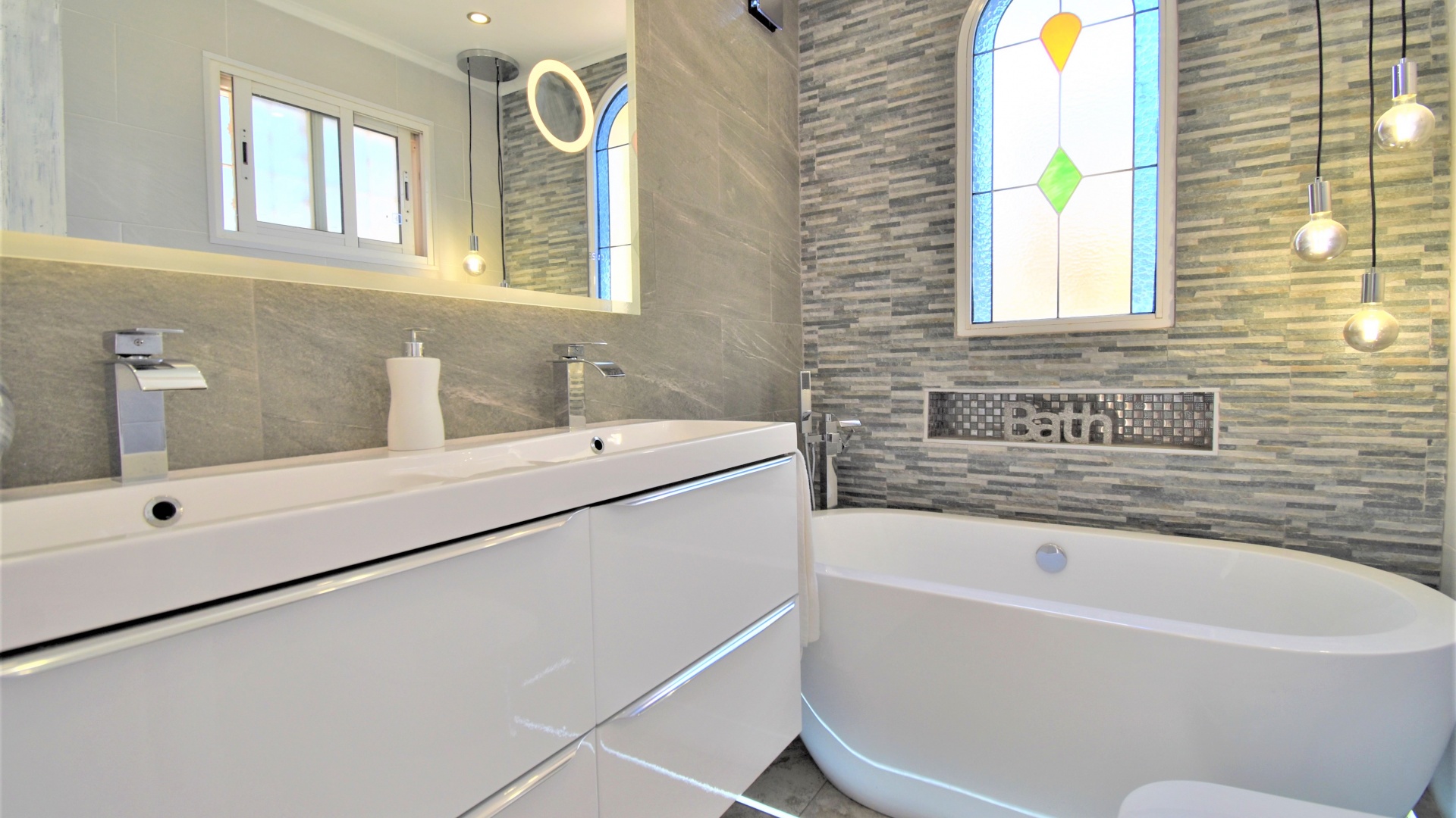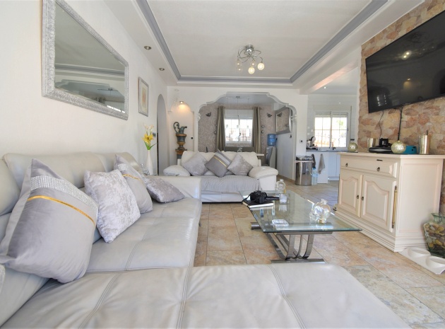 Diese nach Süden ausgerichtete, freistehende Villa mit vier Schlafzimmern in El Galan liegt am Rande dieses beliebten Wohngebiets in Villamartin. Eine Vielzahl von Bars/Restaurants erreichen Sie in nur zehn Minuten zu Fuß; der nächste Supermarkt einer großen Kette ist fünf Autominuten entfernt, ebenso wie drei Golfplätze, Villamartin Plaza und das Einkaufszentrum La Fuente. Das Einkaufszentrum La Zenia Boulevard ist zehn Autominuten entfernt und die Strände entlang der Küste fünfzehn Minuten. Bei der Instandhaltung und Wartung dieses atemberaubenden Familienhauses wurden keine Kosten gescheut. Es besteht aus einem offenen Wohnbereich im Erdgeschoss, einem Loungebereich mit zwei Schiebetüren, die auf eine geschwungene Terrasse führen, einem wunderschönen, verzierten Bogen zum Essbereich, einer offenen, modernen weißen Einbauküche, einer Garderobe, einem Duschraum und einem Doppelzimmer mit Einbauschränken. Im ersten Stock gibt es ein weiteres Doppelzimmer mit Einbauschränken und Terrasse sowie ein Familienbadezimmer. Der Unterbau besteht aus zwei erstaunlich großen Schlafzimmern, eines davon mit eigenem Duschraum. Eine Außentreppe führt hinauf zum Solarium; der Gartenbereich ist gefliest und somit pflegeleicht; es gibt einen privaten Pool und einen Parkplatz abseits der Straße. So ein atemberaubendes Zuhause, in das man einfach „hineinspazieren“ kann.