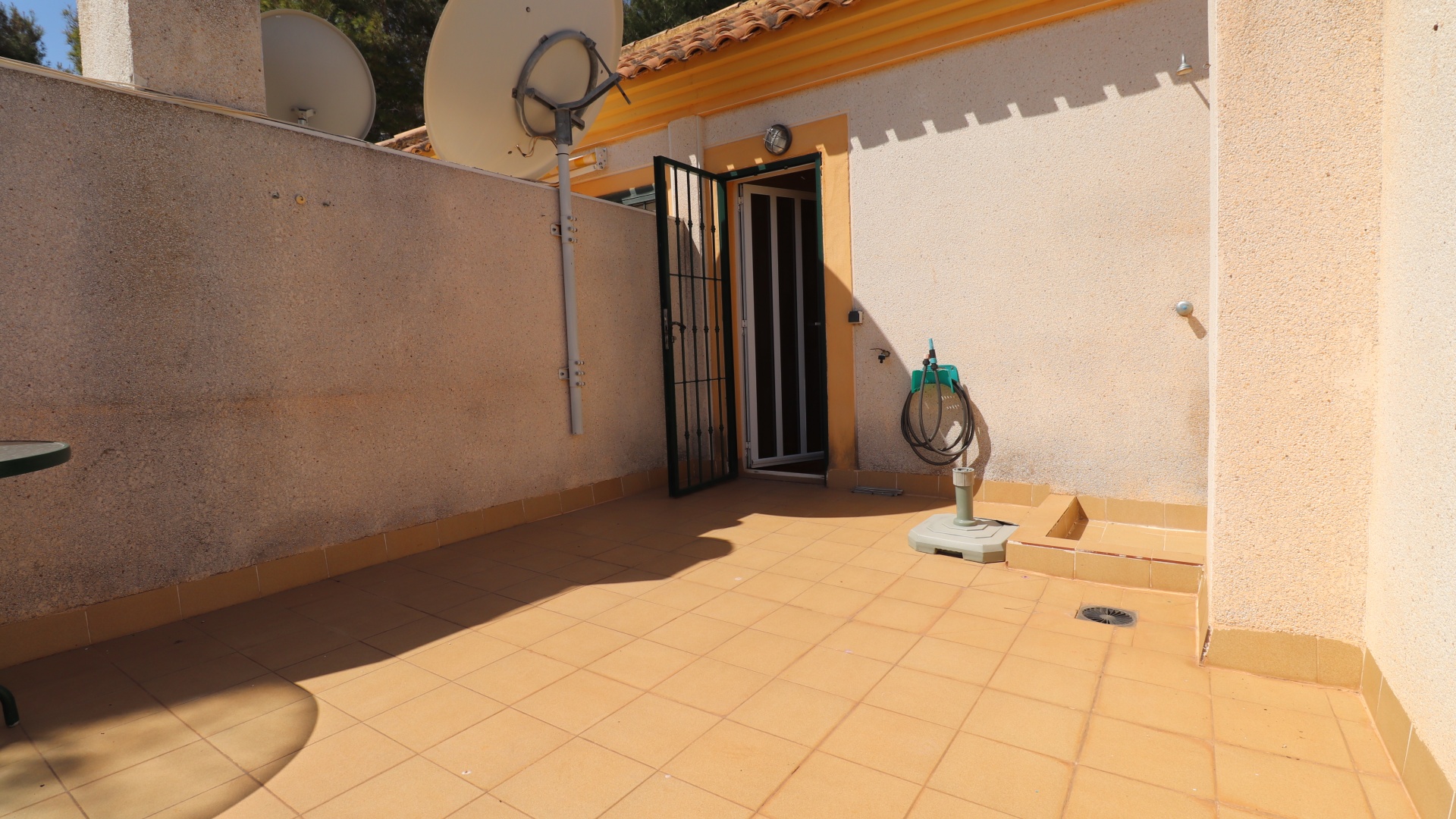 Dieses exklusive, nach Osten ausgerichtete Reihenhaus mit zwei Schlafzimmern liegt in Montemar, einer sehr beliebten Wohngegend, nur wenige Autominuten vom Dorf Algorfa entfernt, wo Sie Geschäfte, Bars, Restaurants, eine Schule, eine Bank, eine Apotheke und mehr finden. Das 5-Sterne-Golf- und Spa-Resort La Finca mit einer Vielzahl großartiger Bars und Restaurants liegt direkt gegenüber dieser Anlage. Der Strand von Guardamar ist nur 15 Autominuten entfernt. Dieses Anwesen besteht aus einer separaten, voll ausgestatteten Küche mit einer Hintertür zum Innenhof; einem geräumigen Wohn-/Esszimmer mit Zugang zur Vorderseite, einer überdachten Terrasse und einem gefliesten, pflegeleichten Garten mit Parkplatz abseits der Straße; zwei Doppelschlafzimmern; einem Familienbadezimmer; einer Garderobe; einer hinteren Terrasse im 2. Stock, die verglast wurde, um zusätzlichen Wohnraum und/oder Lagerraum zu schaffen; und einem sonnenüberfluteten Solarium an der Vorderseite mit teilweise freiem Blick auf die anderen Gemeinden und einem Gemeinschaftspool. Zu den Extras gehören Einbauschränke in einem der Schlafzimmer, Deckenventilatoren und Grills!