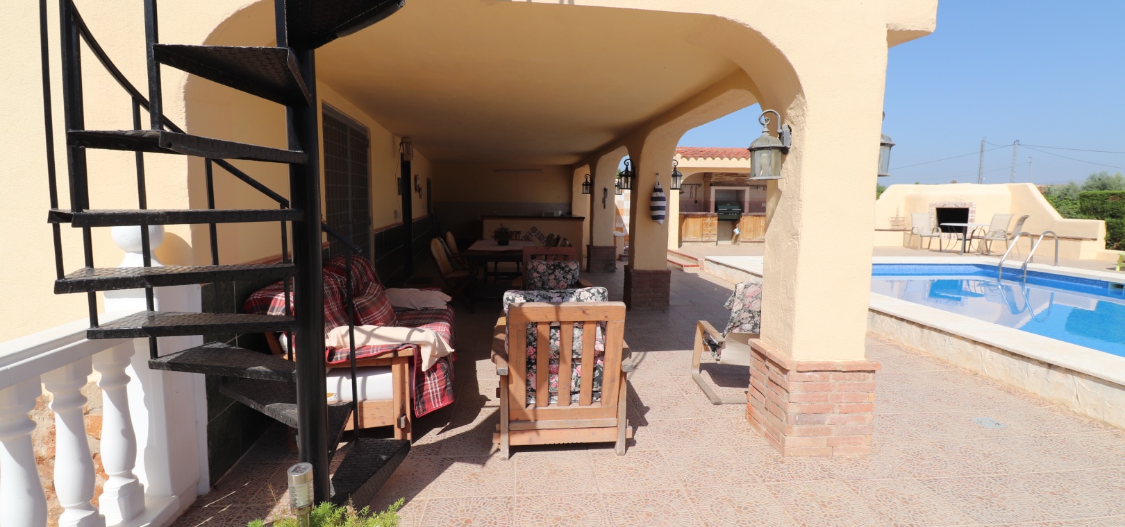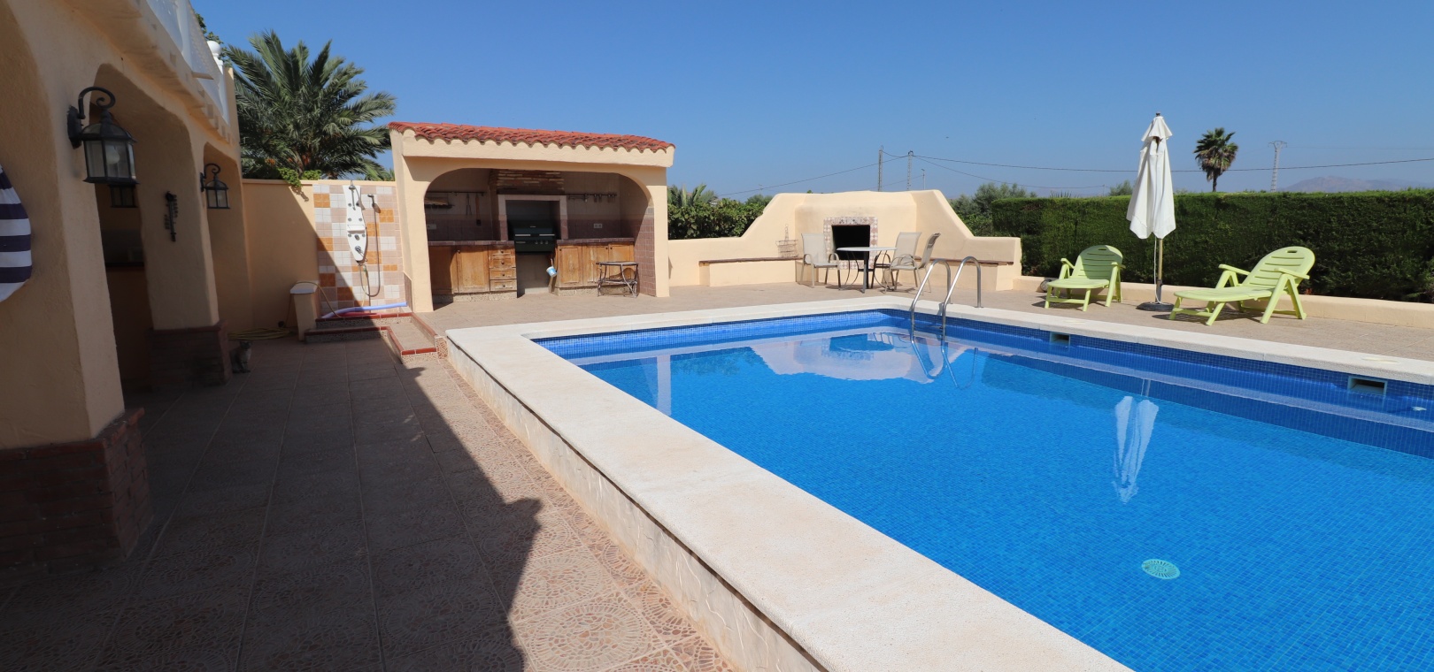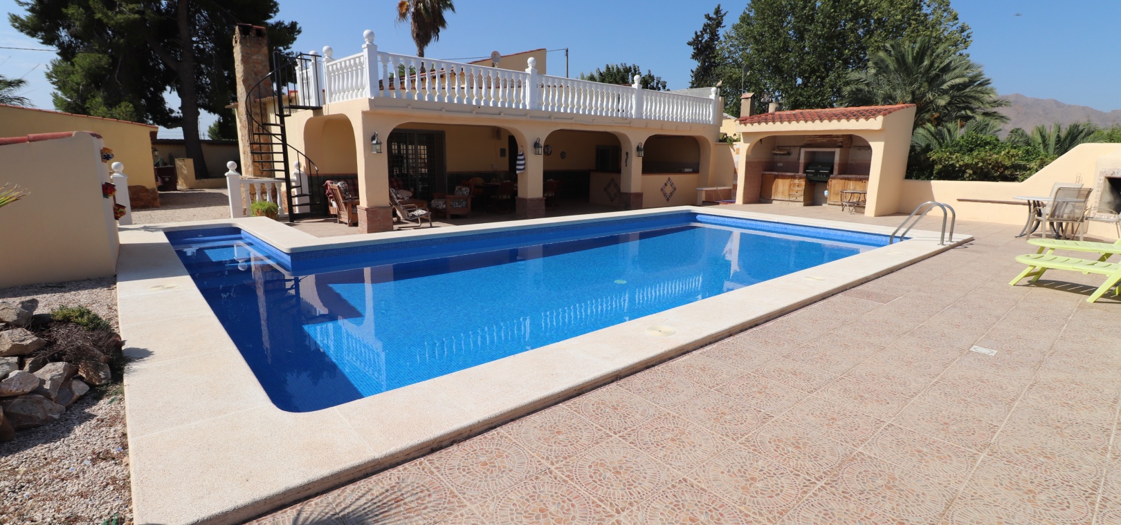 Diese unglaubliche, nach Süden ausgerichtete, rustikale Landvilla mit sechs Schlafzimmern gehört zur Stadt Callosa del Segura und ist fünf bis zehn Autominuten entfernt. Hier haben Sie alle Annehmlichkeiten, die Sie brauchen könnten, darunter Bahnhof, Schule, Ärztezentrum, eine Reihe von Geschäften, Café-Bars, Restaurants, Supermärkte der großen Ketten und vieles mehr. Die Küste und der nächste Strand sind 20 bis 25 Autominuten entfernt. Das Anwesen selbst ist hübsch rustikal eingerichtet und bietet den zusätzlichen Vorteil einer separaten „Casita“. Es gibt einen Eingangsbereich im traditionellen Stil; das Hauptwohnzimmer hat einen Holzofen, Balkendecke und Schiebetüren nach draußen; Esszimmer mit Balkendecke; separate, geräumige Einbauküche mit einzigartigem Merkmal über dem Ofen; schönes, großes Hauptschlafzimmer mit begehbarem Ankleidezimmer, Klimaanlage und eigenem Duschraum; weiteres Familienduschraum. Im ersten Stock gibt es zwei Doppelschlafzimmer, das Hauptschlafzimmer mit eigenem Duschraum. Die Casita hat ein Wohnzimmer mit Eckkamin, eine hübsche Einbauküche, drei Doppelschlafzimmer, zwei mit Einbauschränken, das Hauptschlafzimmer mit eigenem Duschraum. Draußen können Sie eine überdachte Terrasse mit Küchenbereich mit Arbeitsfläche und Einbauschränken genießen, die zum Poolbereich führt. Außerdem gibt es eine Treppe, die zum Solarium hinaufführt, wo Sie einen weiten Blick auf die Landschaft und die Berge haben. Der Pool ist gefliest, außerdem gibt es einen Duschbereich, einen weiteren überdachten Küchenbereich und einen Grillbereich. Der Zugang zum Grundstück ist mit Kieselsteinen ausgelegt und führt um eine Garage herum. Hier wird so viel Charakter geboten, eine Gelegenheit, die Sie sich nicht entgehen lassen sollten.