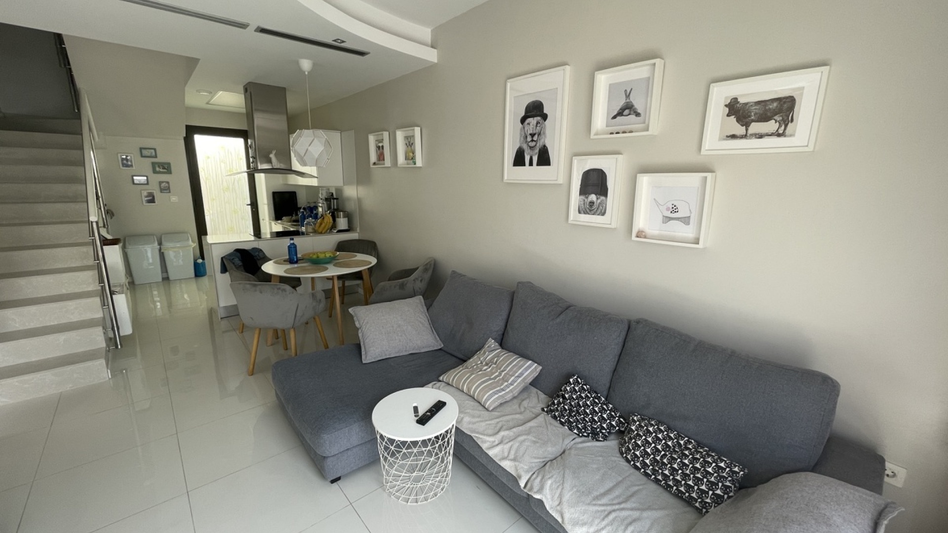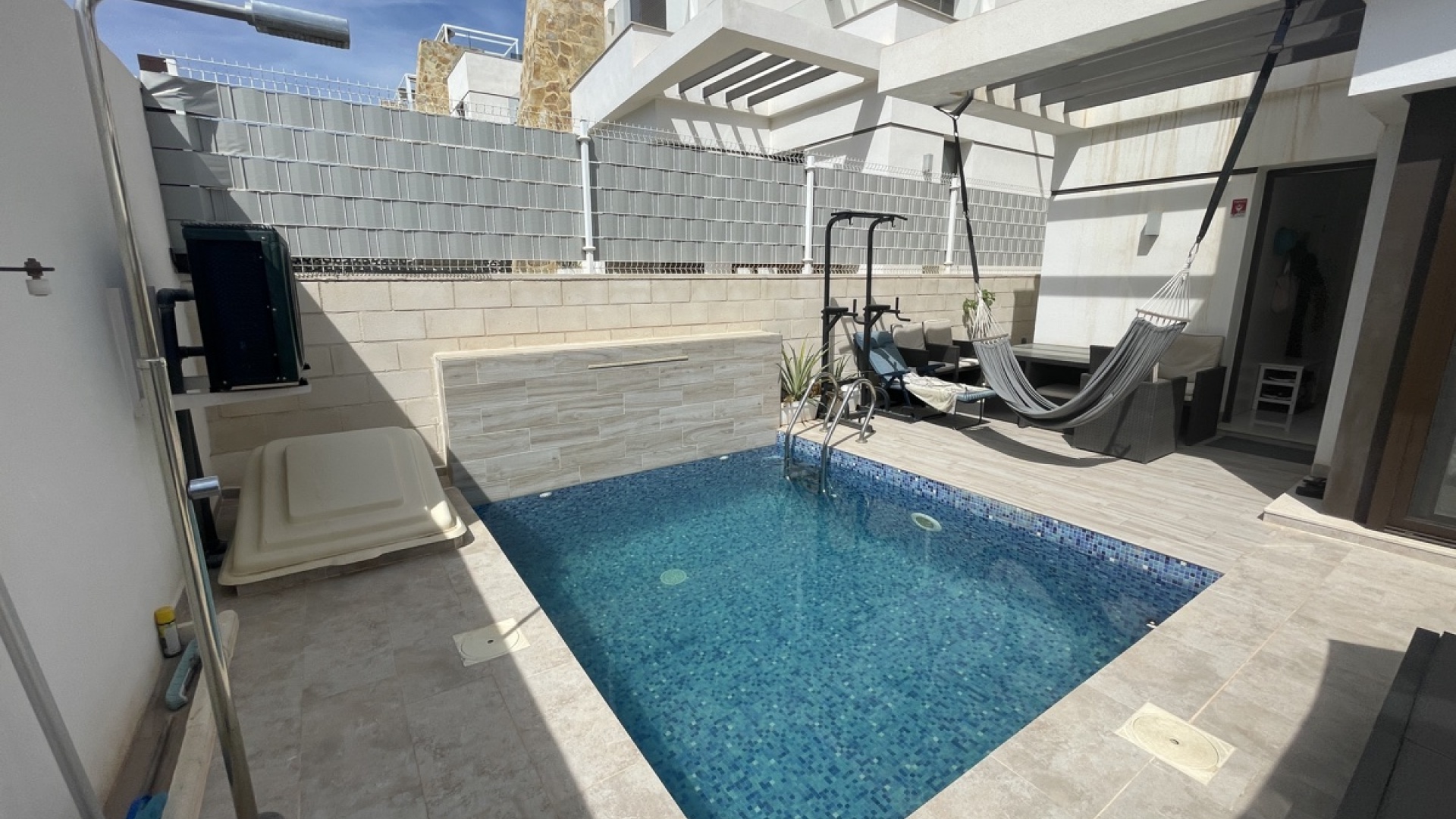 Ein nach Süden ausgerichtetes, modernes Doppelhaus mit 3 Schlafzimmern und 2 Bädern, privatem Pool und Solarium auf dem Dach in PAU 26, Villamartin, Costa Blanca.