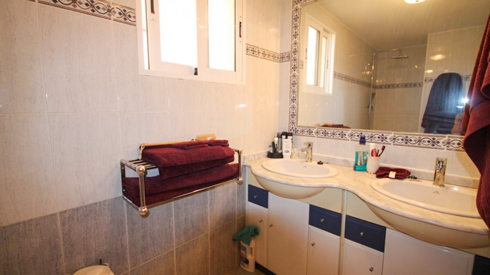 Im 1. Stock gibt es 2 Doppelzimmer mit Einbauschränken und Balkonen, eines der Schlafzimmer verfügt über eine Klimaanlage mit Warm- und Kaltwasser und 1 Familienbadezimmer mit Doppelwaschbecken.