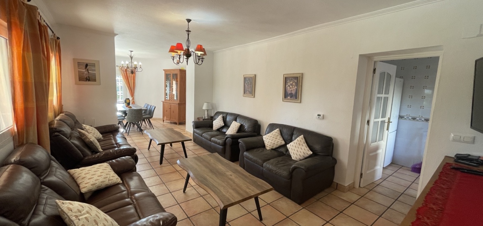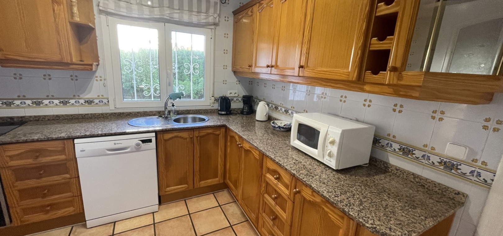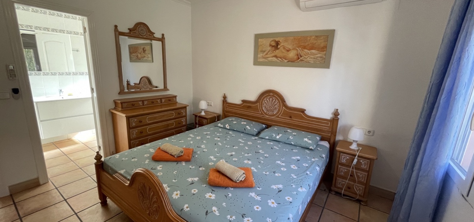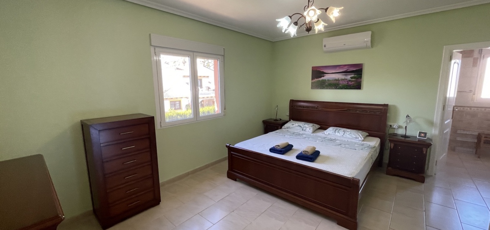 Im Erdgeschoss gibt es ein großes Wohn-/Esszimmer, eine separate, voll ausgestattete Küche mit einem separaten Hauswirtschaftsbereich mit Tür zu einem Terrassenbereich mit Sonnenmarkise, vom Hauswirtschaftsbereich gibt es auch direkten Zugang zur Garage, 1 x Dusche Zimmer, 1 x Zweibettzimmer mit warmer und kalter Klimaanlage, 1 x Doppelzimmer mit warmer und kalter Klimaanlage und eigenem Bad sowie 1 x Doppelzimmer mit Türen zum Garten.