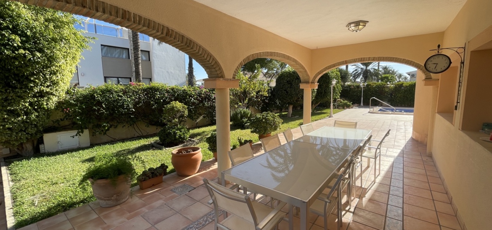 Eine freistehende Villa mit 7 Schlafzimmern und 4 Bädern auf einem 1000 m² großen Grundstück mit privatem Pool am Strand von Cabo Roig, Costa Blanca.