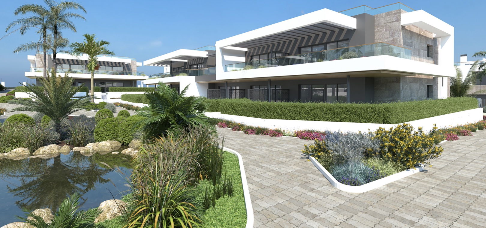 Neu gebaute Apartments mit 3 Schlafzimmern und 2 Bädern im Res. Lagoon Village, Laguna Rosa, Torrevieja, Costa Blanca Süd.