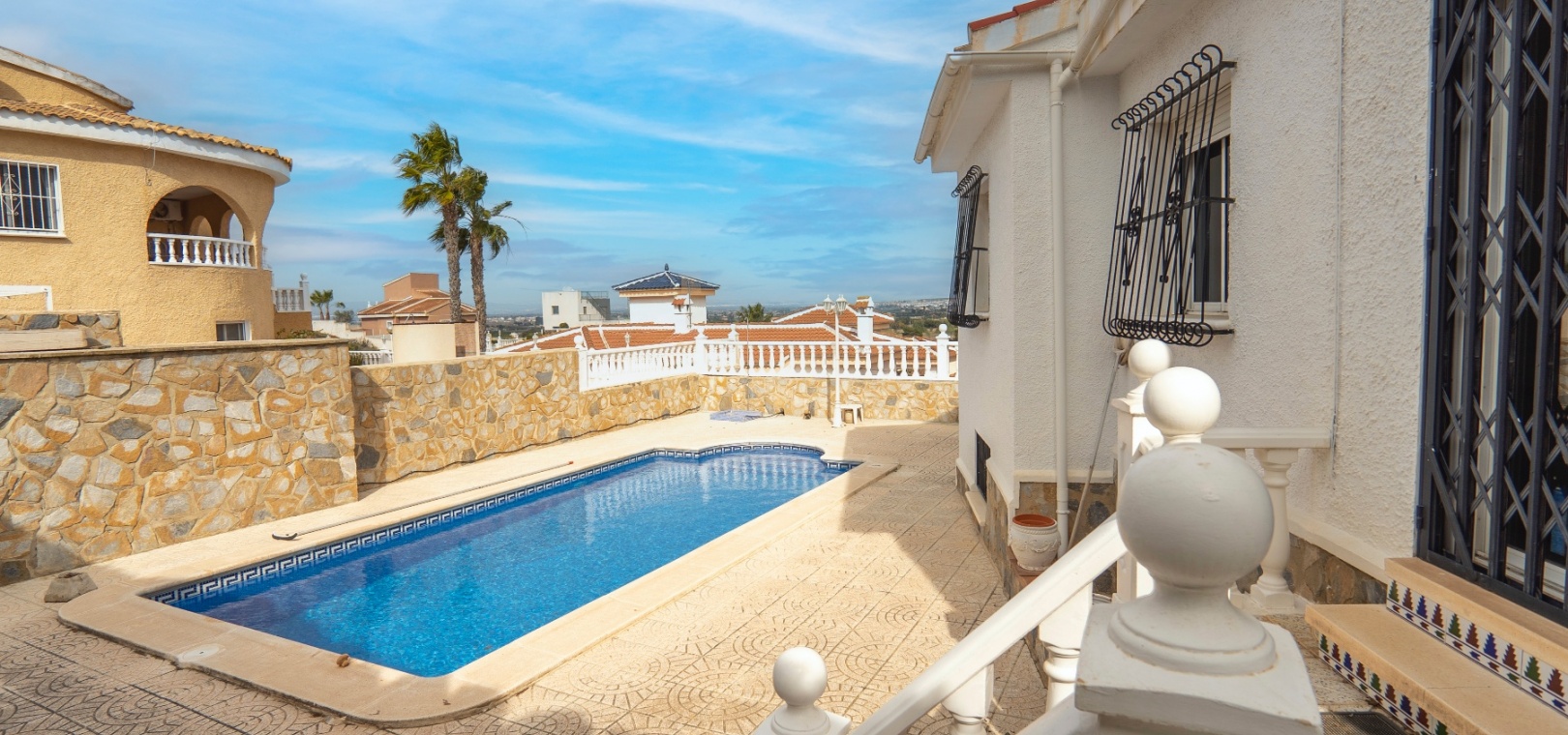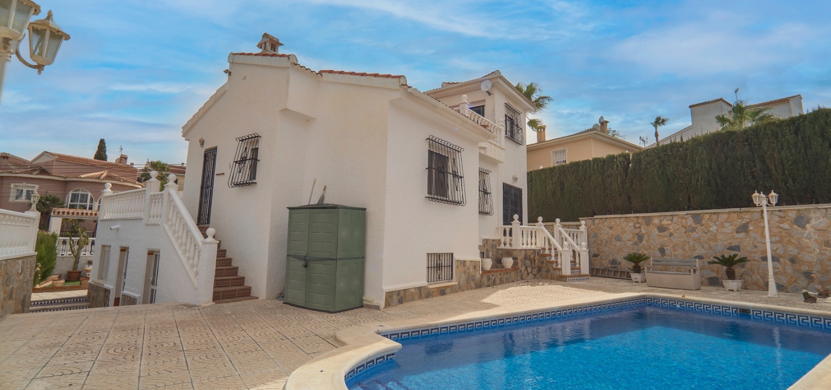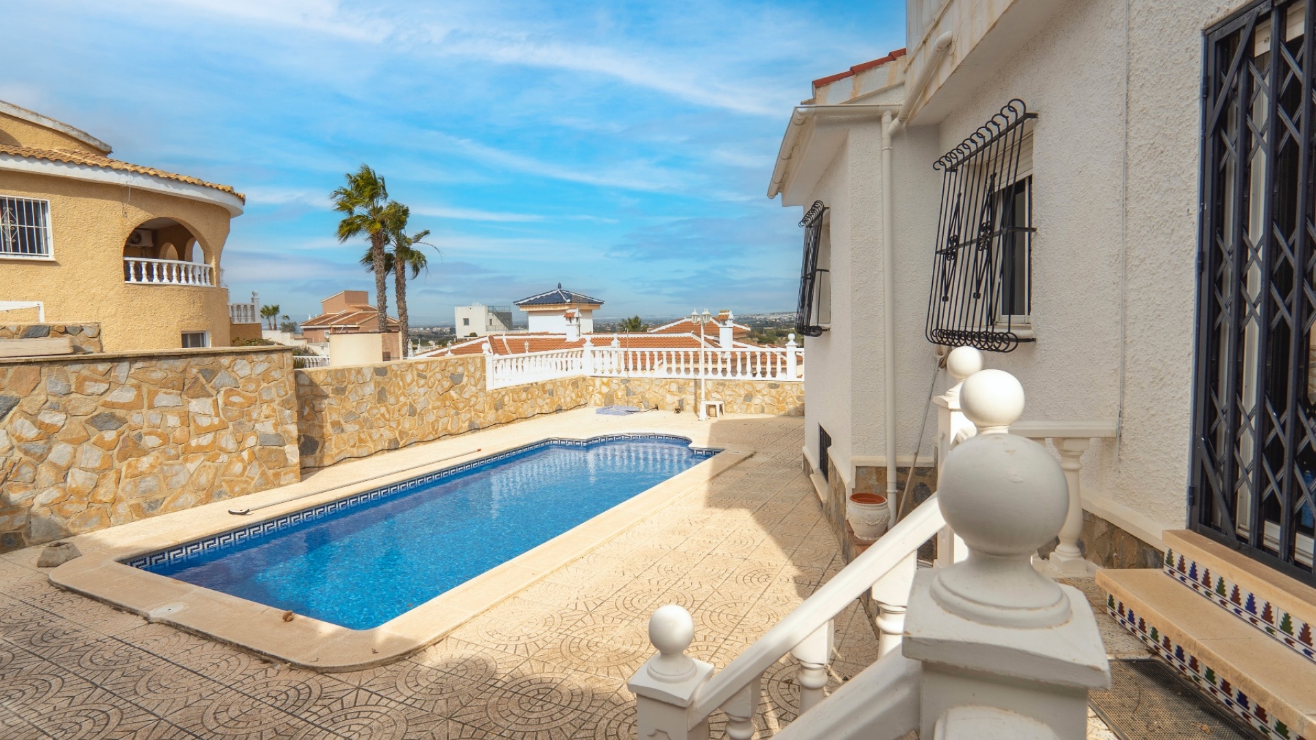 Wir freuen uns, diese große Villa mit 3 Schlafzimmern und 2 Badezimmern mit Essbereich sowie einem separaten großen Wohnzimmer im Haupthaus auf den Markt zu bringen. Das andere Schlafzimmer und Badezimmer sowie ein Wohn-/Küchenbereich befinden sich in einem separaten, eigenständigen Unterbauapartment. Das Anwesen verfügt über ein großes Grundstück mit privatem Pool und herrlicher Aussicht auf die umliegende Landschaft. Es stehen außerdem mehrere Terrassen für Mahlzeiten im Freien sowie ein Gartenbereich vor dem Haus und ein großer Bereich rund um den Pool zur Verfügung. Es gibt auch einen großen Nutzraum für Lager usw. Die Lage dieser Immobilie ist ausgezeichnet, was bedeutet, dass Sie in die eine Richtung den Golfplatz und alle Geschäfte, Bars, Restaurants und einen Supermarkt und in die andere Richtung die Stadt Rojales zu Fuß erreichen können . Diese Immobilie eignet sich hervorragend als Familiendomizil oder als Feriendomizil.