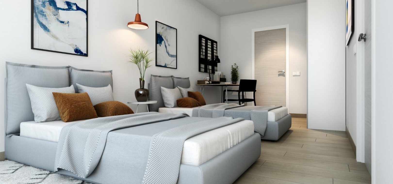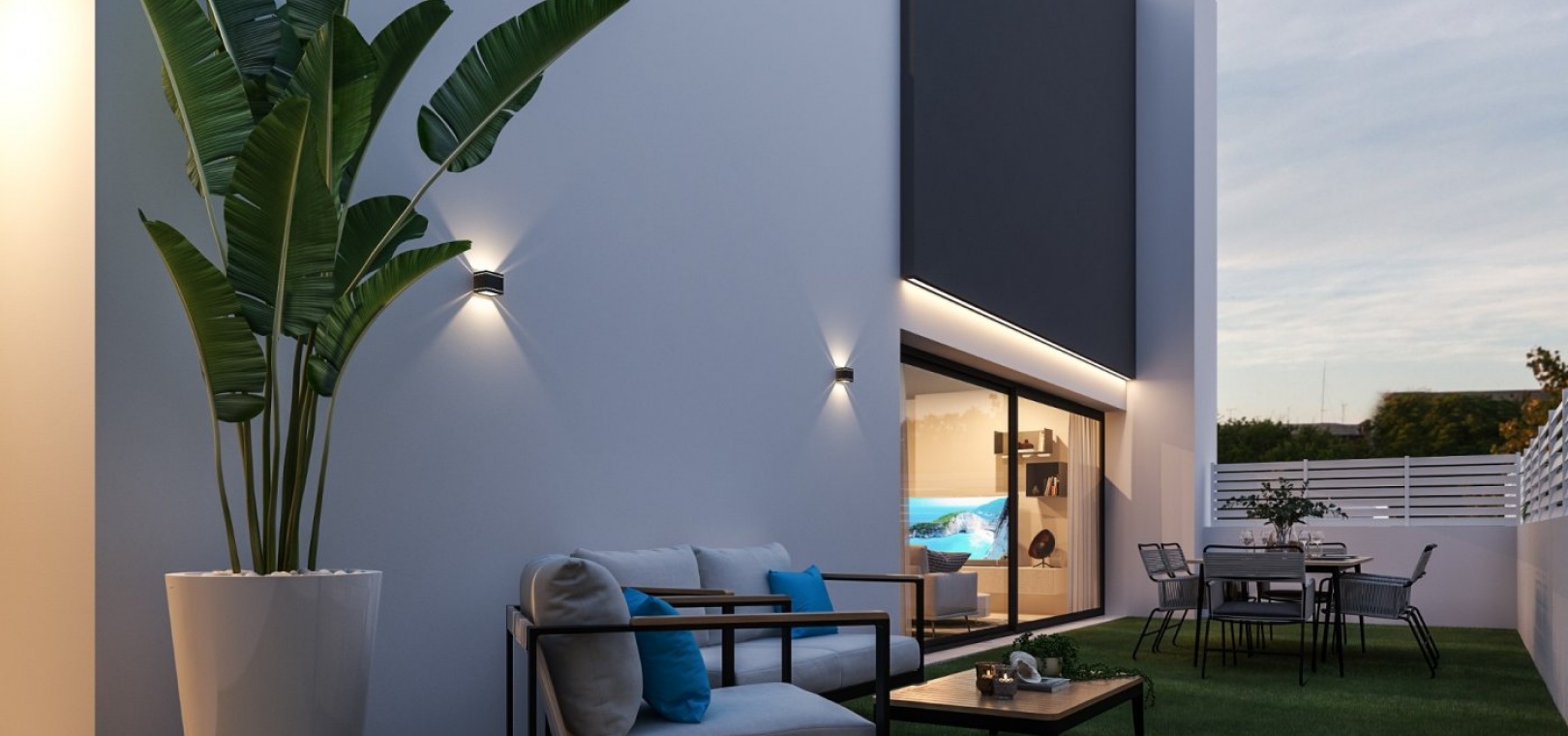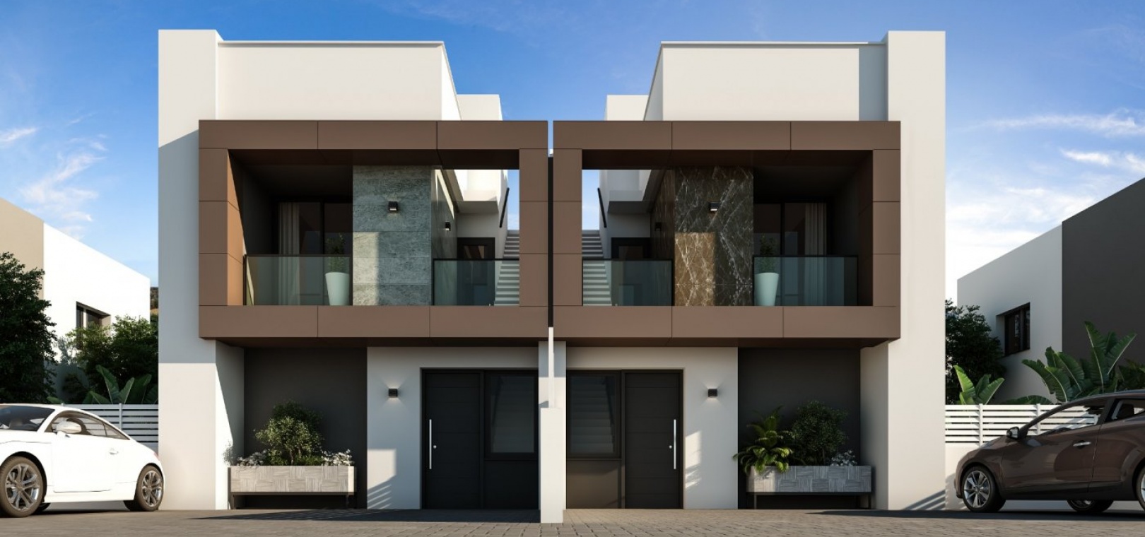 Private Urbanisation von Stadthäusern mit einer Fläche von 100 m2 mit privatem Garten und Parkplatz.