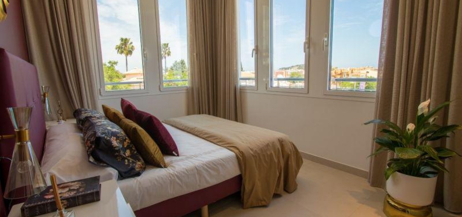 Im Obergeschoss befinden sich die 3 Schlafzimmer mit 2 weiteren Bädern, eines davon en Suite und eine weitere Terrasse, die vom Hauptraum aus zugänglich ist.