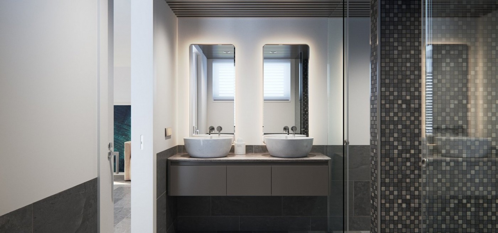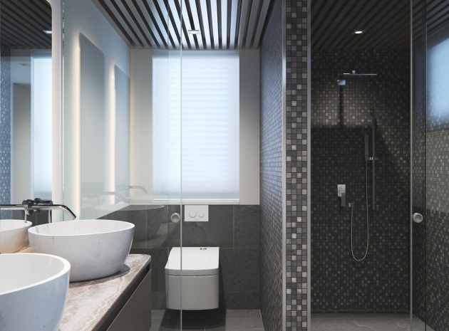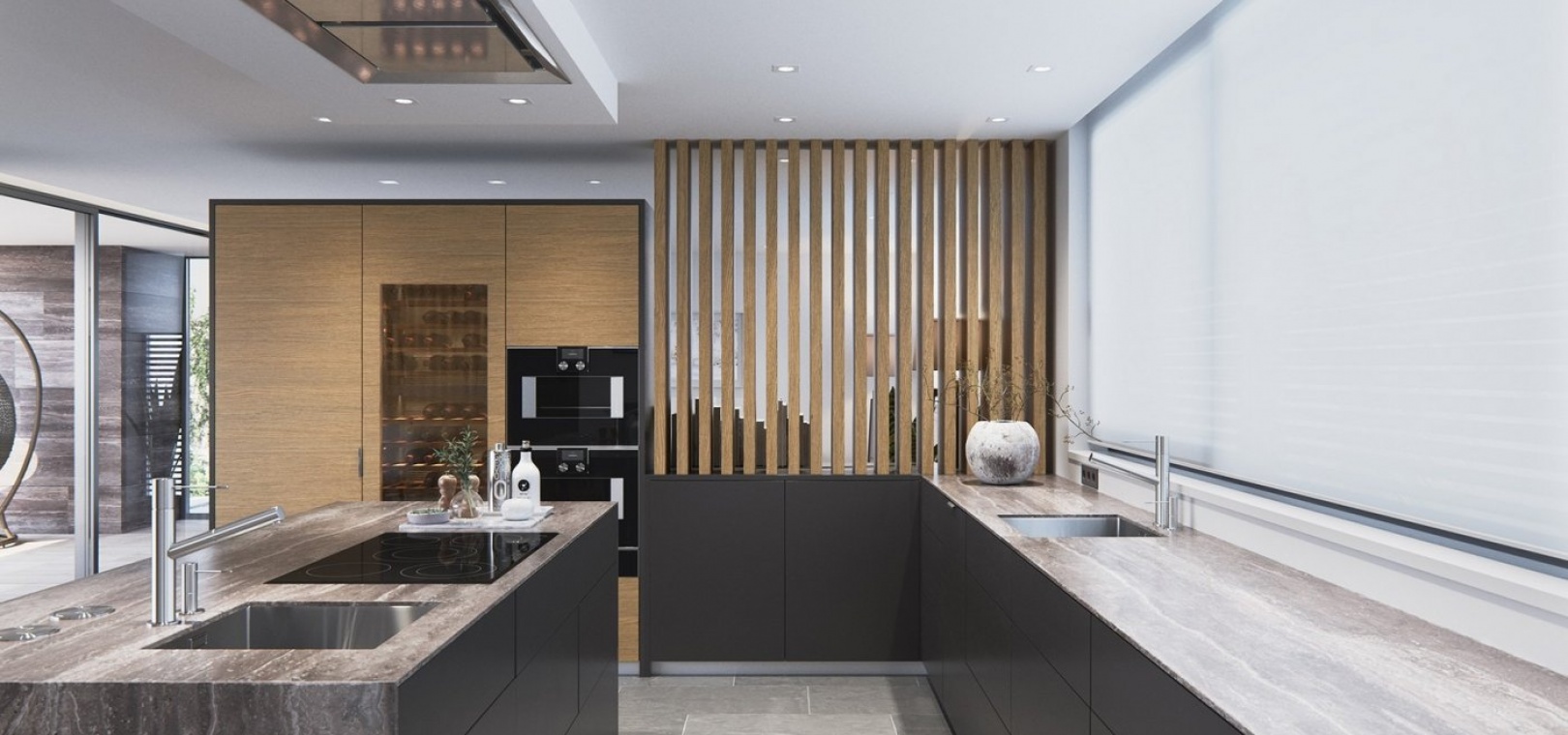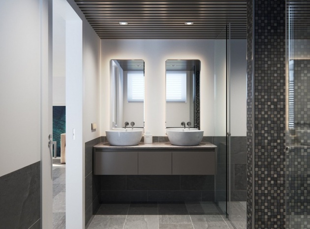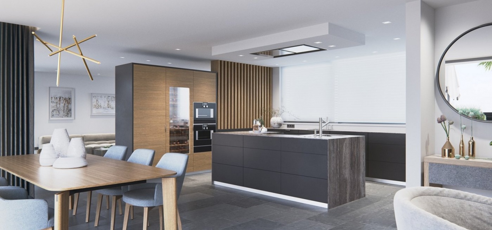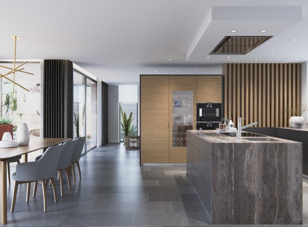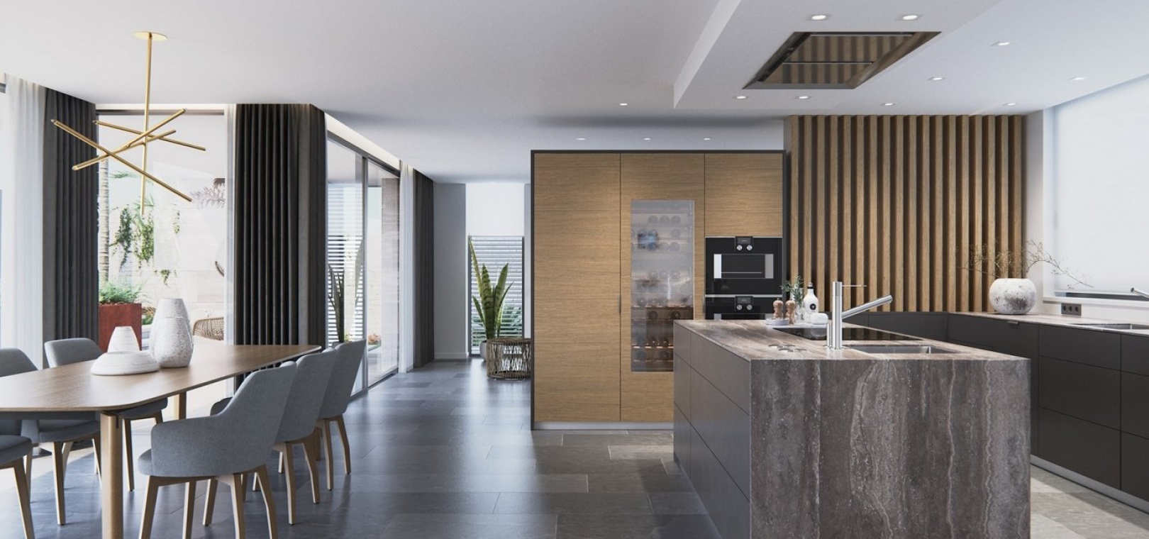 Bäder mit hängenden Geräten, Waschbecken auf der Arbeitsplatte und Armaturen mit Thermostat, Klimaanlage und Heizung, moderne und elegante Küche Esszimmer fertig, anpassbare Design einschließlich High-End-Geräte in das Design und integrierten Weinkeller eingebettet.