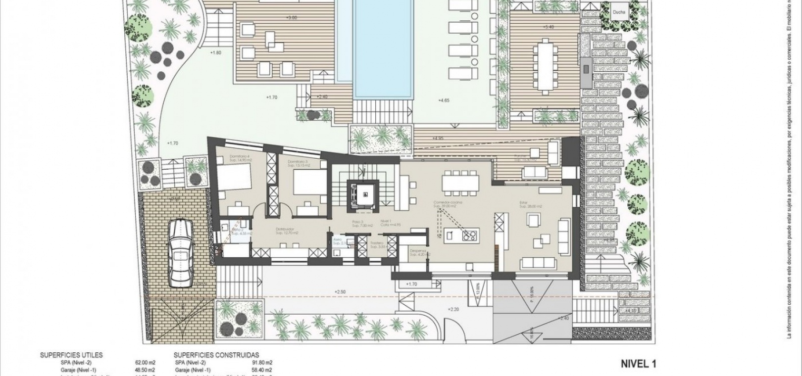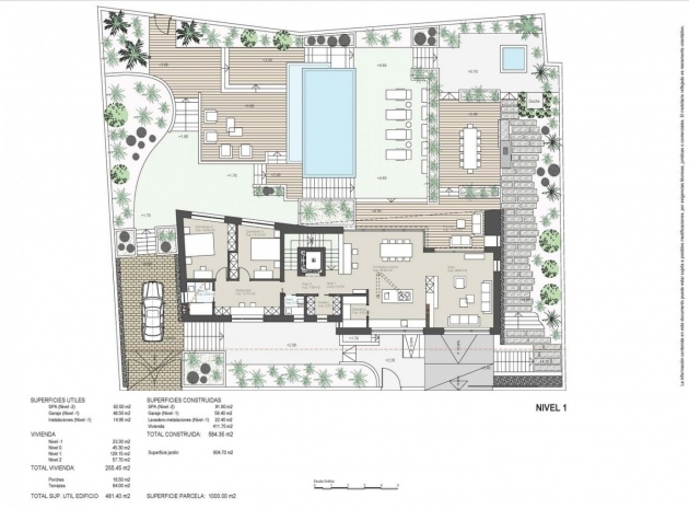Die Villa verfügt über eine Fläche von 1.000 m2 Grundstück, 585 m2 gebaut, zusätzlich zu 805 m2 Garten komplett mit privatem Schwimmbad von 10 x 5 Meter mit unvergleichlichem Blick, mit Roll-up-Abdeckung und beheizt fertig. Außerdem verfügt es über einen Außen-Whirlpool und einen Entspannungsbereich mit Panoramablick auf das Mittelmeer.