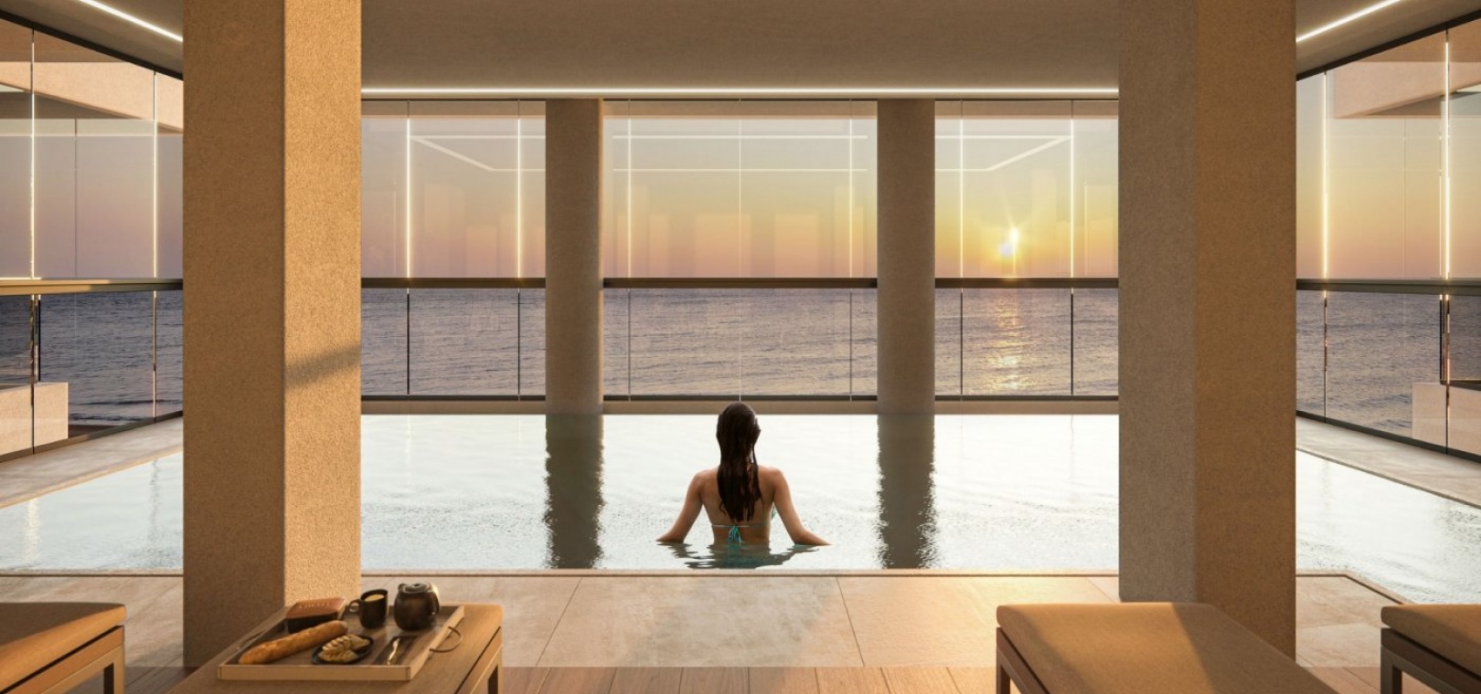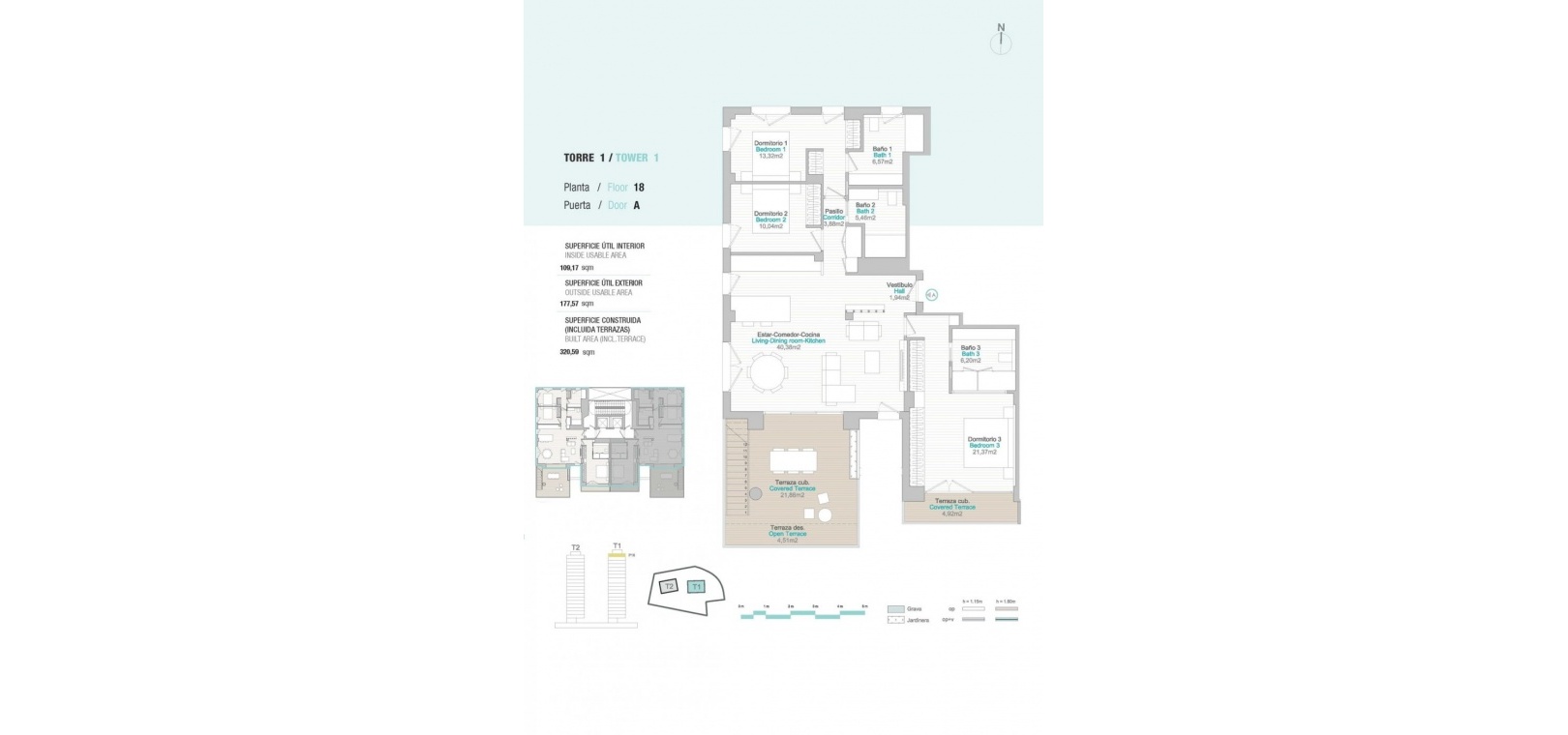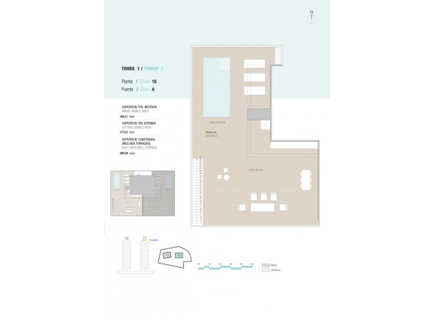 Große Gemeinschaftsbereiche mit Gärten, Schwimmbad, Paddle-Tennis, Kinderbereich. Im 11. Stock des Turms 1: Infinity-Pool, Sauna, Fitnessraum und Chill-Bereich mit Meerblick.