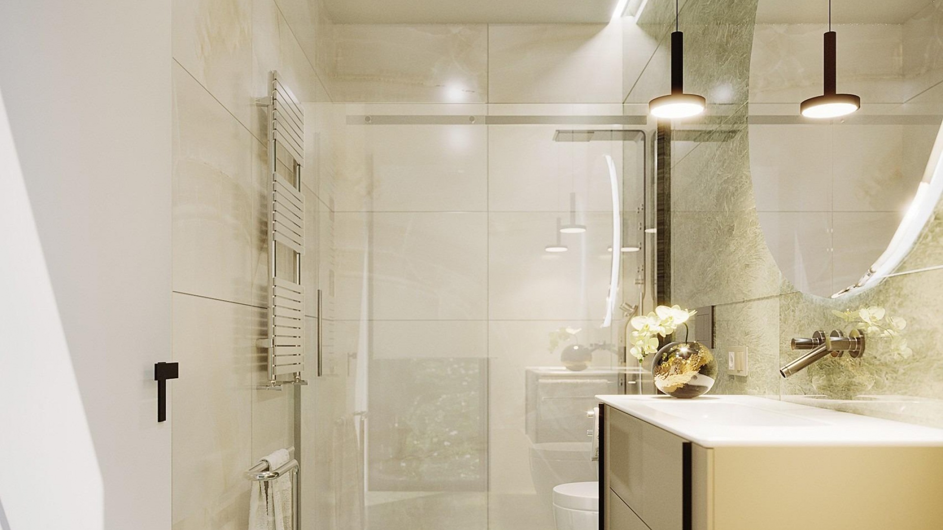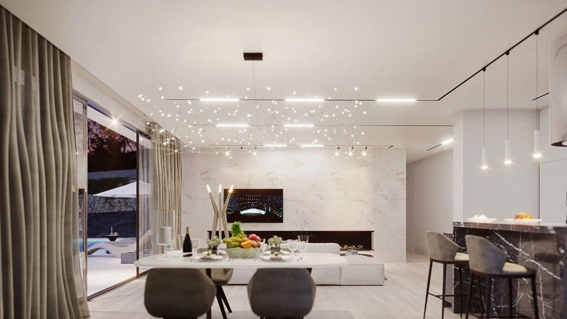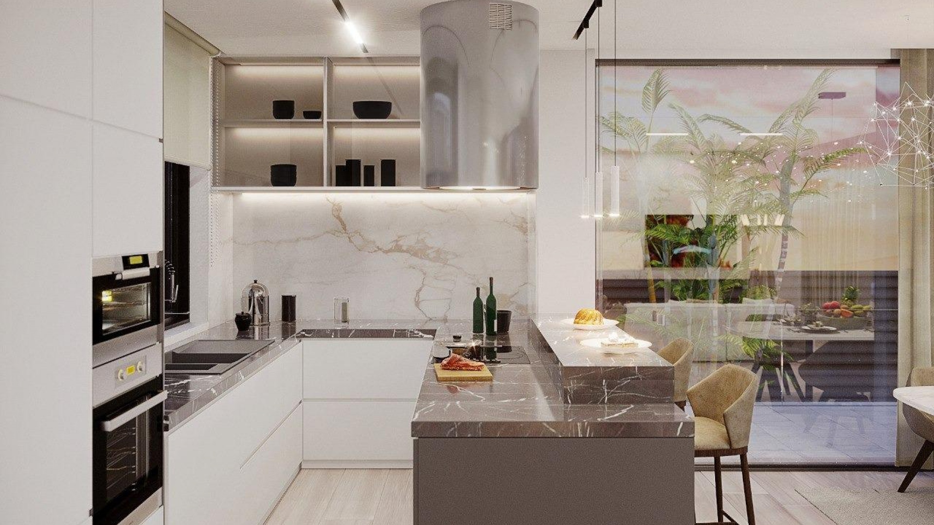 Neubau Villa verfügt über 3 Schlafzimmer, 3 Bäder, offene Küche mit dem Wohnbereich, Einbauschränke, geräumige Terrassen, privaten Garten mit dem Pool und Keller mit der Garage.