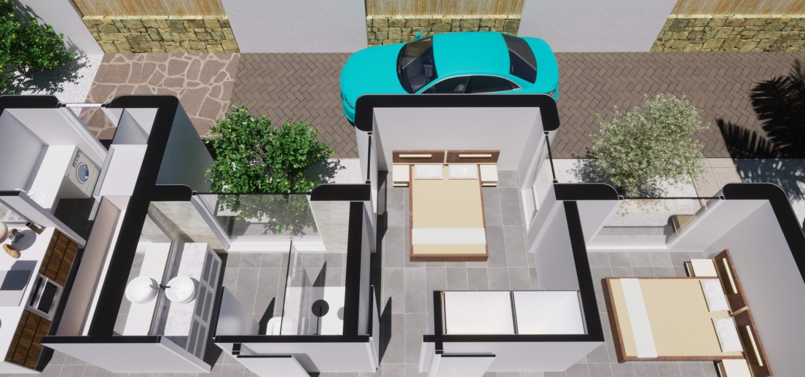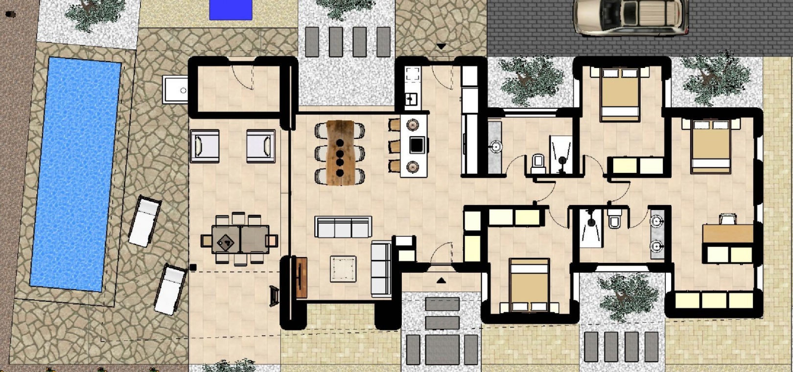 Materialien und viele Elemente können angepasst werden, erlaubt das Grundstück für zusätzliche Räume, auch eine Garage gebaut.
