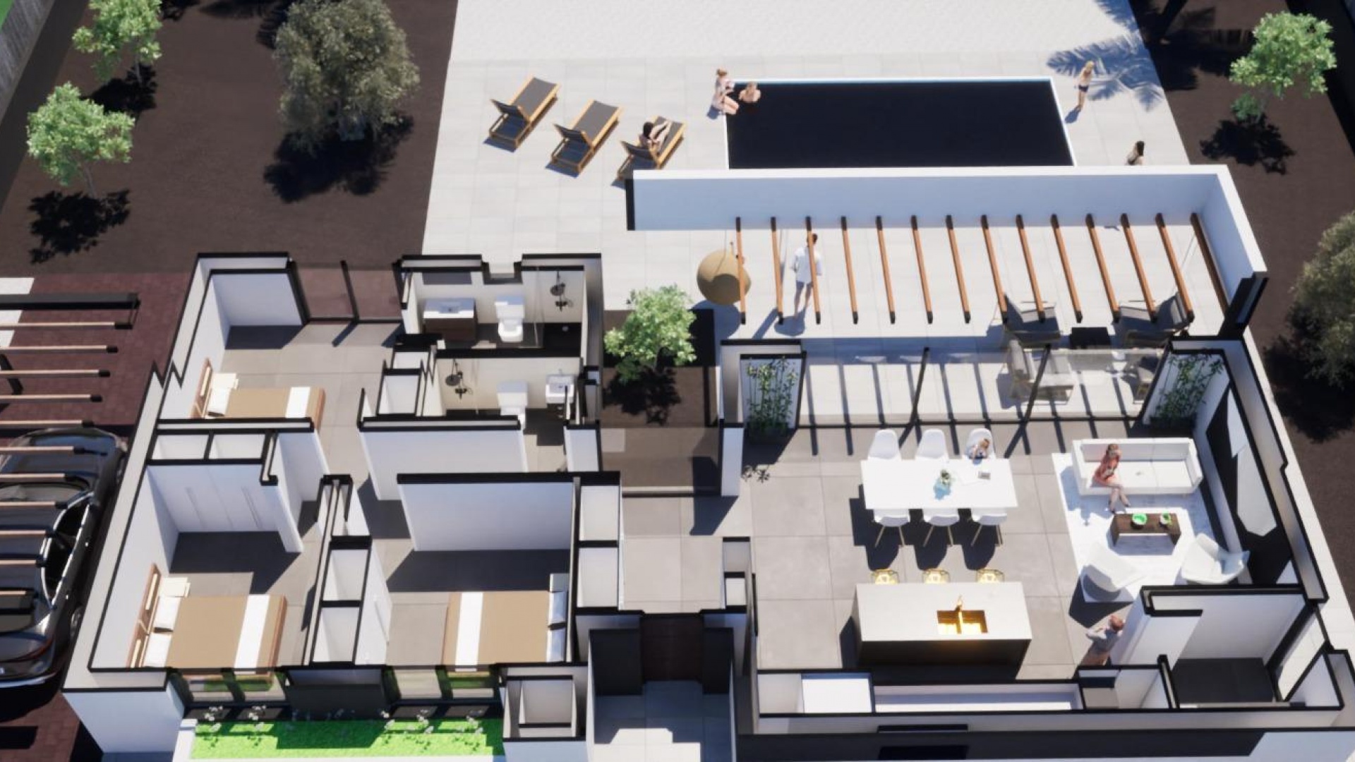 Das Grundstück ist sehr groß, es besteht die Möglichkeit, einen Keller zu bauen (mit oder ohne Garage) und auch einen Chillout-Platz im Außenbereich in der Nähe des Pools, innerhalb der 5 m gesetzlichen Abstand von der Grenze.