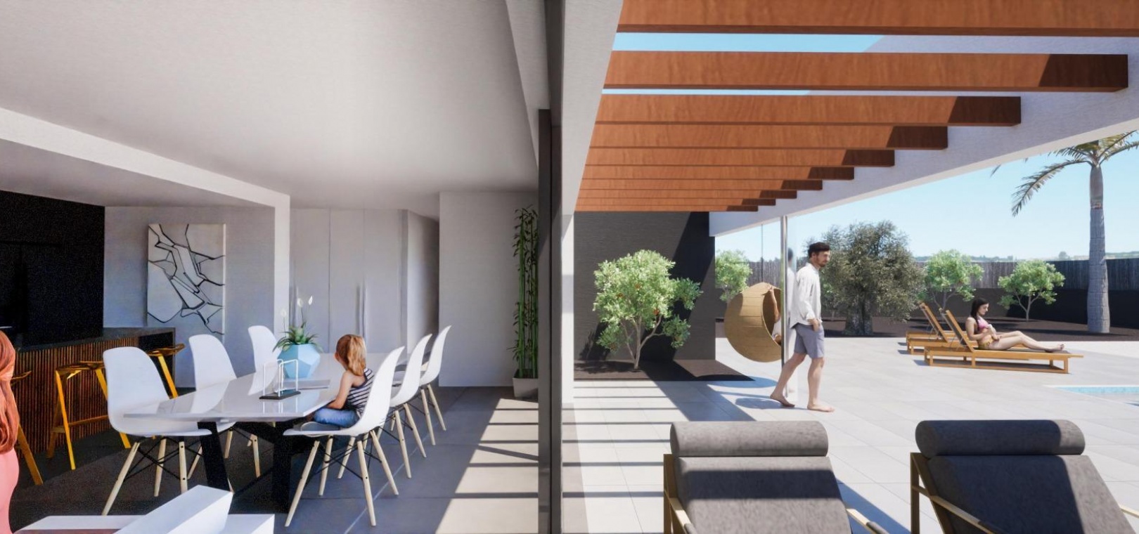 Wunderschöne moderne Neubauvillen mit Außenterrasse und Pool.