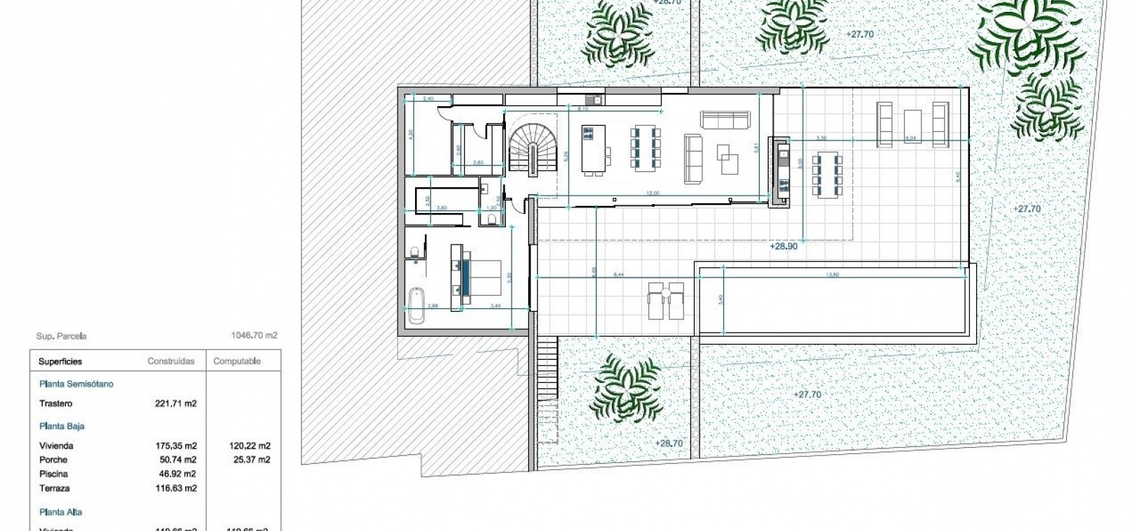 EXTRAS: Technal Schreinerei mit Sicherheitsglas, voll ausgestattete Küche mit Siemens-Geräten, Bäder und komplette Roca Marke Armaturen, LED-Beleuchtung, aerothermische System für Warmwasser und Fußbodenheizung, Klimaanlage Kanäle (warm und kalt) im ganzen Haus, Sonnenkollektoren, Einbauschränke, elektrische Rollläden, Innen-Alarm, Pre-Installation von Outdoor-Alarm-und Überwachungskameras. Rechteckiges Schwimmbad mit Überlaufsystem, Grillplatz, Waschküche, fertiger Garten.