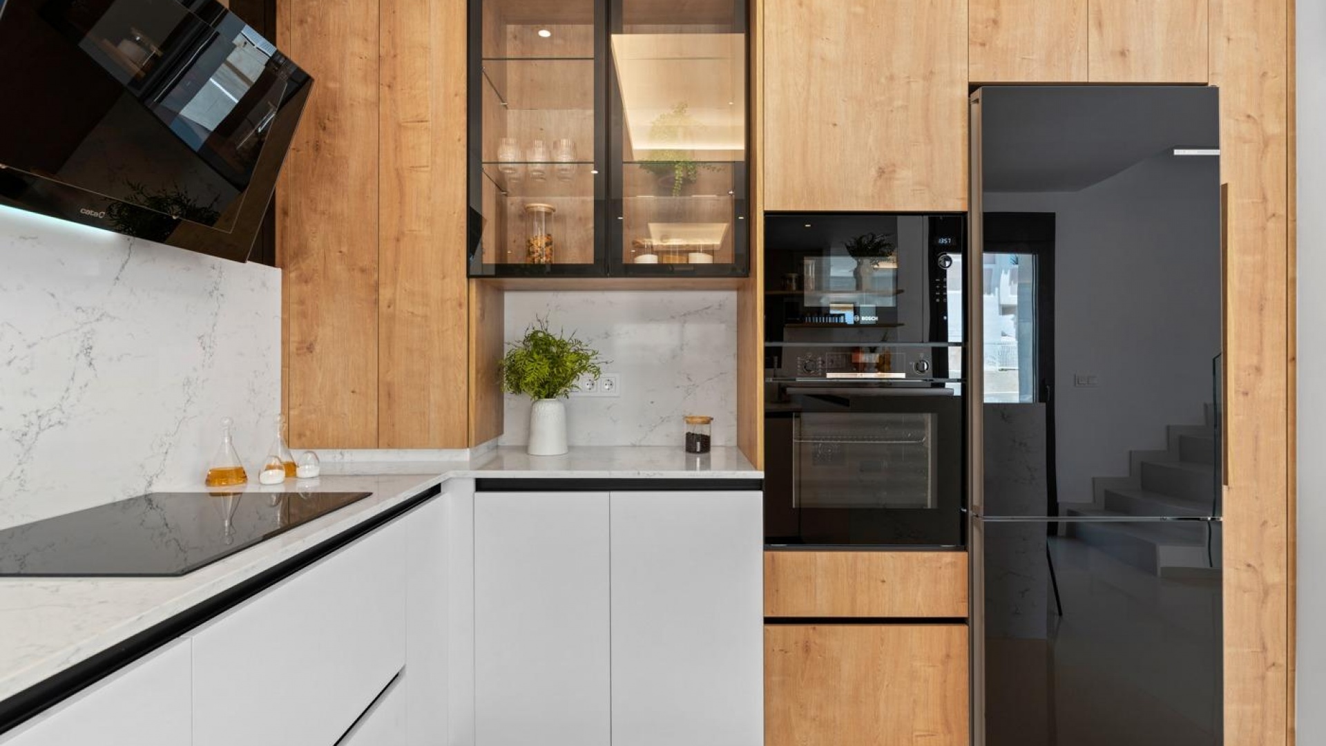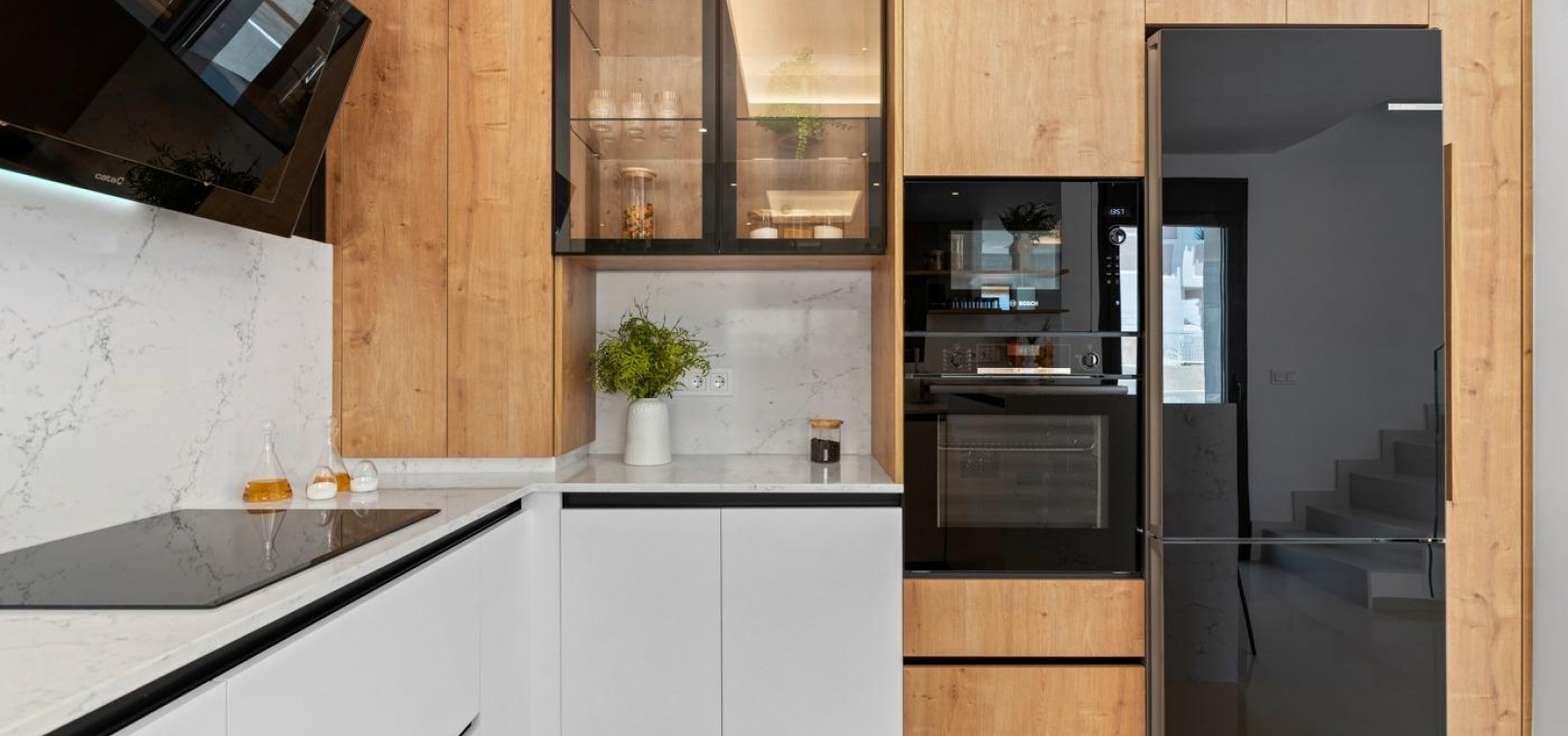 Villa gebaut über 2 Etagen, hat Wohn-Esszimmer mit offener Küche, 3 Schlafzimmer und 3 Bäder, große Terrasse, privater Garten, Schwimmbad und Parkplatz.