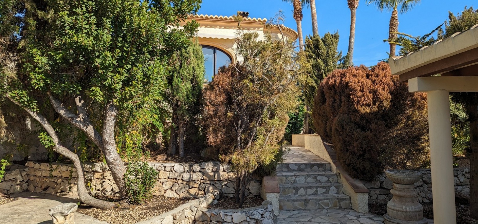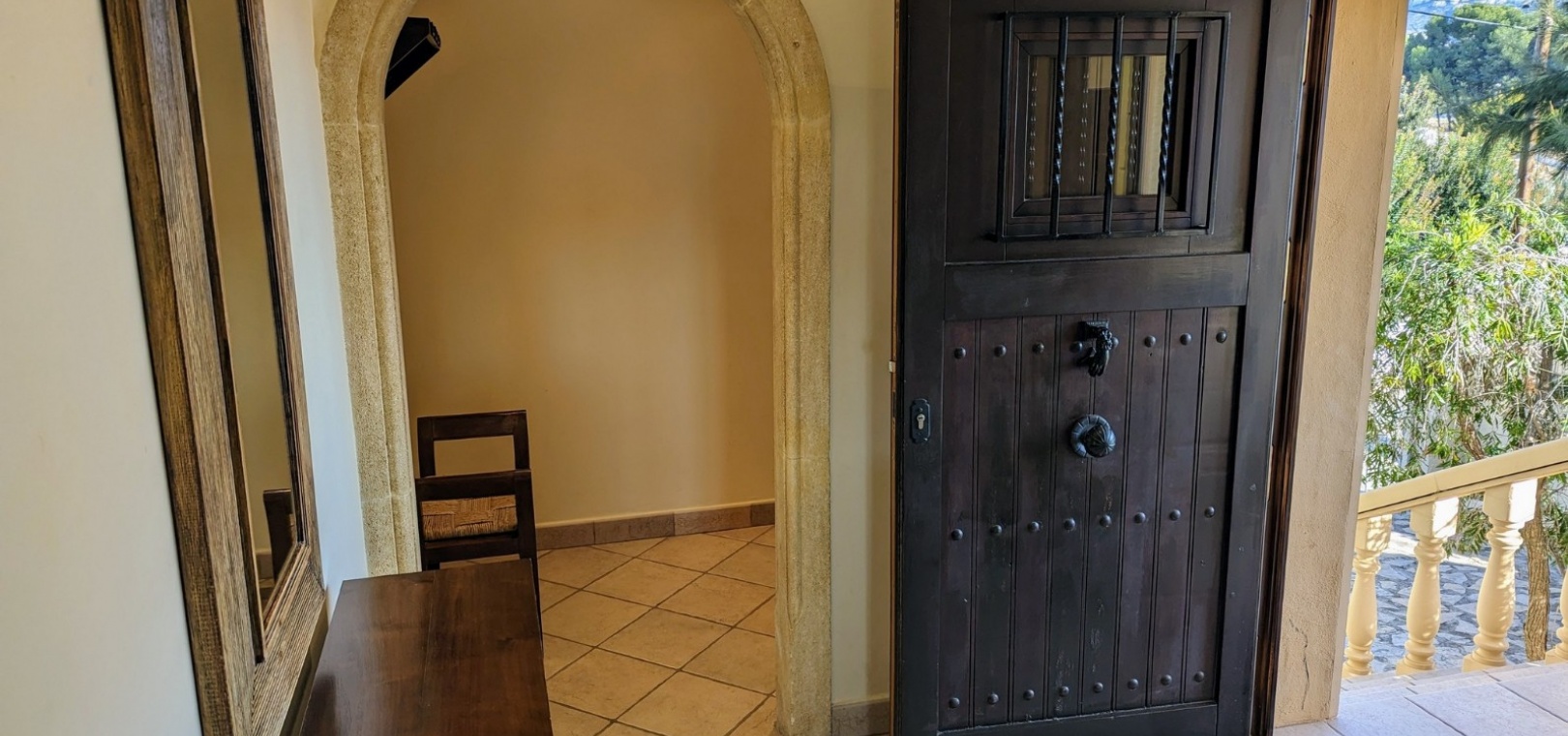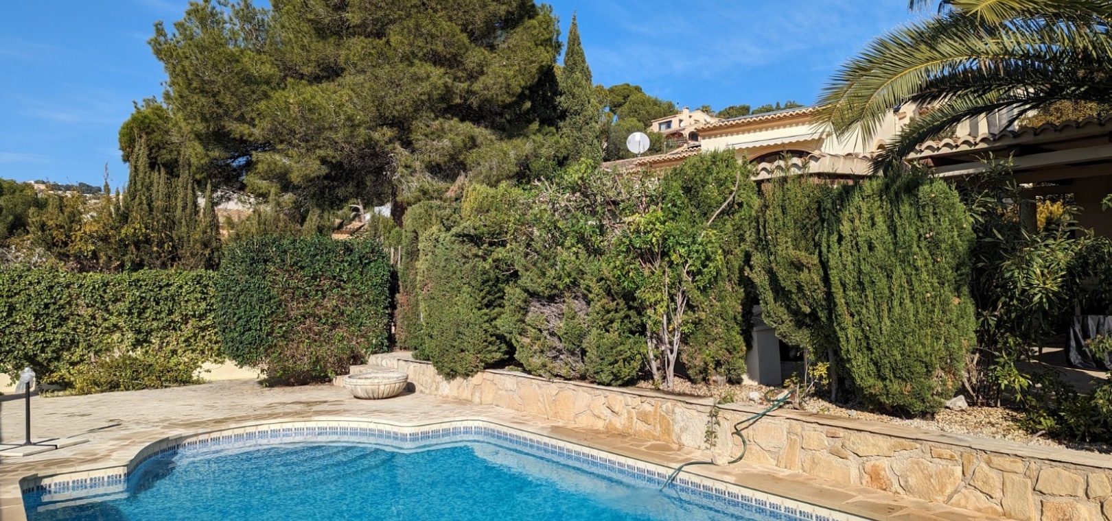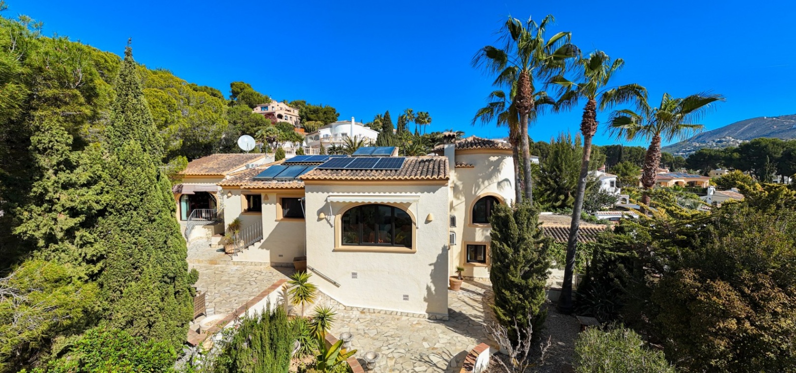 Diese geräumige, traditionelle Villa mit etwas Meerblick befindet sich in günstiger Lage, nur einen kurzen Spaziergang vom Strand, dem Stadtzentrum und dem Yachthafen in Moraira entfernt. Sie ist über zwei separate Etagen verteilt und befindet sich auf einem großen Grundstück mit sehr wenigen Stufen. Der Zugang erfolgt über eine ruhige Wohnstraße und dann über einen bewachten Parkplatz oder durch ein Fußgängertor. Vom Parkplatz aus führt eine Treppe hinauf zur Veranda und zur Eingangstür. Man betritt einen Flur, rechts befindet sich ein Tosca-Bogen, der zu einem Raum mit Ablagemöglichkeiten für Mäntel und Schuhe führt, und links ein weiterer Tosca-Bogen, der in das geräumige Wohnzimmer führt, das über einen Tosca-Kamin mit integriertem Holzofen verfügt. Am Ende des Wohnzimmers befindet sich ein Entspannungsbereich, von dem aus Sie den Garten und das Meer überblicken können. Durch eine Tür auf der linken Seite erreichen Sie das Schlafzimmer 4, ein helles und luftiges Zimmer, das auch als Büro genutzt werden könnte. Durch einen Torbogen gelangt man in einen langen Flur, gleich links geht es in eine geräumige Küche mit Esszimmer, ebenfalls mit Blick auf den Garten und das Meer. Die Küche ist mit weißen Schränken, hervorragenden Blue Pearl Granitarbeitsplatten und Edelstahlgeräten ausgestattet, darunter ein amerikanischer Kühlschrank mit Gefrierfach. Der Essbereich hat eine Treppe, die zu einer offenen Terrasse führt. Weiter unten im Flur finden Sie zwei Schlafzimmer, die durch ein Duschbad getrennt sind, und einen Abstellraum im Flur. Am Ende des Flurs befindet sich das luxuriöse Hauptschlafzimmer, ein großer Raum mit einem Tosca-Bogen, der zu einem Entspannungsbereich mit Gartenblick und einer Treppe hinunter zu einer offenen Terrasse führt. Gegenüber dem Schlafzimmer und in einem kleinen Flur befindet sich das großartige Hauptbadezimmer mit Dusche, Badewanne und einem großen Waschtisch mit Waschbecken für sie und ihn. Die untere Ebene der Villa besteht aus einem Abstellraum, einem zweiten großen Abstellraum und einem Gästeapartment mit Wohn-/Essbereich mit Kochnische, einem Duschbad und einem Schlafzimmer. Im Außenbereich ist die Villa von einem gut bepflanzten, aber pflegeleichten Garten und mehreren offenen Terrassen für verschiedene Tageszeiten umgeben. Ein paar Stufen hinunter von dieser Ebene befindet sich eine herrliche überdachte Sommerküche mit einem überdachten Essbereich, ideal für Mahlzeiten im Freien an einem heißen Tag. zwei Stufen hinunter von hier befindet sich der völlig private Poolbereich, der einen wunderschönen 10,5 x 5,5 m großen, solarbeheizten Pool und eine Pool-Dusche umfasst. Am Eingang befindet sich ein Carport mit eigenem Abstellraum. Es gibt auch einen großen Keller, in dem die Solaranlage untergebracht ist.- Eckdaten:- Erbaut 1971- Gegenwärtige Besitzer seit 2003 und Villa renoviert seit 2004- Solarwasseranlage installiert 2010- Solarstromanlage installiert 2023- Gaszentralheizung- Klimaanlage- Doppelt verglaste Fenster mit Climalit-Glas- Einige Fenster mit Holzläden und Moskitonetzen- Markisen an den Wohnzimmerfenstern- Sicherheitssystem mit Kameras- Hauswasserfiltersystem- 10.5 x 5,5m Pool solarbeheizt - Glasfaser-Internet verfügbar- Jährliche Steuern 888,07€- Entfernungen:- 1km zum Strand und Stadtzentrum- 1,5km zum Yachthafen- 3,7km zum Golfplatz- 9.2km zur Autobahnauffahrt in Benissa- Diese Immobilie hat eine sehr erfolgreiche Vermietungsgeschichte- Um Enttäuschungen zu vermeiden, organisieren Sie noch heute Ihren Besuch in dieser Villa!- Weitere Fotos und Drohnenvideo/Fotos folgen