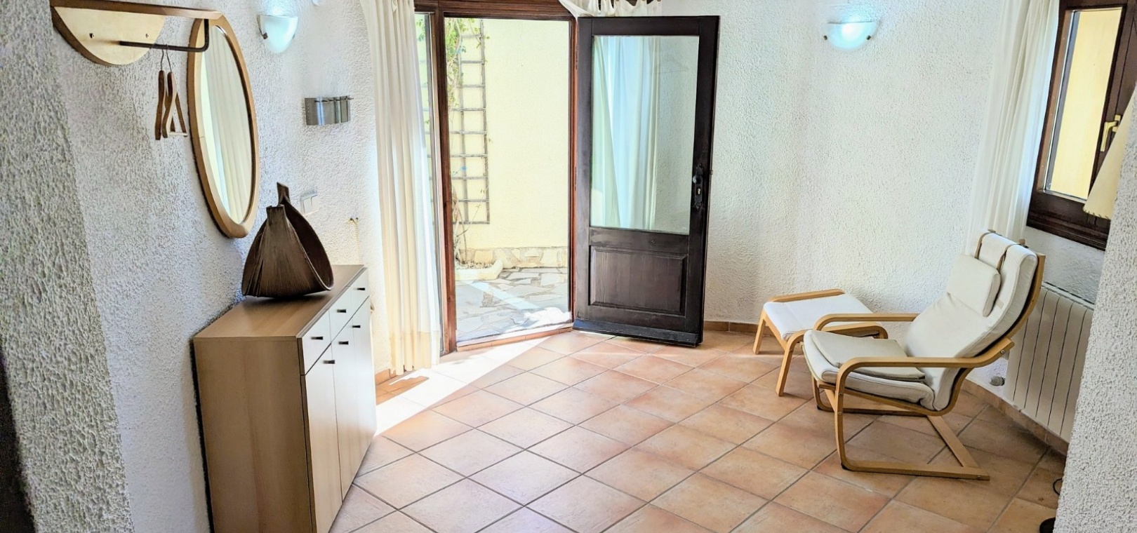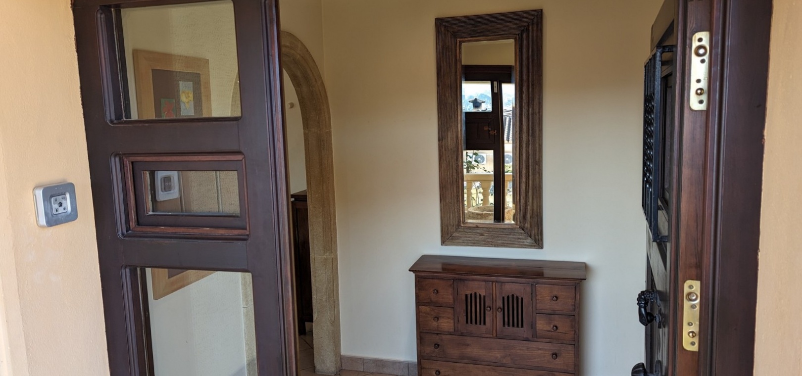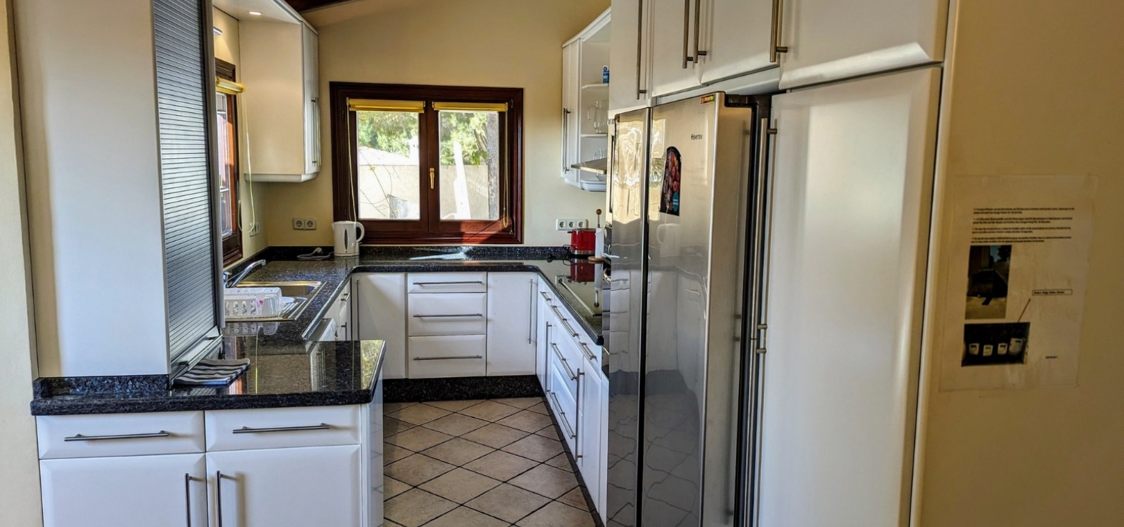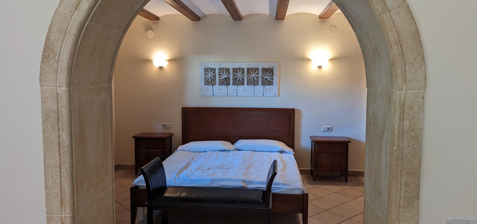Diese geräumige, traditionelle Villa mit etwas Meerblick befindet sich in günstiger Lage, nur einen kurzen Spaziergang vom Strand, dem Stadtzentrum und dem Yachthafen in Moraira entfernt. Sie ist über zwei separate Etagen verteilt und befindet sich auf einem großen Grundstück mit sehr wenigen Stufen. Der Zugang erfolgt über eine ruhige Wohnstraße und dann über einen bewachten Parkplatz oder durch ein Fußgängertor. Vom Parkplatz aus führt eine Treppe hinauf zur Veranda und zur Eingangstür. Man betritt einen Flur, rechts befindet sich ein Tosca-Bogen, der zu einem Raum mit Ablagemöglichkeiten für Mäntel und Schuhe führt, und links ein weiterer Tosca-Bogen, der in das geräumige Wohnzimmer führt, das über einen Tosca-Kamin mit integriertem Holzofen verfügt. Am Ende des Wohnzimmers befindet sich ein Entspannungsbereich, von dem aus Sie den Garten und das Meer überblicken können. Durch eine Tür auf der linken Seite erreichen Sie das Schlafzimmer 4, ein helles und luftiges Zimmer, das auch als Büro genutzt werden könnte. Durch einen Torbogen gelangt man in einen langen Flur, gleich links geht es in eine geräumige Küche mit Esszimmer, ebenfalls mit Blick auf den Garten und das Meer. Die Küche ist mit weißen Schränken, hervorragenden Blue Pearl Granitarbeitsplatten und Edelstahlgeräten ausgestattet, darunter ein amerikanischer Kühlschrank mit Gefrierfach. Der Essbereich hat eine Treppe, die zu einer offenen Terrasse führt. Weiter unten im Flur finden Sie zwei Schlafzimmer, die durch ein Duschbad getrennt sind, und einen Abstellraum im Flur. Am Ende des Flurs befindet sich das luxuriöse Hauptschlafzimmer, ein großer Raum mit einem Tosca-Bogen, der zu einem Entspannungsbereich mit Gartenblick und einer Treppe hinunter zu einer offenen Terrasse führt. Gegenüber dem Schlafzimmer und in einem kleinen Flur befindet sich das großartige Hauptbadezimmer mit Dusche, Badewanne und einem großen Waschtisch mit Waschbecken für sie und ihn. Die untere Ebene der Villa besteht aus einem Abstellraum, einem zweiten großen Abstellraum und einem Gästeapartment mit Wohn-/Essbereich mit Kochnische, einem Duschbad und einem Schlafzimmer. Im Außenbereich ist die Villa von einem gut bepflanzten, aber pflegeleichten Garten und mehreren offenen Terrassen für verschiedene Tageszeiten umgeben. Ein paar Stufen hinunter von dieser Ebene befindet sich eine herrliche überdachte Sommerküche mit einem überdachten Essbereich, ideal für Mahlzeiten im Freien an einem heißen Tag. zwei Stufen hinunter von hier befindet sich der völlig private Poolbereich, der einen wunderschönen 10,5 x 5,5 m großen, solarbeheizten Pool und eine Pool-Dusche umfasst. Am Eingang befindet sich ein Carport mit eigenem Abstellraum. Es gibt auch einen großen Keller, in dem die Solaranlage untergebracht ist.- Eckdaten:- Erbaut 1971- Gegenwärtige Besitzer seit 2003 und Villa renoviert seit 2004- Solarwasseranlage installiert 2010- Solarstromanlage installiert 2023- Gaszentralheizung- Klimaanlage- Doppelt verglaste Fenster mit Climalit-Glas- Einige Fenster mit Holzläden und Moskitonetzen- Markisen an den Wohnzimmerfenstern- Sicherheitssystem mit Kameras- Hauswasserfiltersystem- 10.5 x 5,5m Pool solarbeheizt - Glasfaser-Internet verfügbar- Jährliche Steuern 888,07€- Entfernungen:- 1km zum Strand und Stadtzentrum- 1,5km zum Yachthafen- 3,7km zum Golfplatz- 9.2km zur Autobahnauffahrt in Benissa- Diese Immobilie hat eine sehr erfolgreiche Vermietungsgeschichte- Um Enttäuschungen zu vermeiden, organisieren Sie noch heute Ihren Besuch in dieser Villa!- Weitere Fotos und Drohnenvideo/Fotos folgen