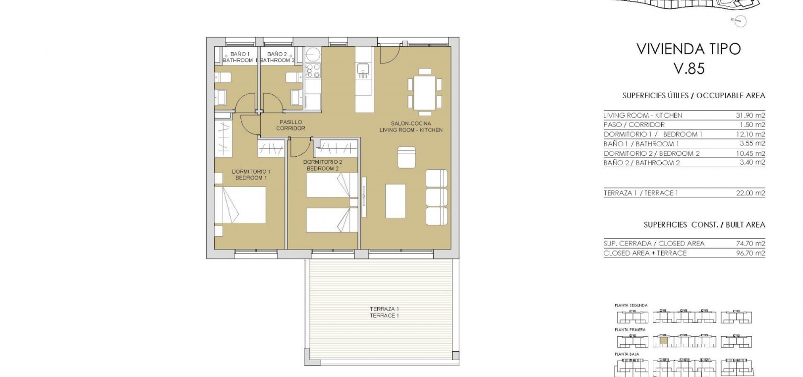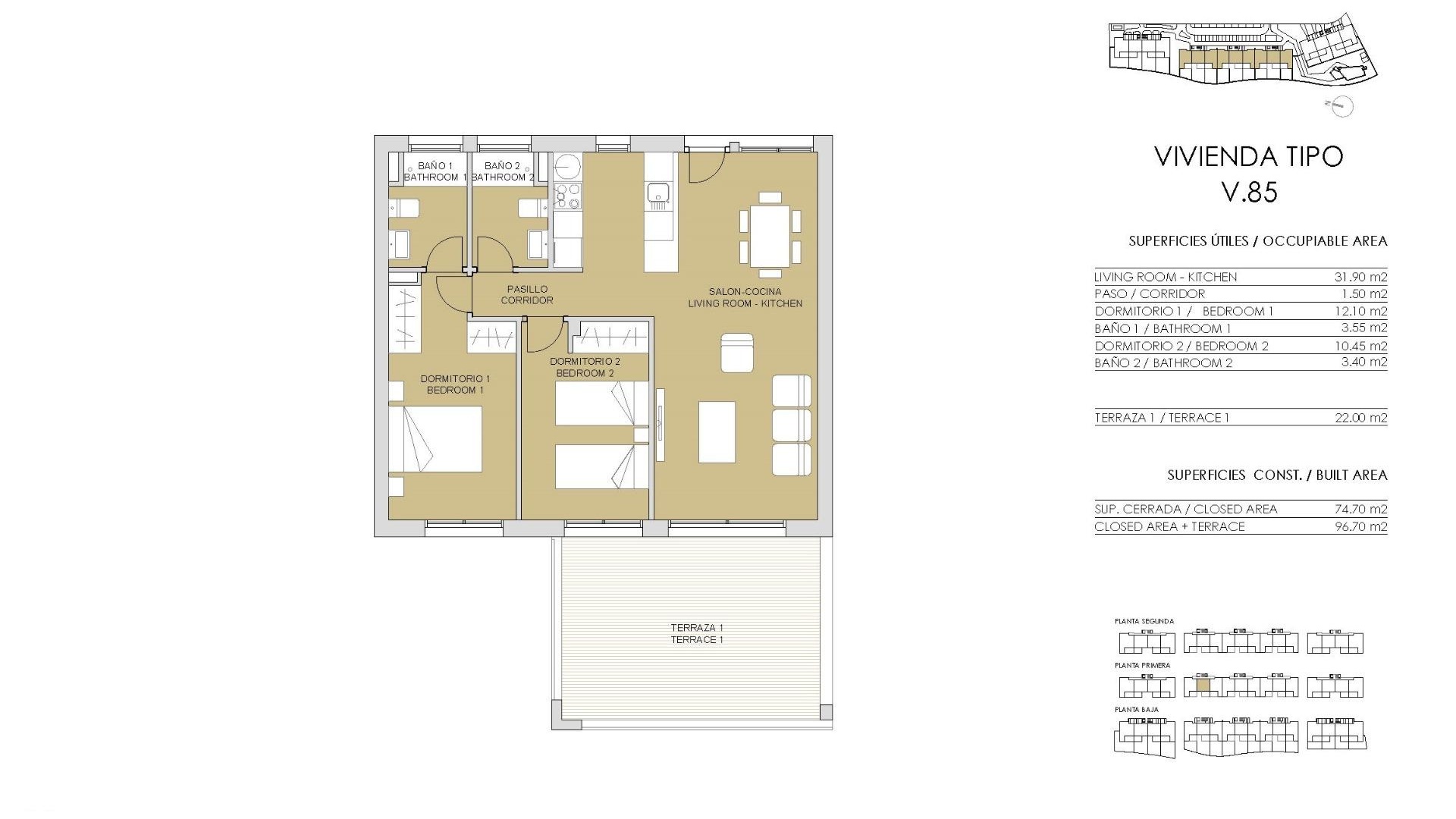 Darüber hinaus verfügen die Wohnungen über einen Parkplatz, einen Gemeinschaftspool und einen Gartenbereich.