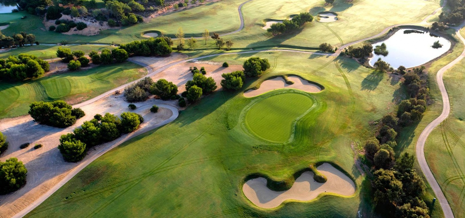 Der 18-Loch-Golfplatz liegt in der Nähe wunderschöner Strände mit kristallklarem Wasser und ist über das Straßennetz perfekt an die Städte Alicante und Murcia angebunden. Die Flughäfen von Corvera (Murcia) und Alicante sind 40 bzw. 55 Minuten entfernt.