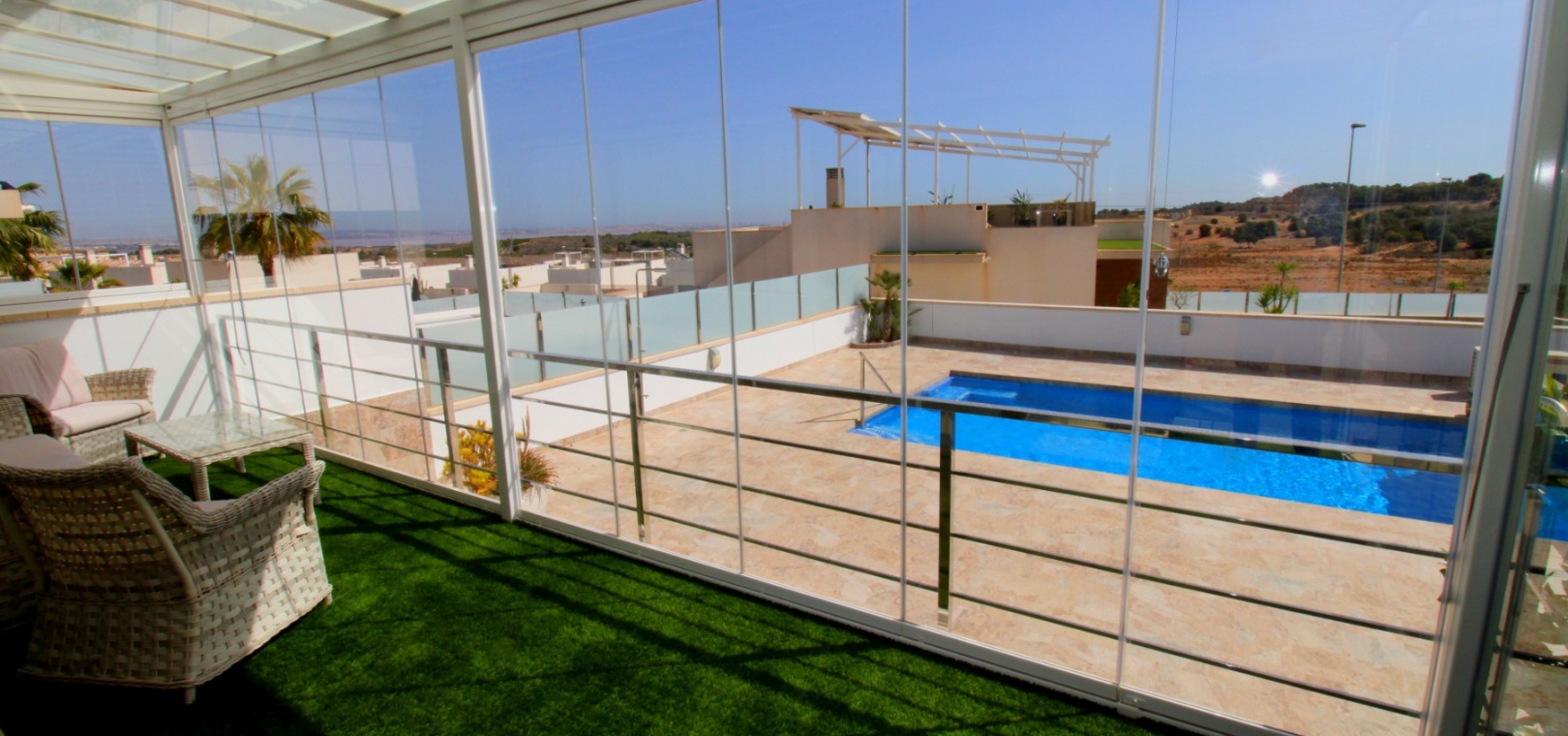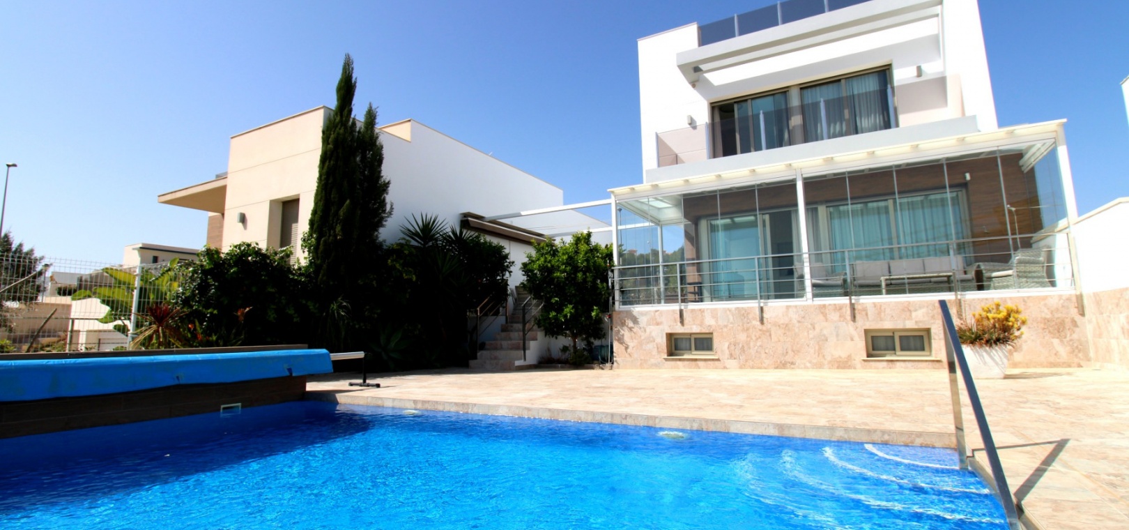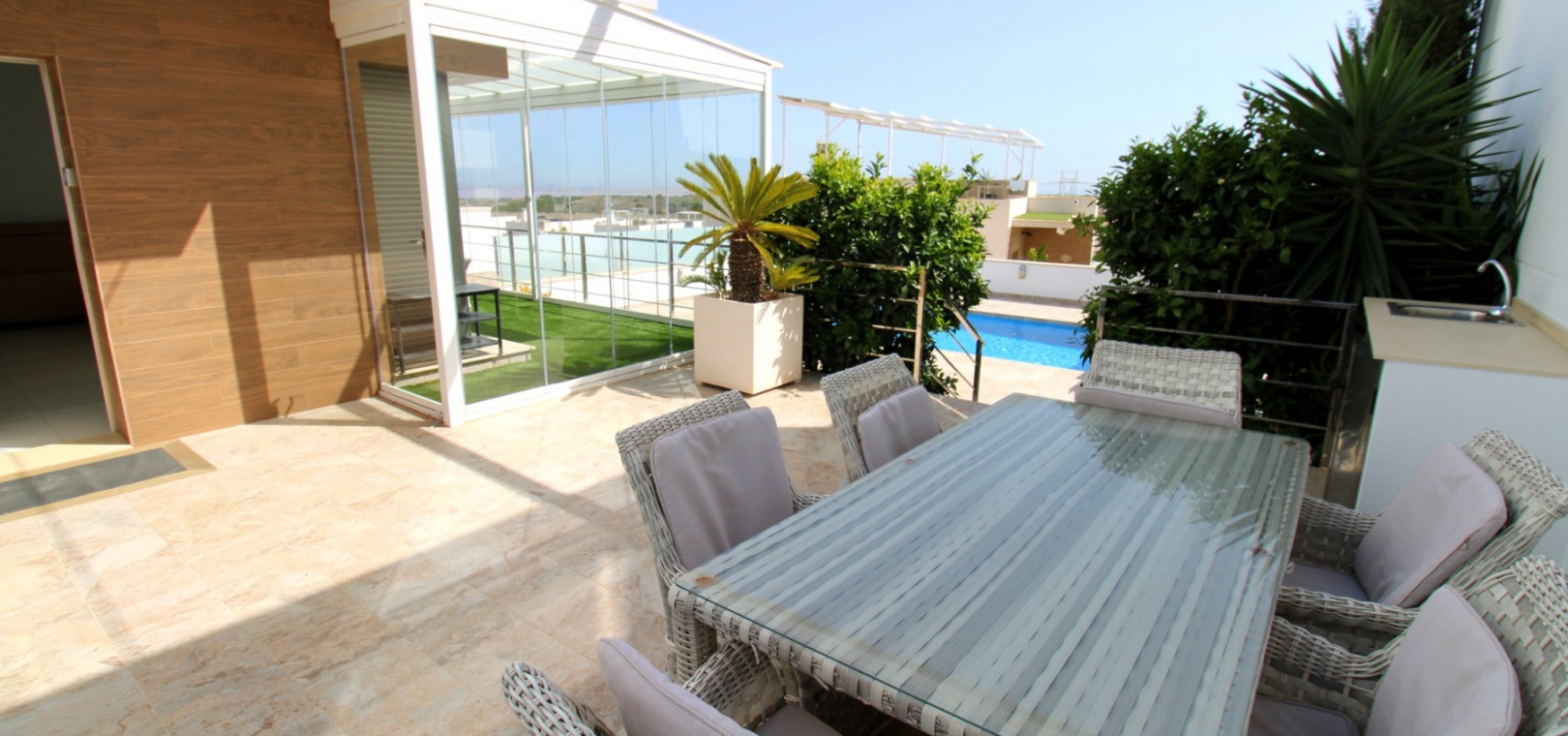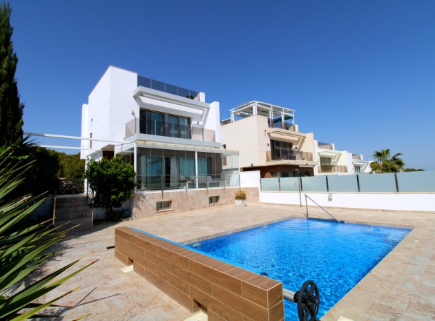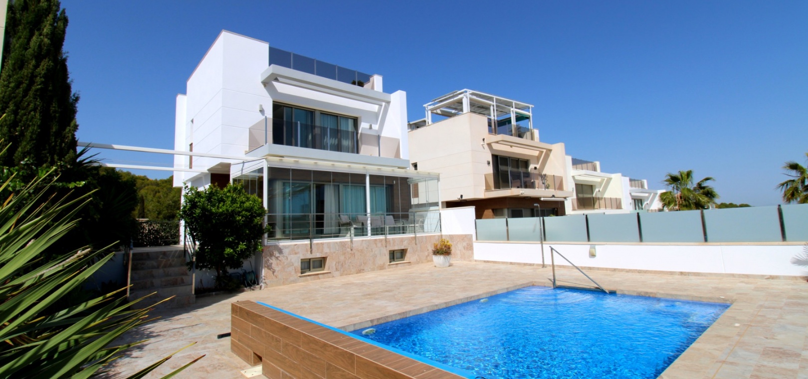 Eine luxuriöse, moderne, freistehende Villa mit 5 Schlafzimmern und 4 Bädern und privatem Pool auf einem 325 m² großen Grundstück in Res Villas Marinas, La Canada, San Miguel de Salinas, Costa Blanca.