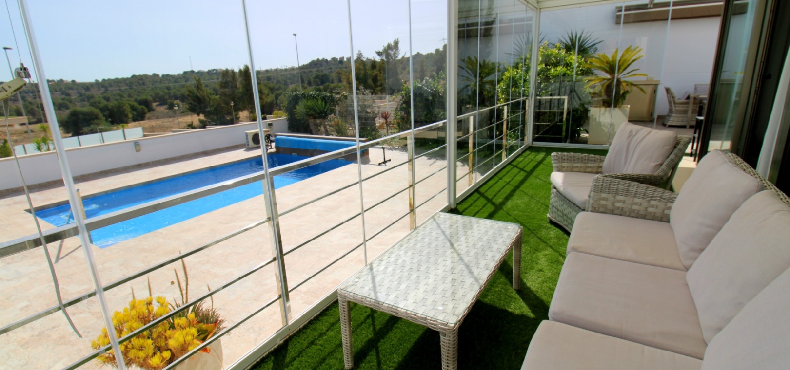 Dieses Anwesen ist nur 5 Autominuten vom prestigeträchtigen Golfplatz Las Colinas und etwa 8 Autominuten von den Golfplätzen Villamartin, Las Ramblas und Campoamor entfernt.