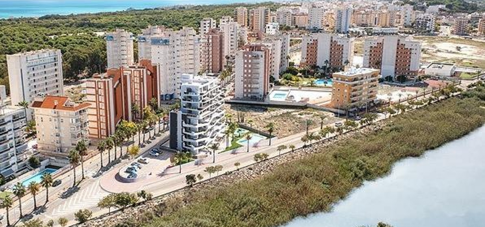 Neubau-Wohnanlage vor dem Fluss Segura und in der Nähe des Yachthafens und des Strandes von Guardamar gelegen.