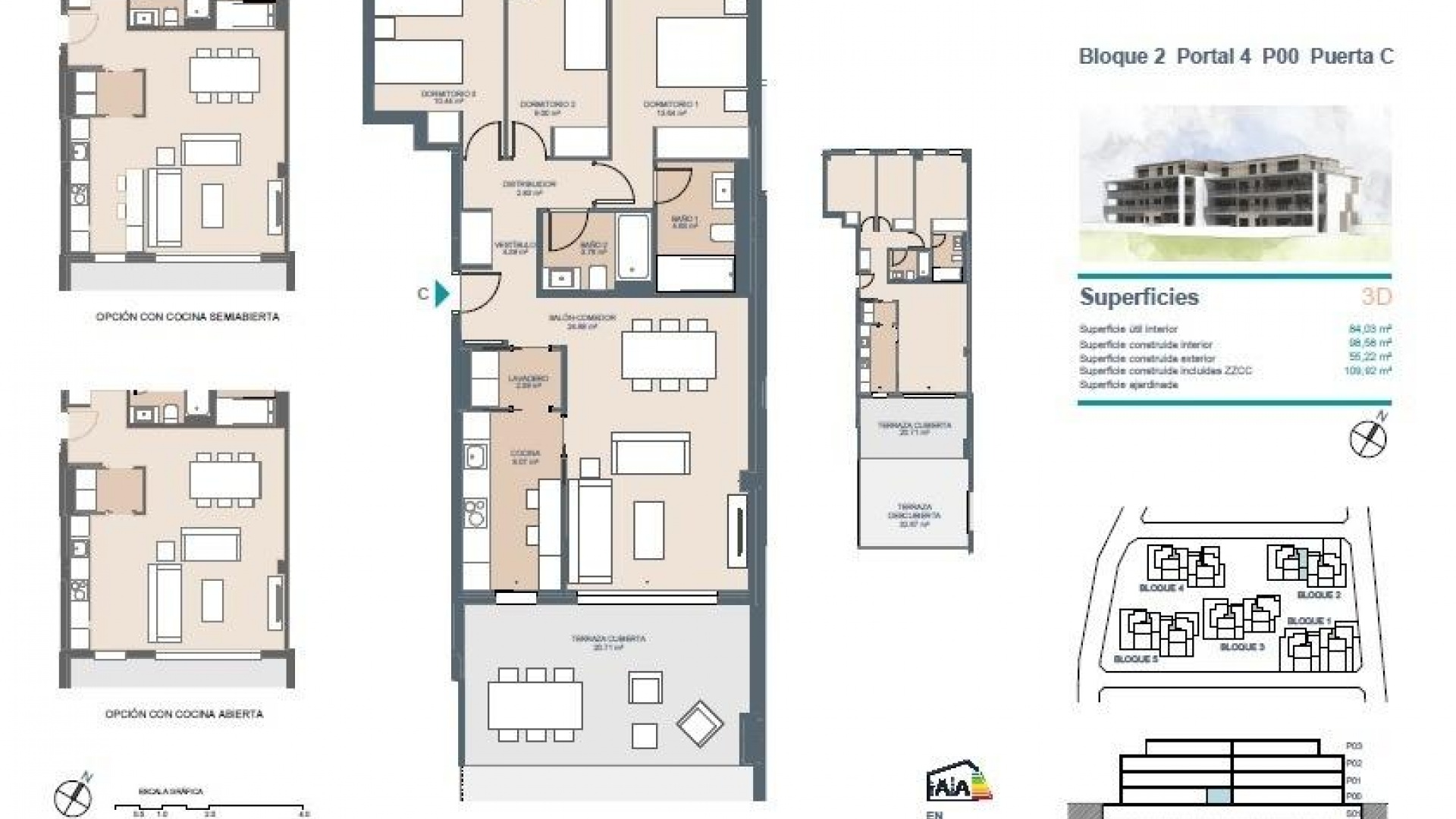 Der Neubau-Wohnkomplex besteht aus 5 Gebäuden mit 20 Wohnungen mit 2, 3 und 4 Schlafzimmern, 2 Bädern, offener Küche mit geräumigem Wohnzimmer, Einbauschränken und Terrasse.