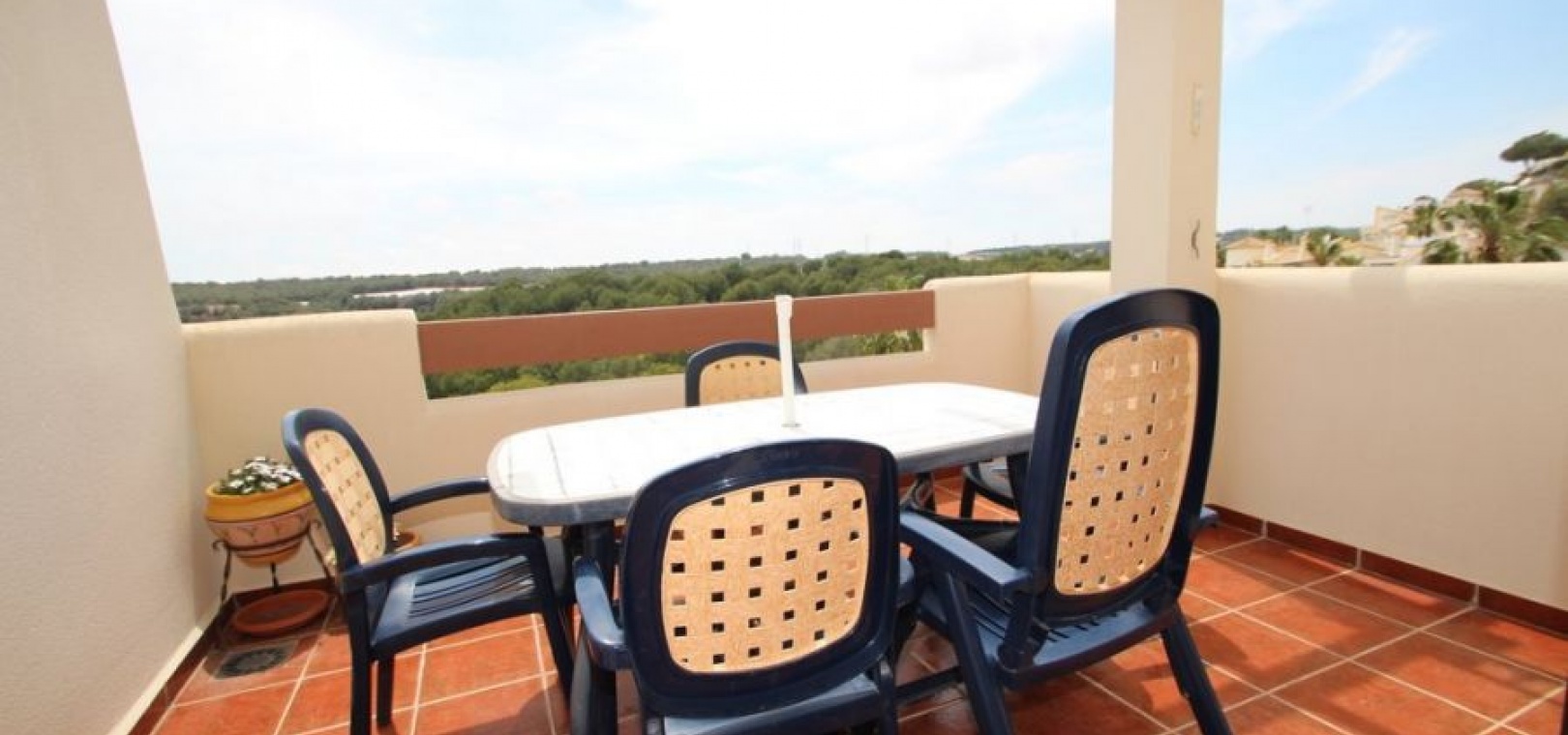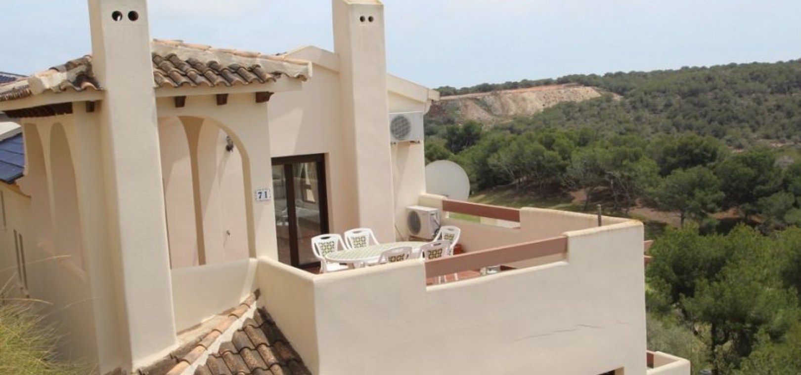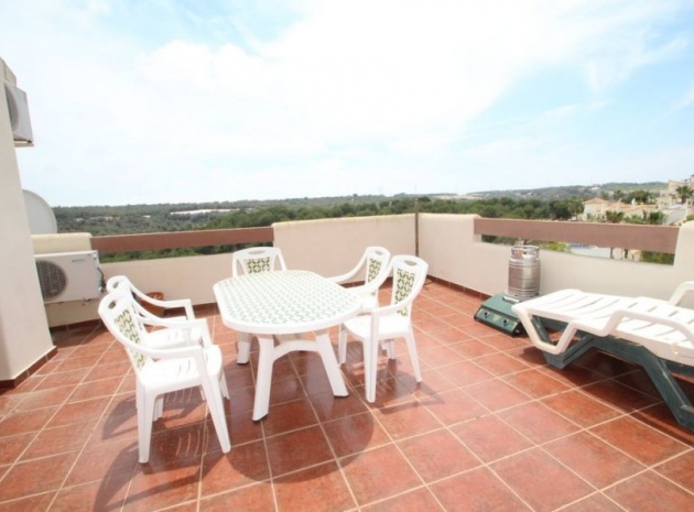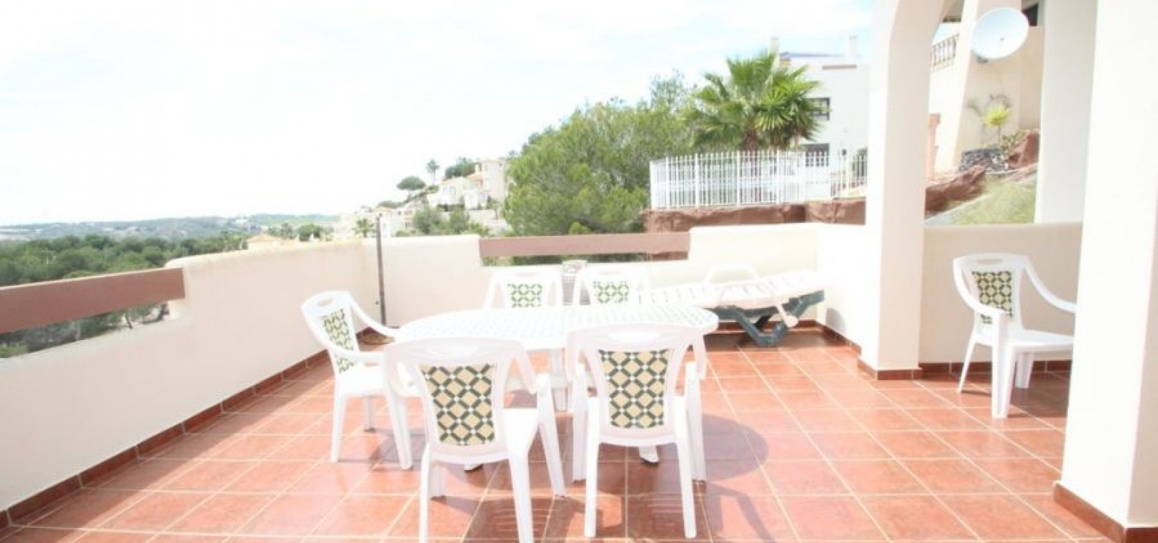 Eine nach Süden ausgerichtete Maisonette-Wohnung in der obersten Etage mit 3 Schlafzimmern und 2 Bädern, einer privaten Dachterrasse und atemberaubender Aussicht auf den Golfplatz Las Ramblas, Villamartin, Costa Blanca.