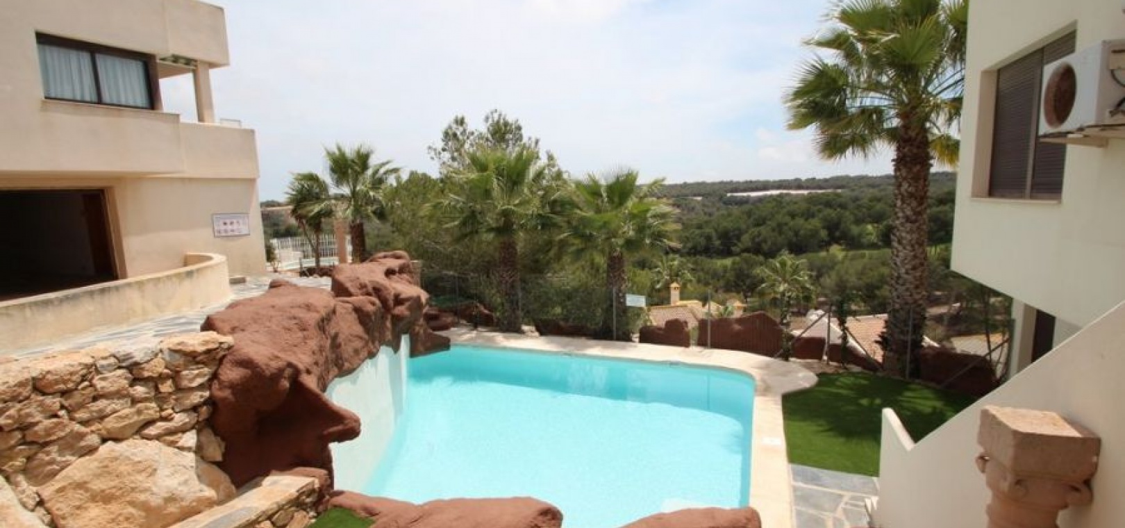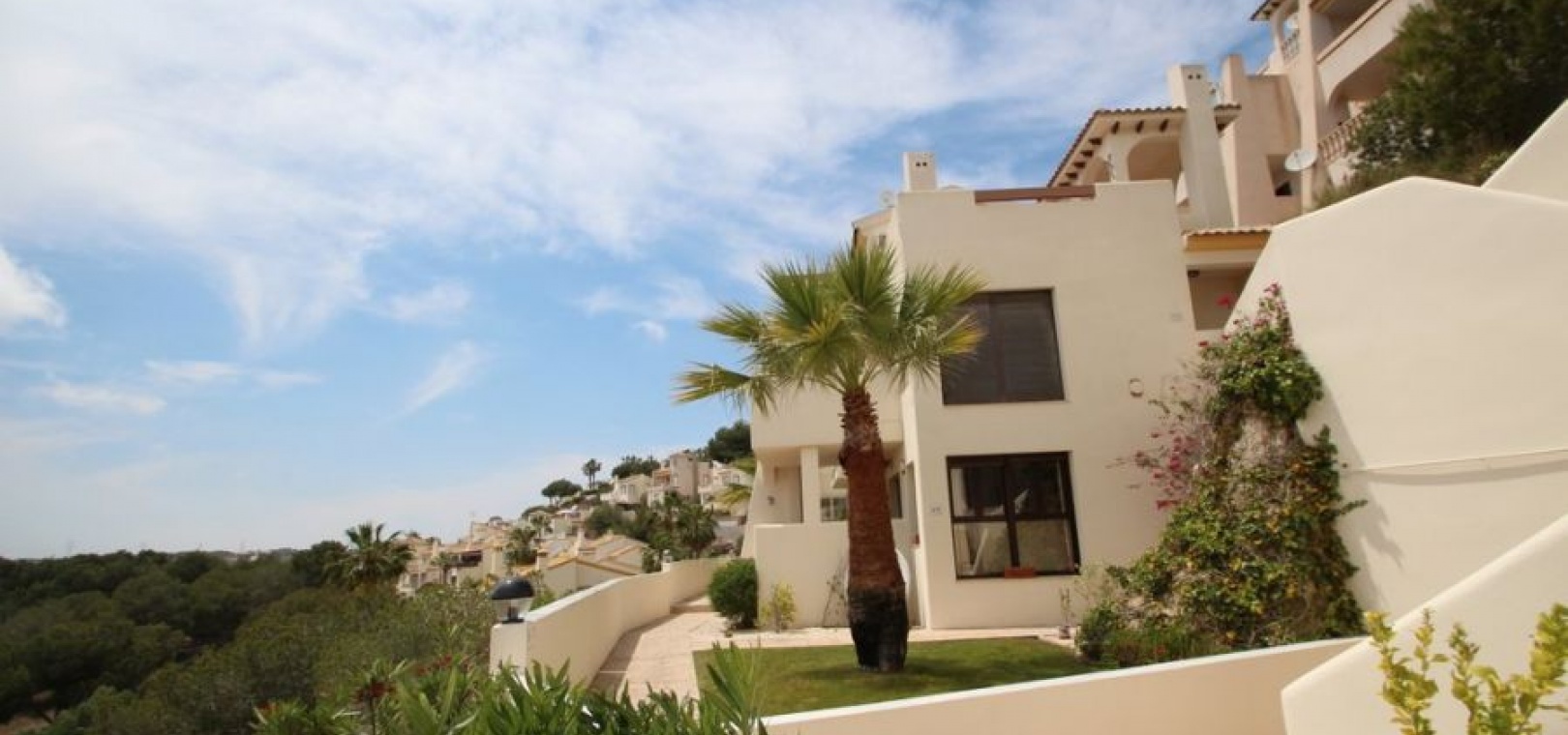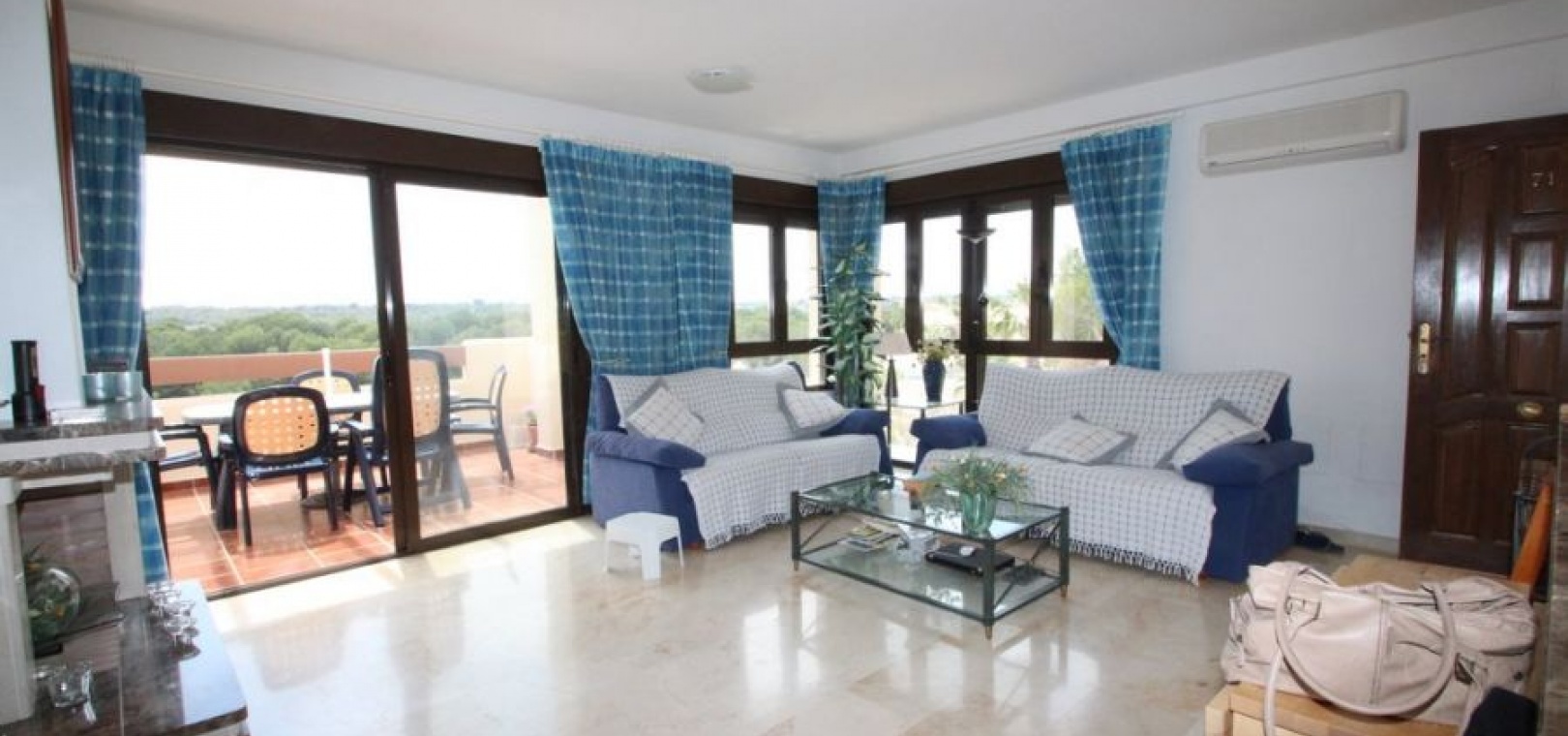 Eine nach Süden ausgerichtete Maisonette-Wohnung in der obersten Etage mit 3 Schlafzimmern und 2 Bädern, einer privaten Dachterrasse und atemberaubender Aussicht auf den Golfplatz Las Ramblas, Villamartin, Costa Blanca.