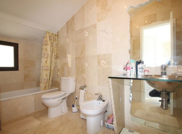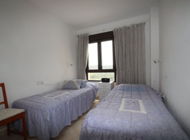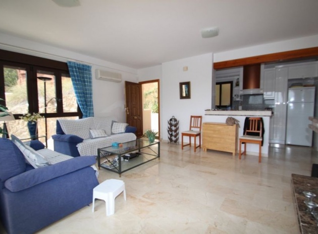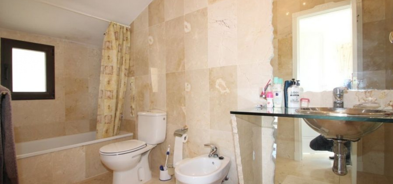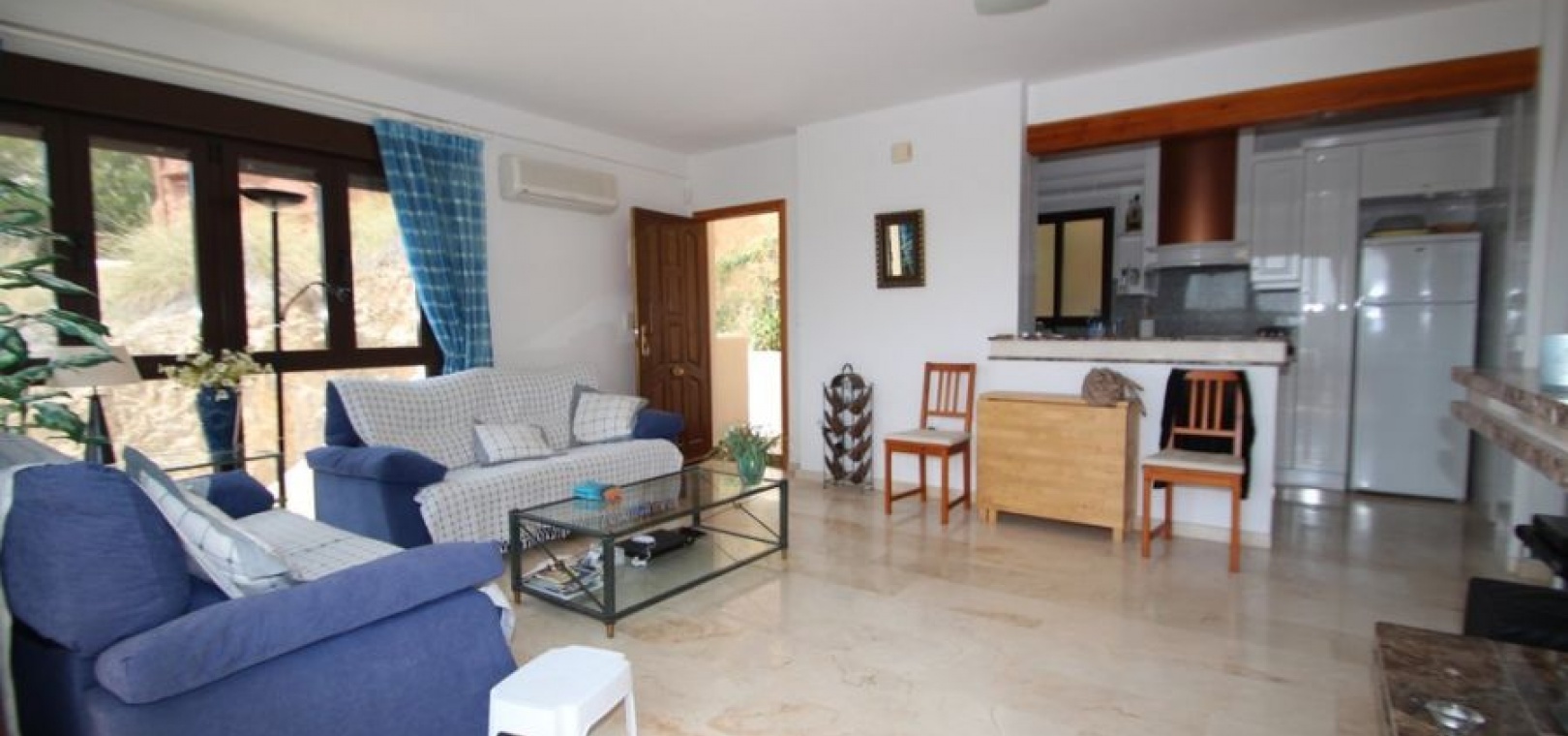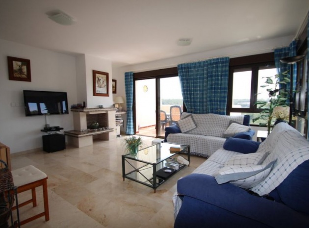 Im ersten Stock finden wir ein Wohn-/Esszimmer mit warmer und kalter Klimaanlage, eine offene Einbauküche mit Waschküche, 2 Doppelzimmer mit Einbauschränken, ein Familienbadezimmer und eine nach Süden ausgerichtete Terrasse mit Blick auf den Golfplatz Sie können die Sonne von morgens bis 15 Uhr genießen.