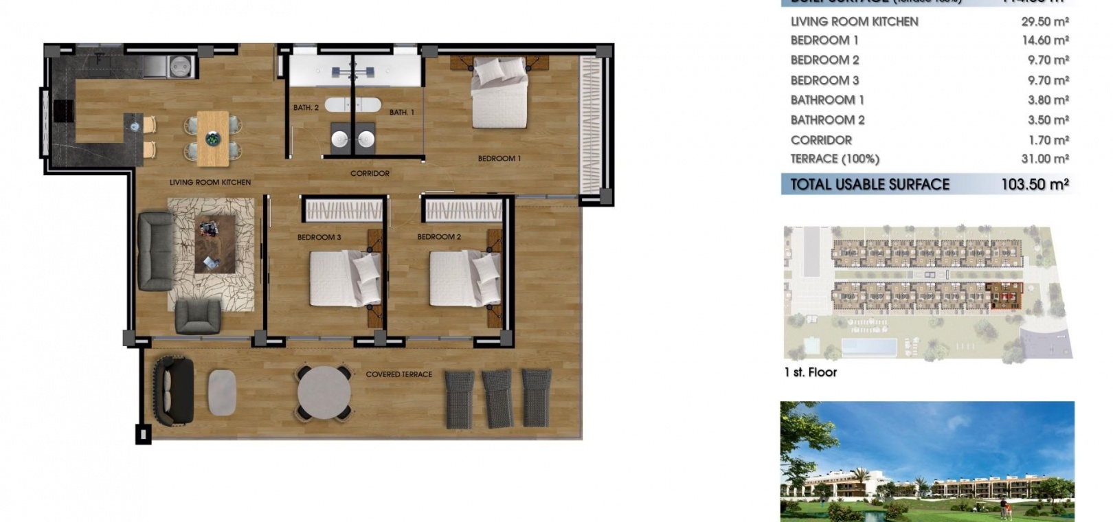 Die Wohnungen sind nach Osten mit Blick auf die Gemeinschaftsbereiche und nach Westen mit wunderbarem Blick auf den Golfplatz ausgerichtet.