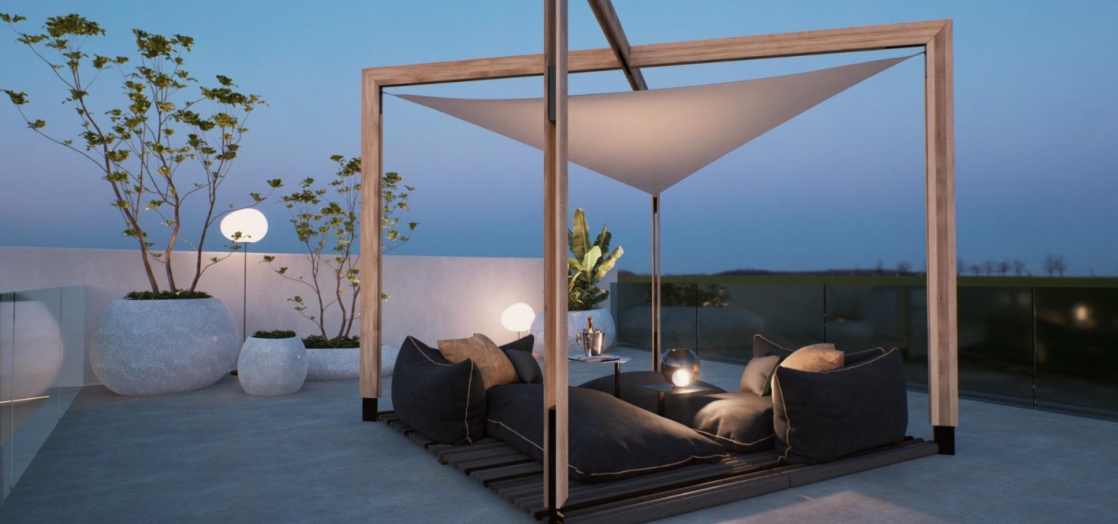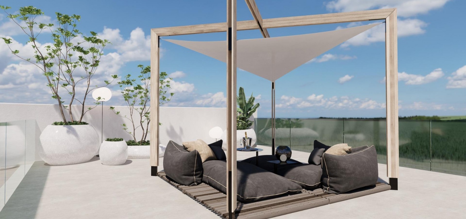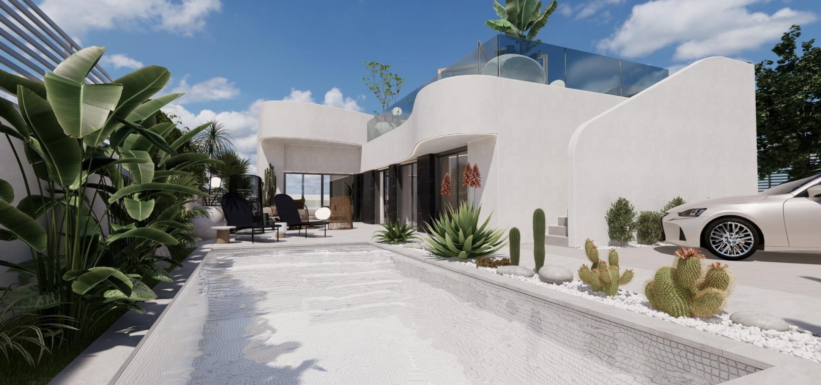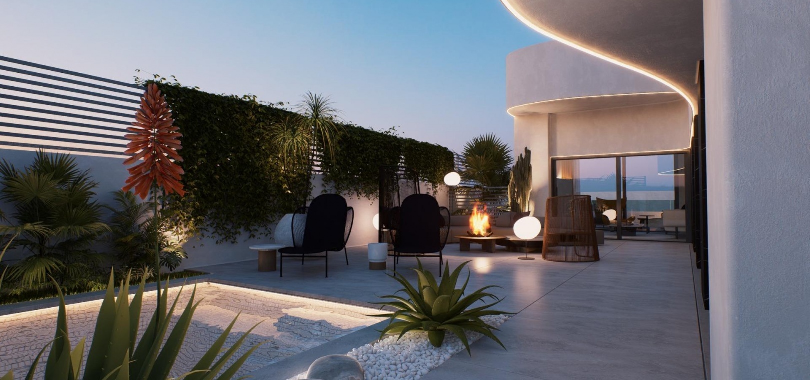 Die Gärten sind Räume, die uns bei unseren Entwicklungen am Herzen liegen, ideal zum Entspannen und Genießen. Vom Garten- und Poolbereich aus haben Sie Zugang zum gesamten Anwesen.