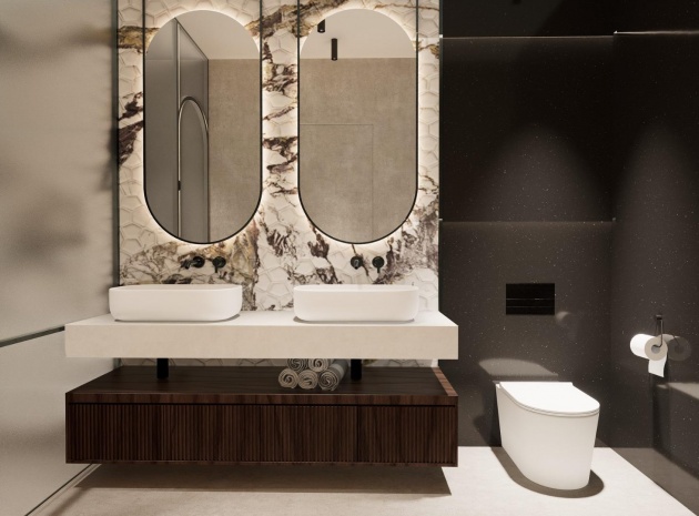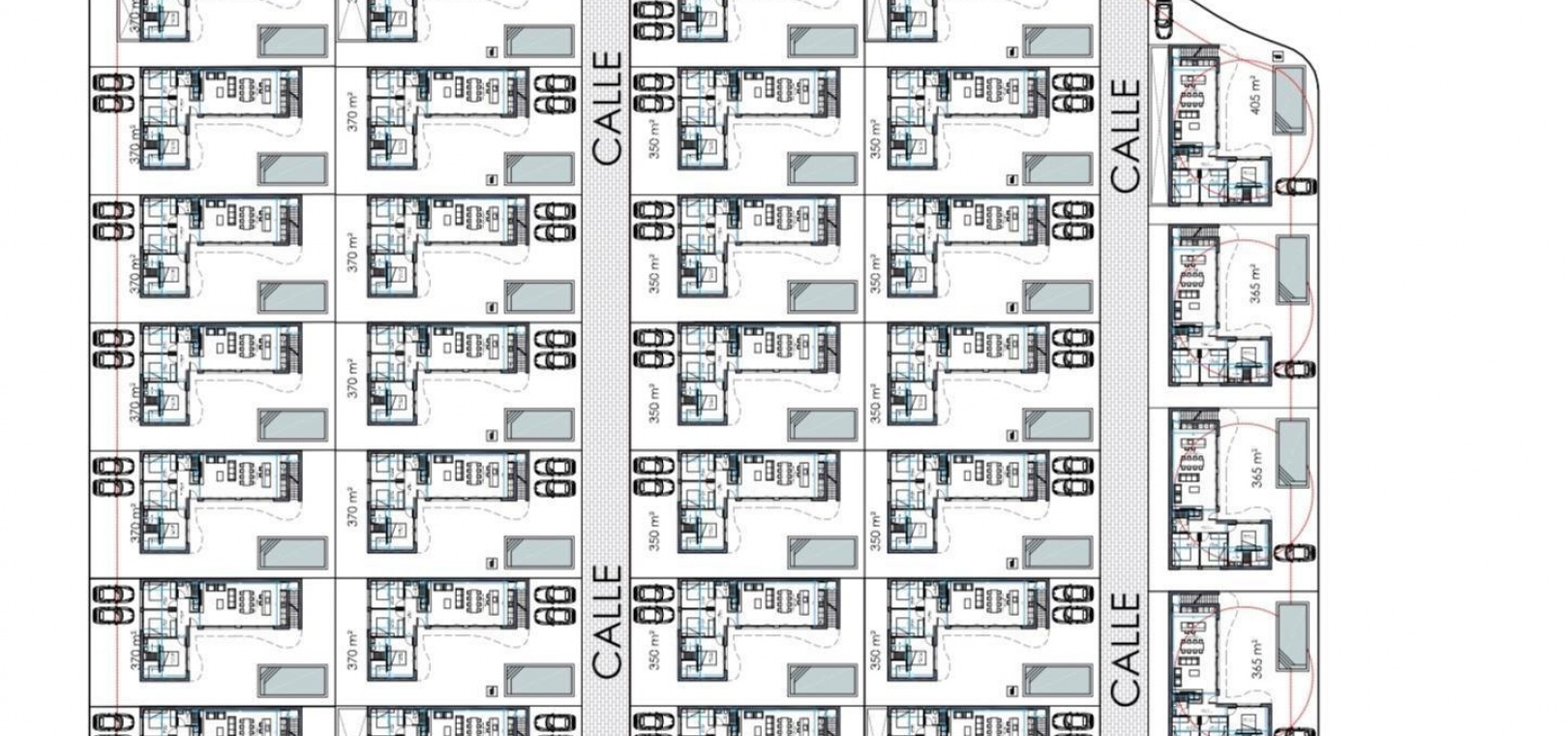 Jede dieser geräumigen Neubauvillen ist ca. 125 m2 groß und bietet die Möglichkeit, die Materialien nach dem Geschmack des Kunden anzupassen, mit unterschiedlichen Grundstücksgrößen, von 336 m2 bis zur größten von 420 m2
