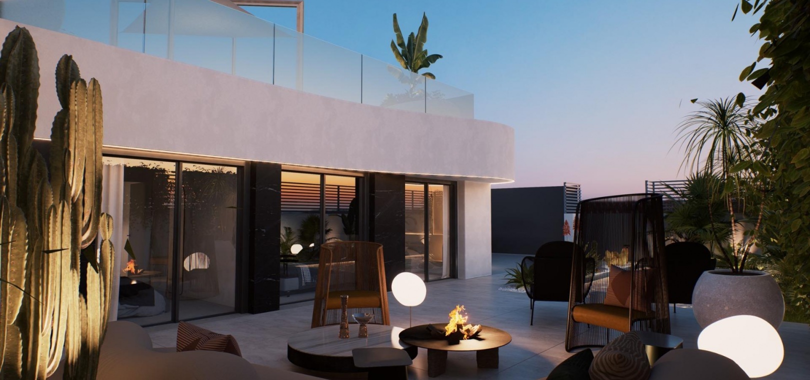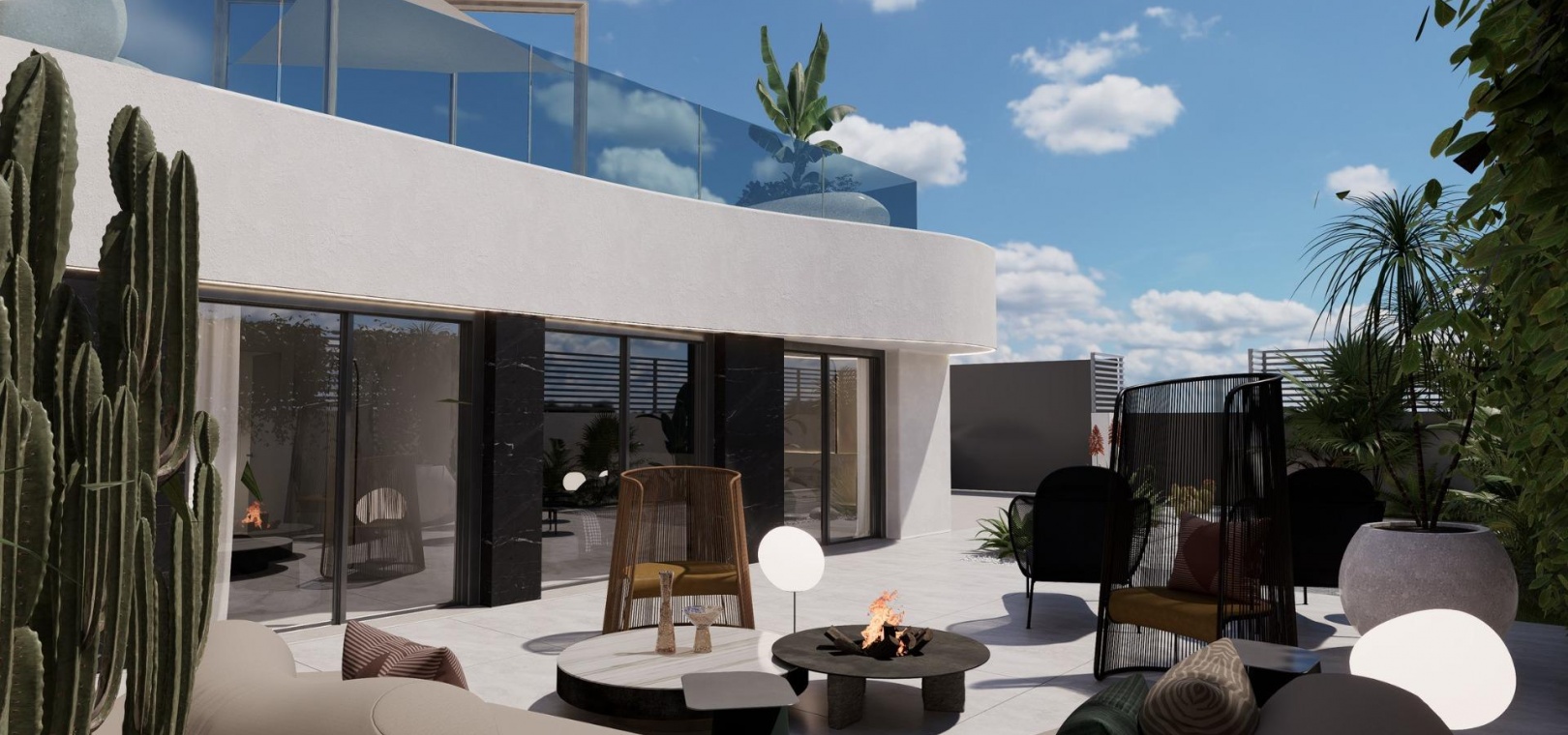 Das Design der Villen ist optimal ausgerichtet, um das ganze Jahr über eine angenehme Temperatur zu genießen. Die L-Form ermöglicht es praktisch dem gesamten Haus, Aussicht und Zugang zum geräumigen und luxuriösen Garten zu haben.