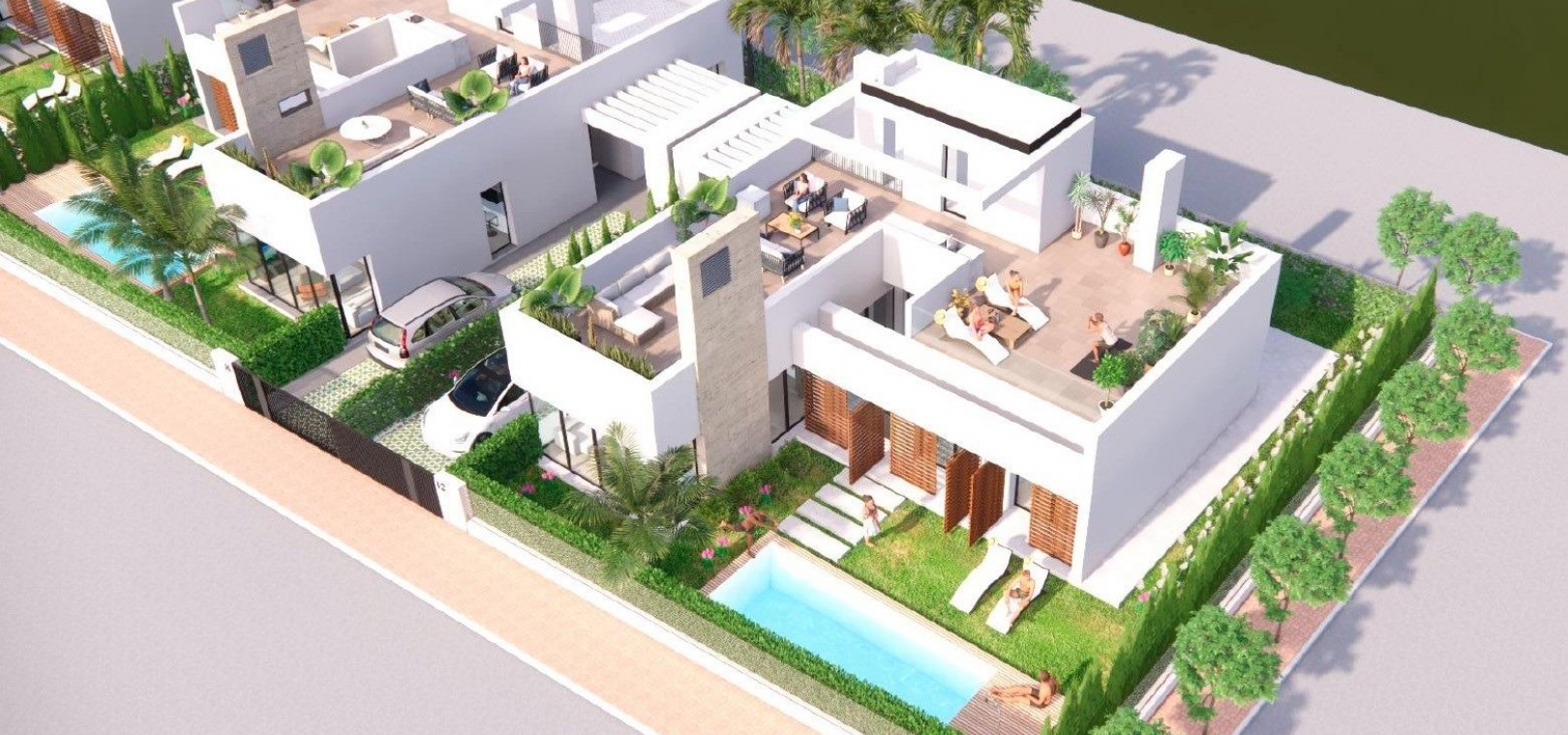 Santa Rosalia Lake and Life Resort bietet eine luxuriöse Auswahl an neu gebauten Villen zum Verkauf in einer privaten Wohnanlage in der Region Murcia. Diese modernen Villen sind von ausgezeichneten Golfplätzen umgeben und nur 10 Minuten von den Sandstränden des Mar Menor entfernt. Das exklusive Projekt besteht aus 4 unabhängigen Villen, jede mit 3 Schlafzimmern und 3 Bädern, alle auf einer einzigen Etage. Jedes Anwesen befindet sich auf einem ungefähr 400 m² großen Grundstück und bietet reichlich Platz für einen privaten Swimmingpool (3 x 7 Meter), einen offenen Keller mit natürlichem Licht und Belüftung durch einen englischen Innenhof und ein großes Solarium zum Genießen sonniger Tage.