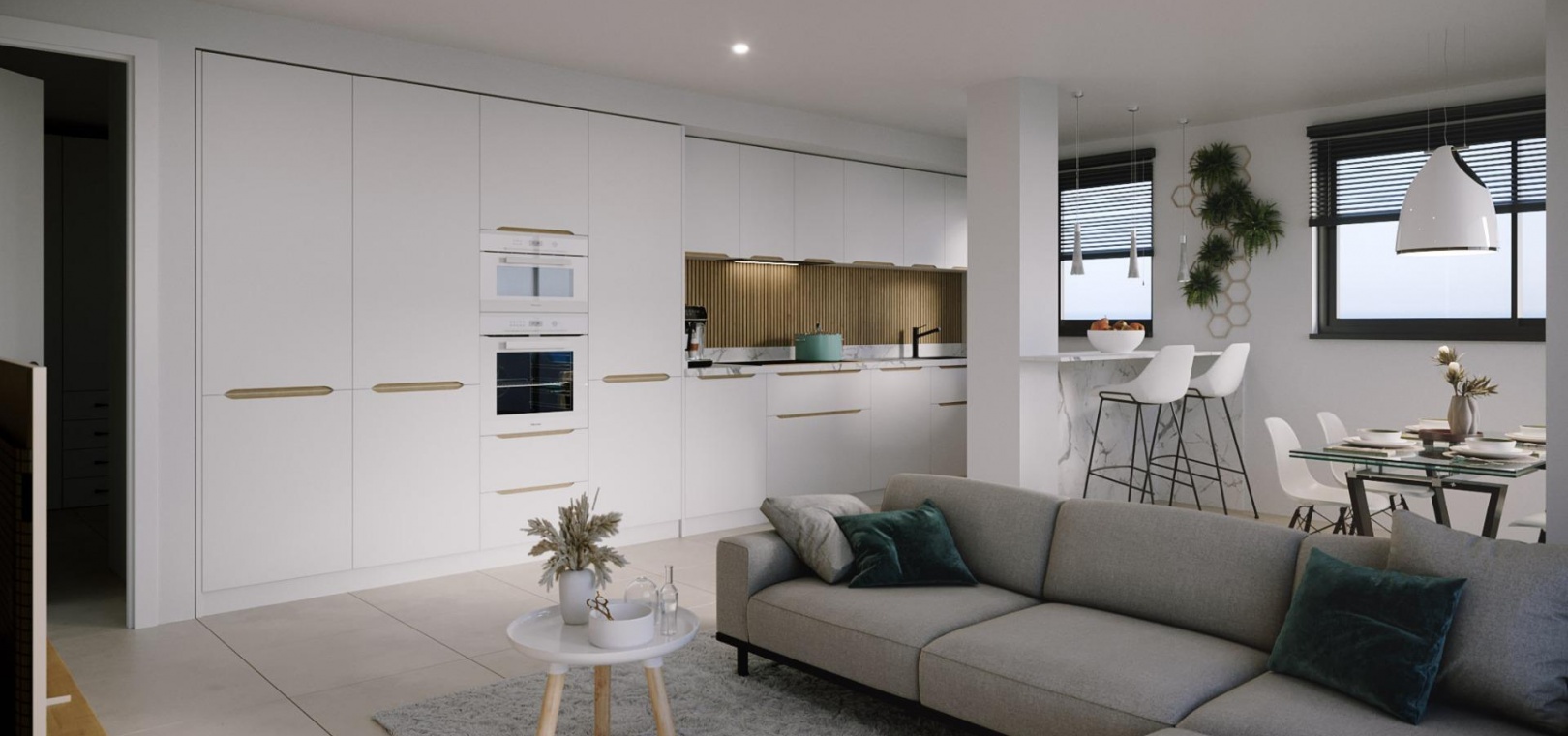 Alle Wohnungen wurden sorgfältig entworfen, um Ihnen ein außergewöhnliches Wohnerlebnis zu bieten, mit hochwertigen Ausstattungen und einem modernen Stil. Genießen Sie die großzügigen Terrassen, auf denen Sie sich entspannen, im Freien essen und die spektakulärsten Sonnenuntergänge beobachten können.