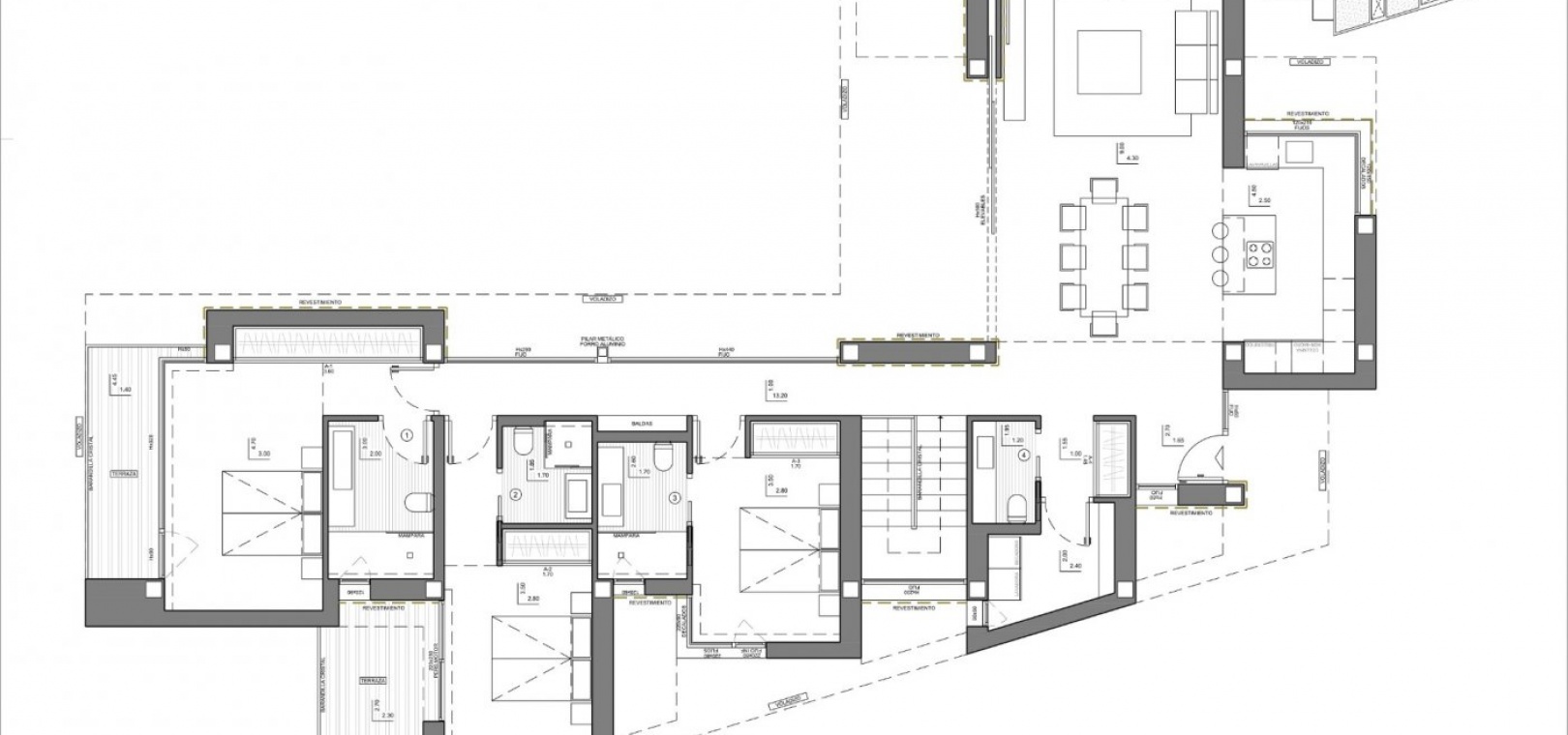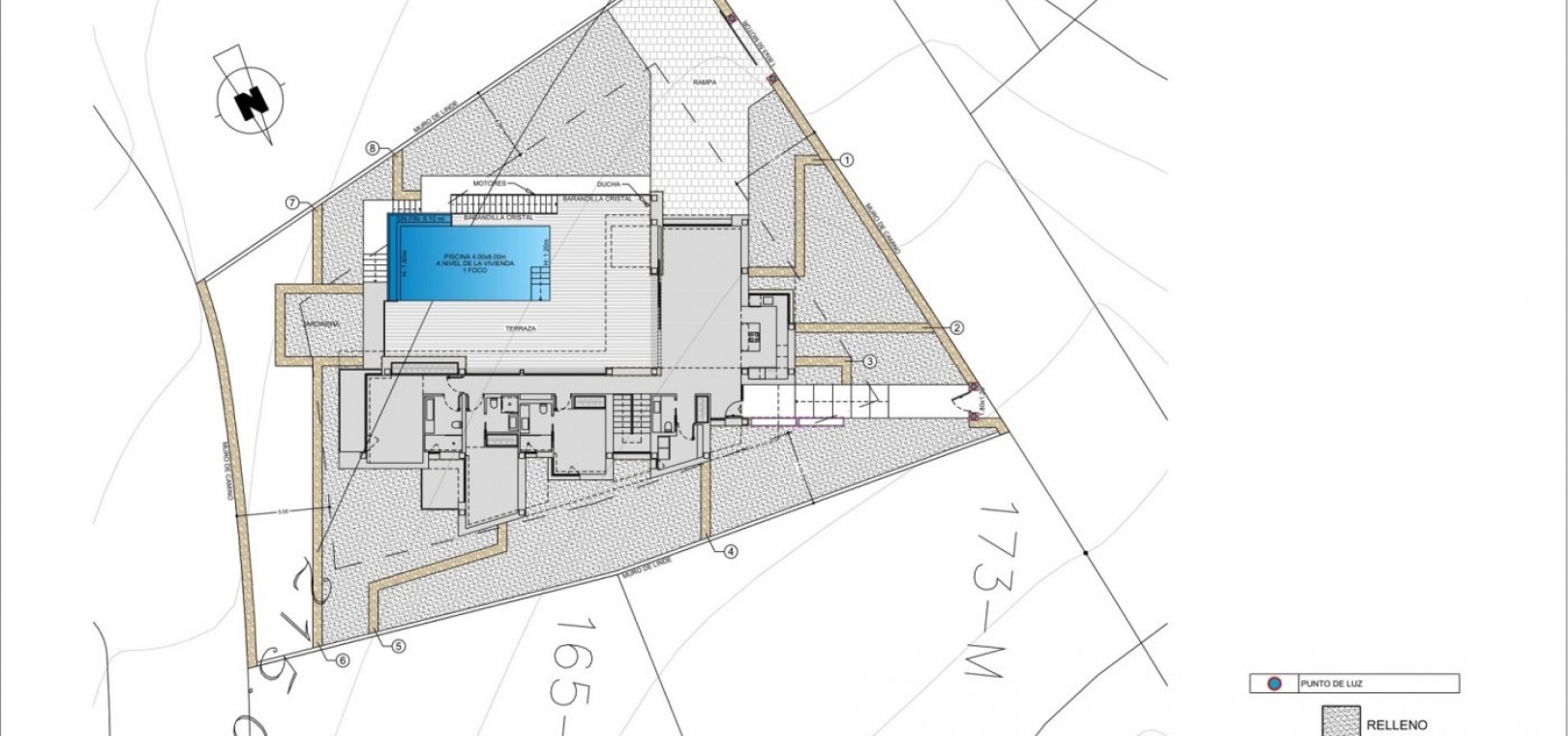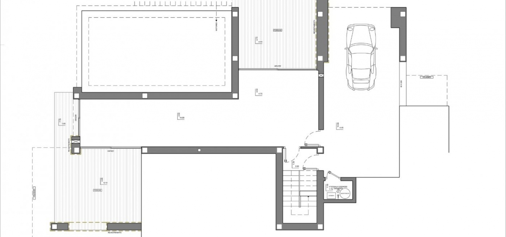 Die mehr als 70 m² große Terrasse wird von einem Infinity-Pool dominiert. Das Haus wird durch einen Mehrzweckkeller mit zwei Veranden und einer Garage vervollständigt.