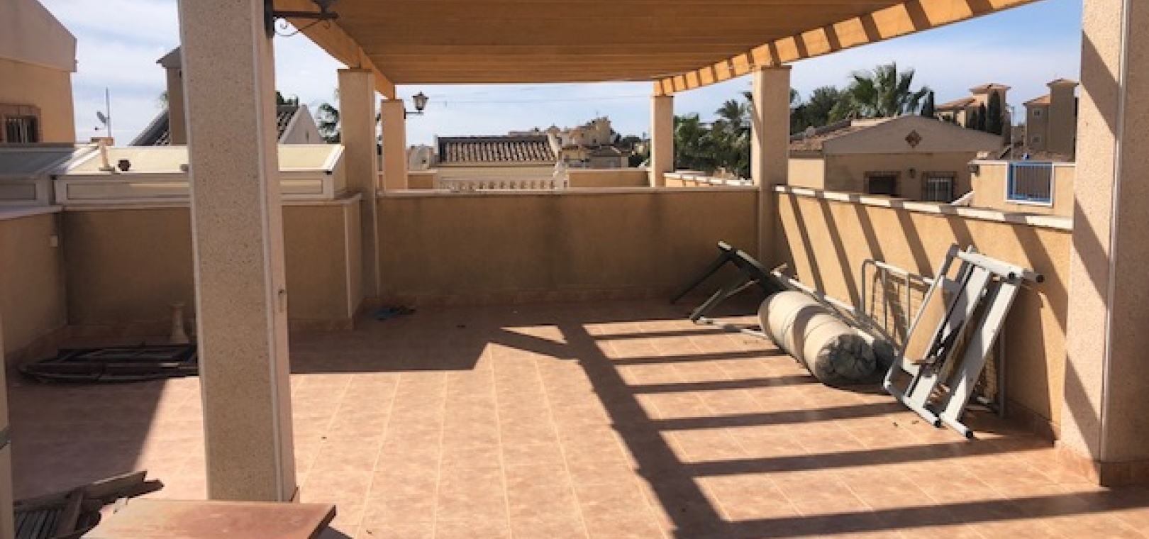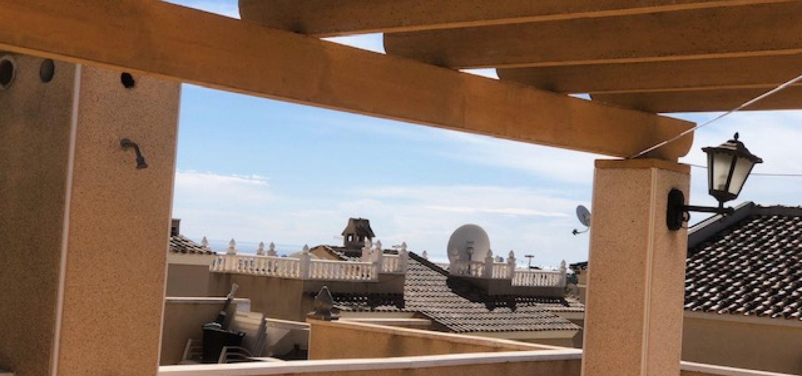 Ein Bungalow mit 2 Schlafzimmern und 1 Bad und privatem Solarium auf dem Dach in El Galan, Villamartin, Costa Blanca.