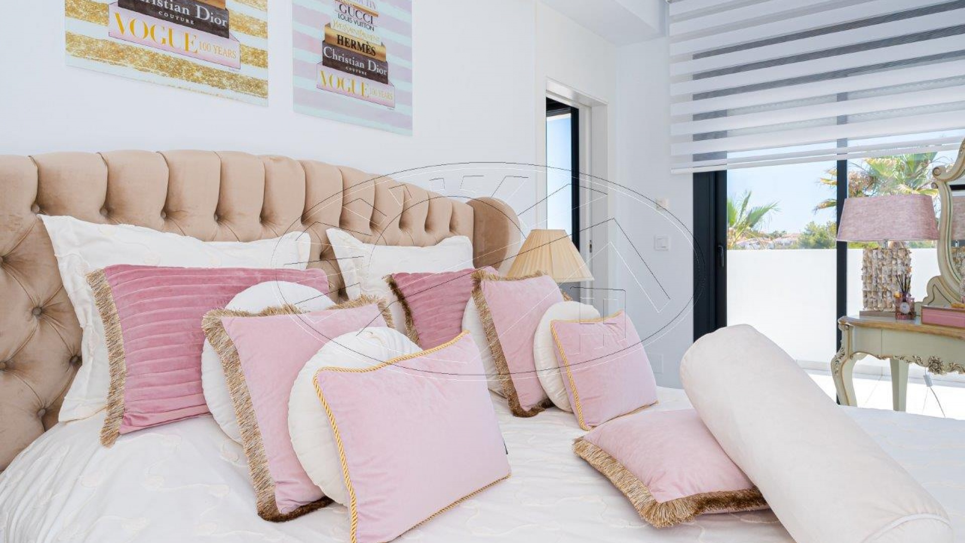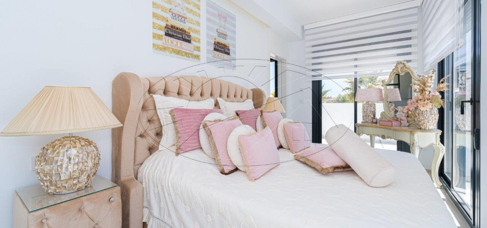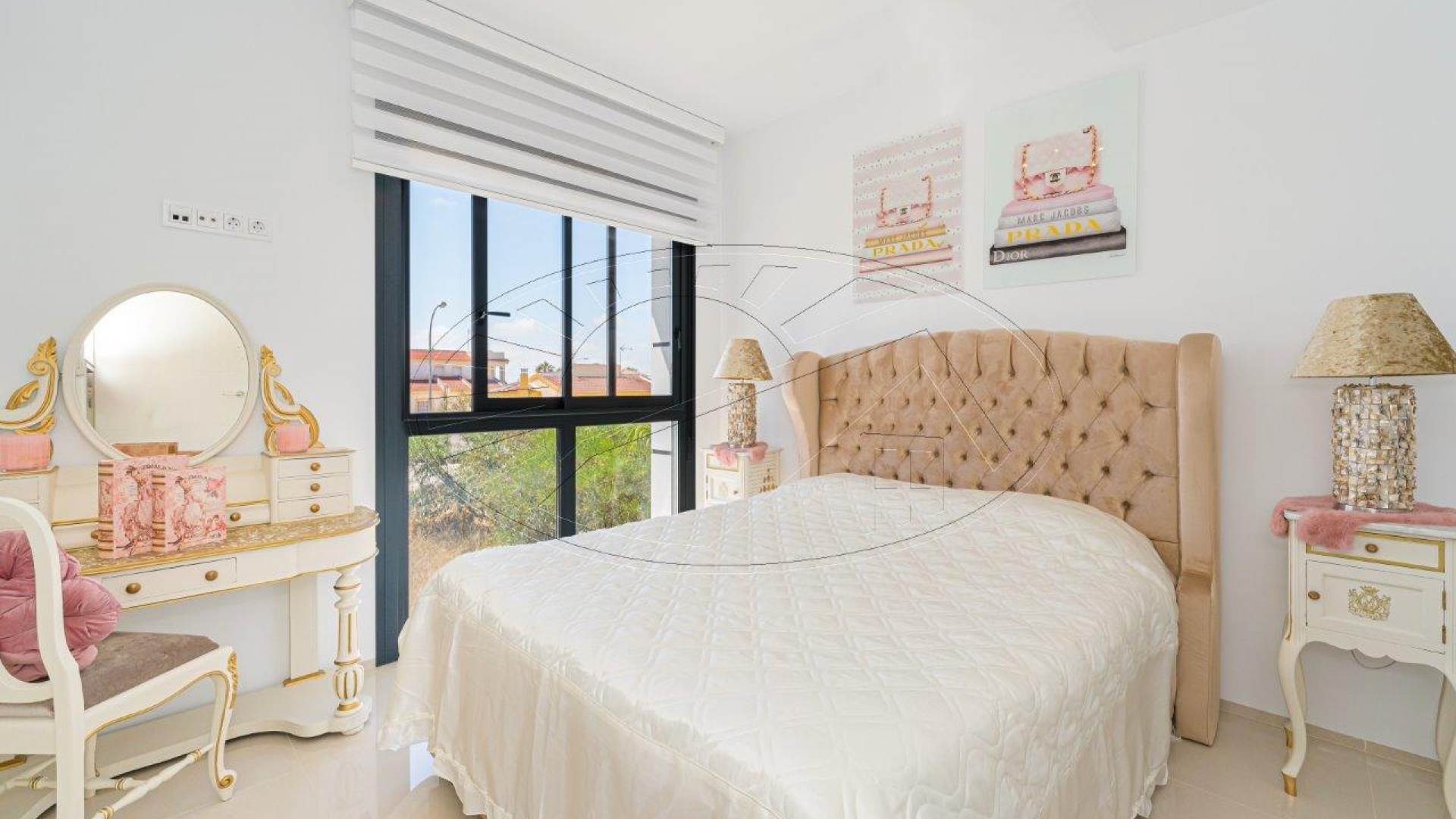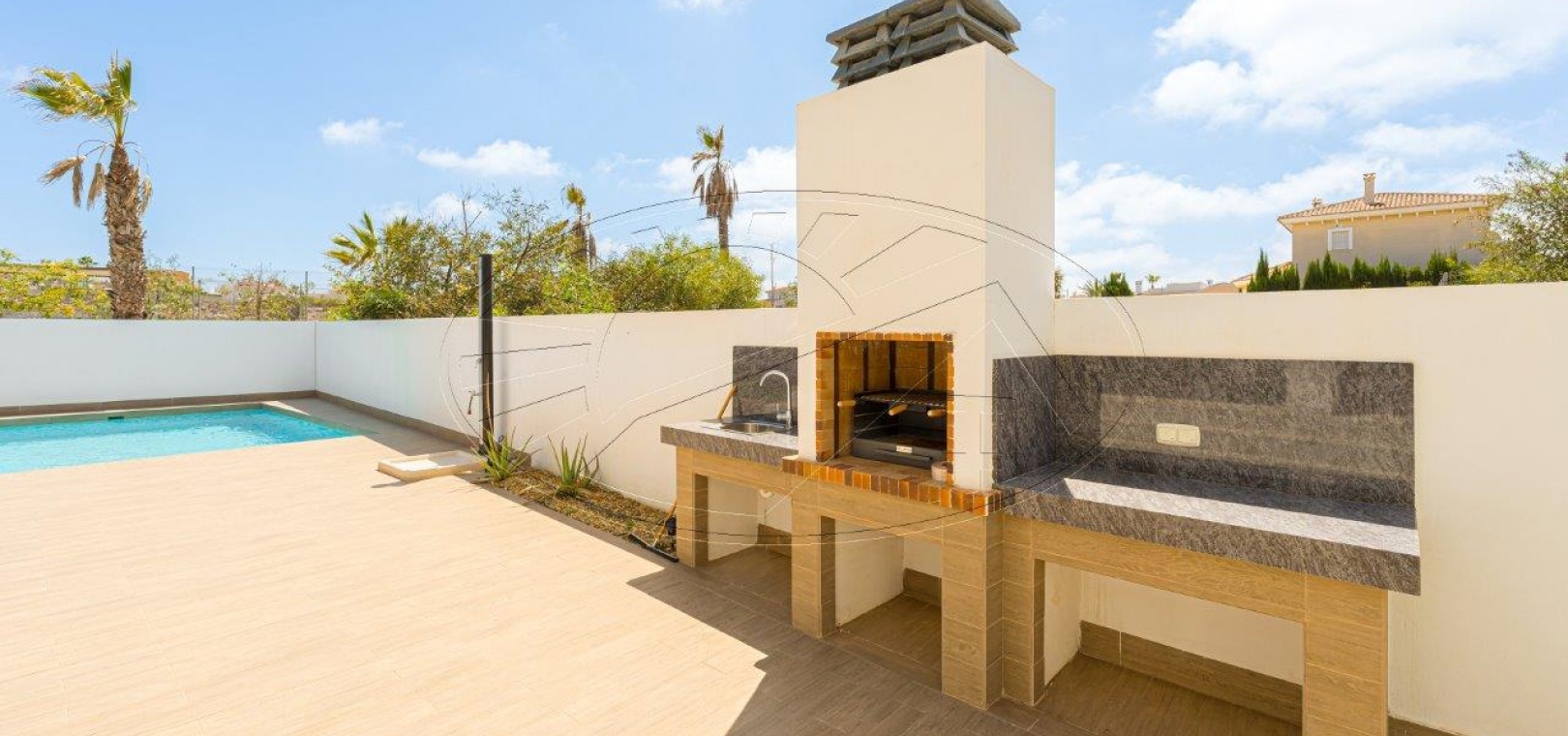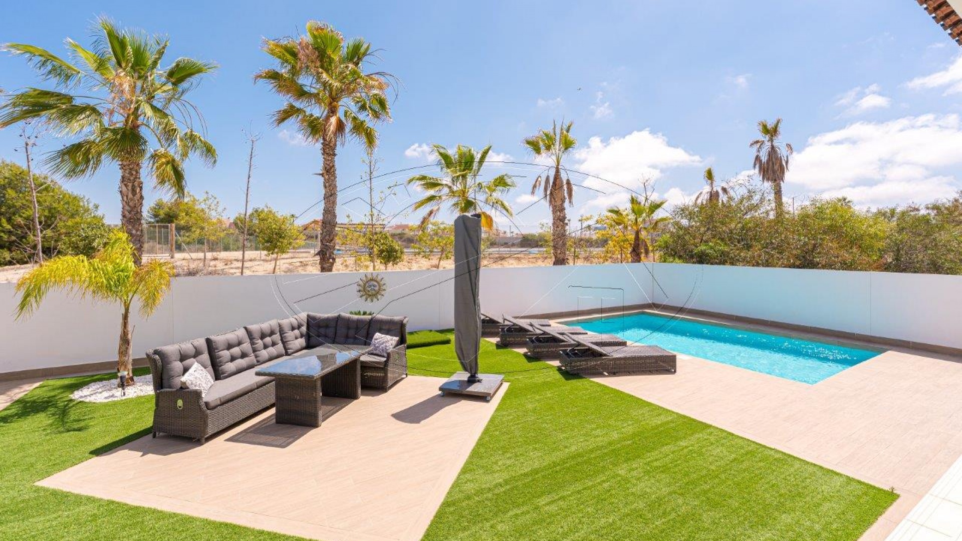 Schlafzimmer : Die Villa verfügt über 3 Schlafzimmer, von denen das Hauptschlafzimmer über einen begehbaren Kleiderschrank verfügt. Badezimmer : Es gibt 3 Badezimmer, davon 2 en suite (beide im 1. Stock). Wohnfläche : ca. 150 m² (Erdgeschoss und 1. Stock). Gesamtfläche inkl. teilweise überdachter Terrassen : 226,80 m². Grundstücksgröße : 630 m², Ausrichtung Südwesten. Baujahr : 2020, jedoch erst 2022 vom Erstbesitzer gekauft. Mehrere Terrassen und eine großzügige L-förmige Veranda : Ein Teil der Veranda kann mit Screens abgetrennt werden. Dachterrasse : 56 m². Privater Swimmingpool : 6 x 4 Meter mit Heiztuch auf einer Rolle. Parken : Privater Parkplatz für 2–3 Autos mit Carport. Lagerraum : Neben einem Lagerraum/Hauswirtschaftsraum am Haus gibt es auch einen schönen separaten Lagerraum aus Aluminium.