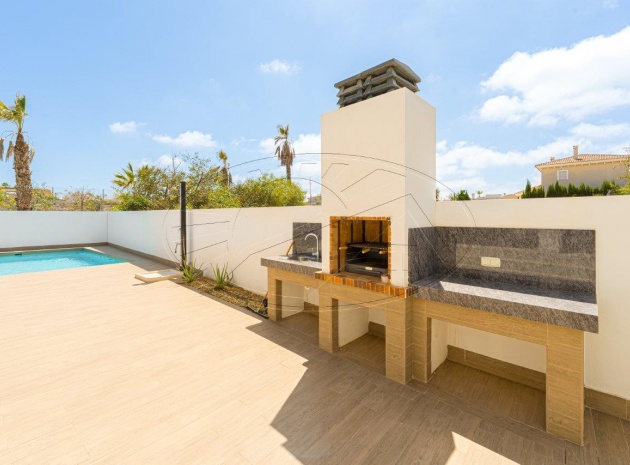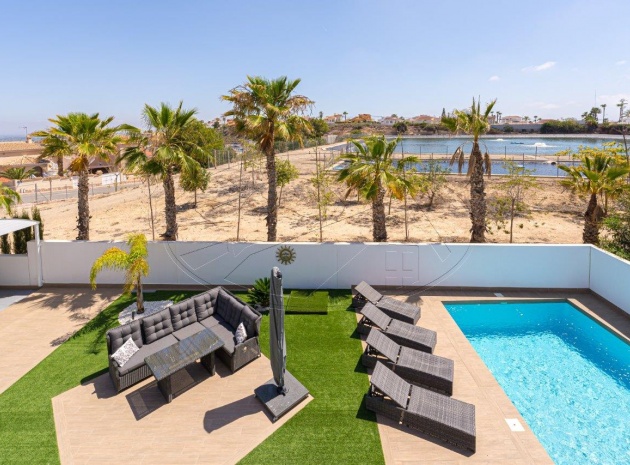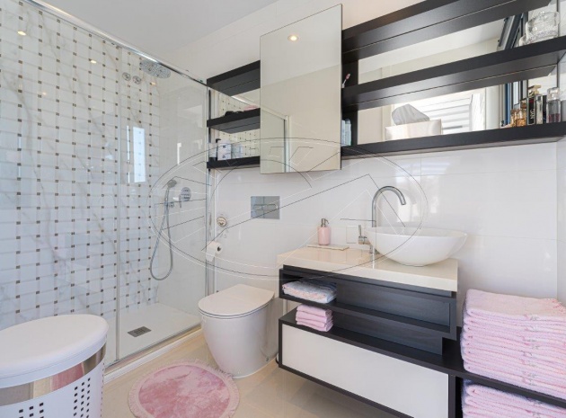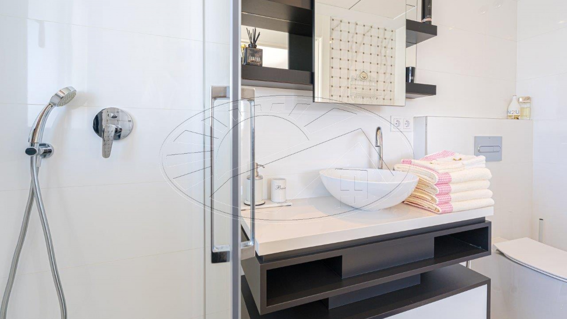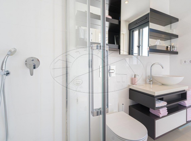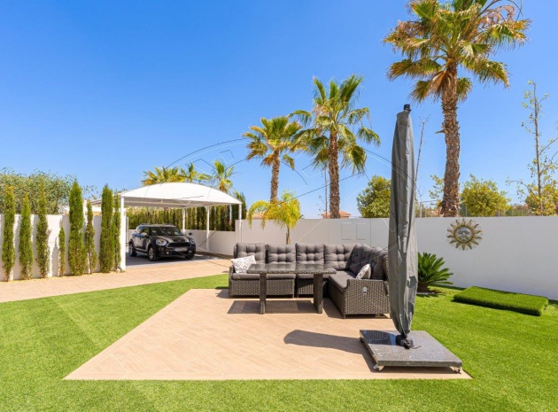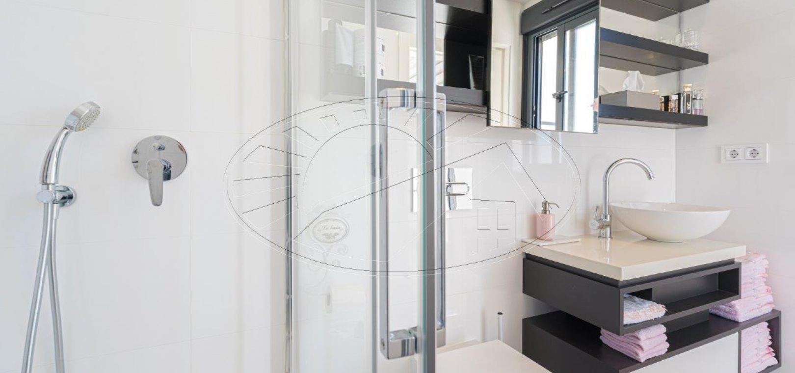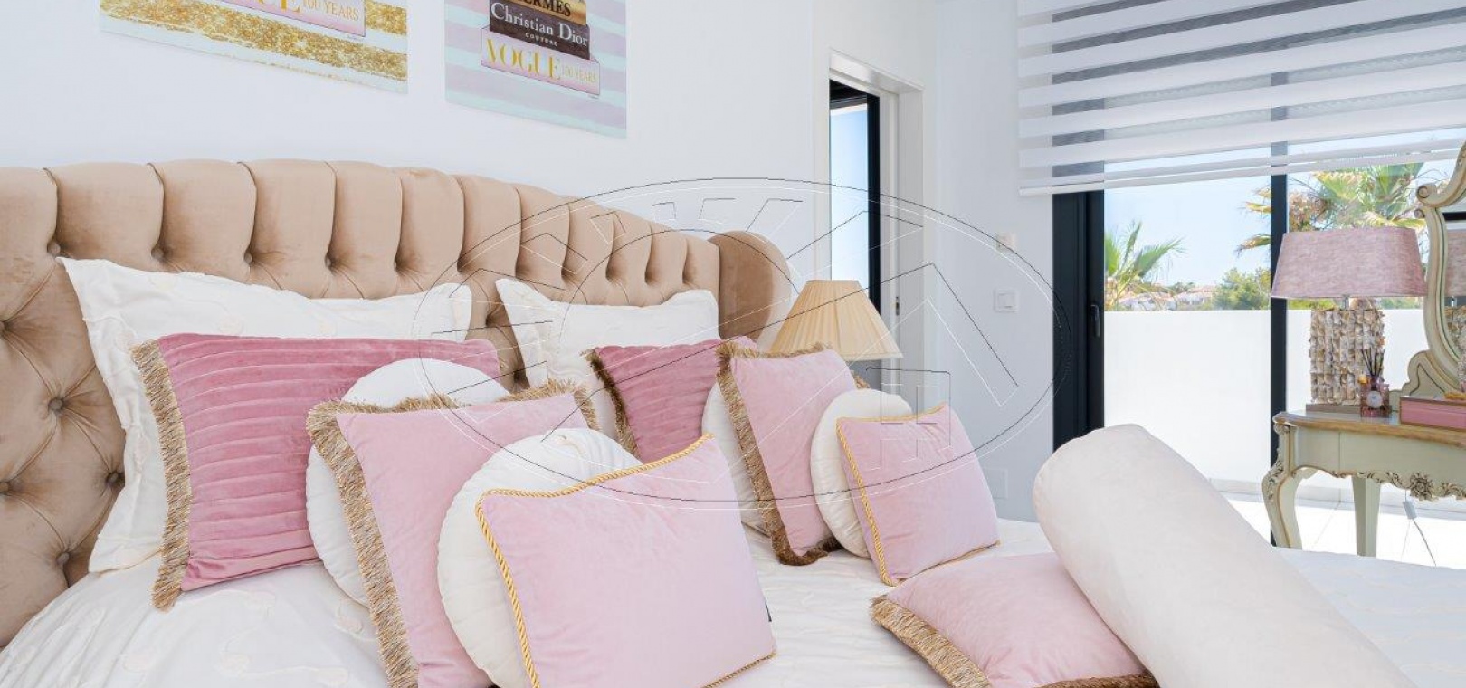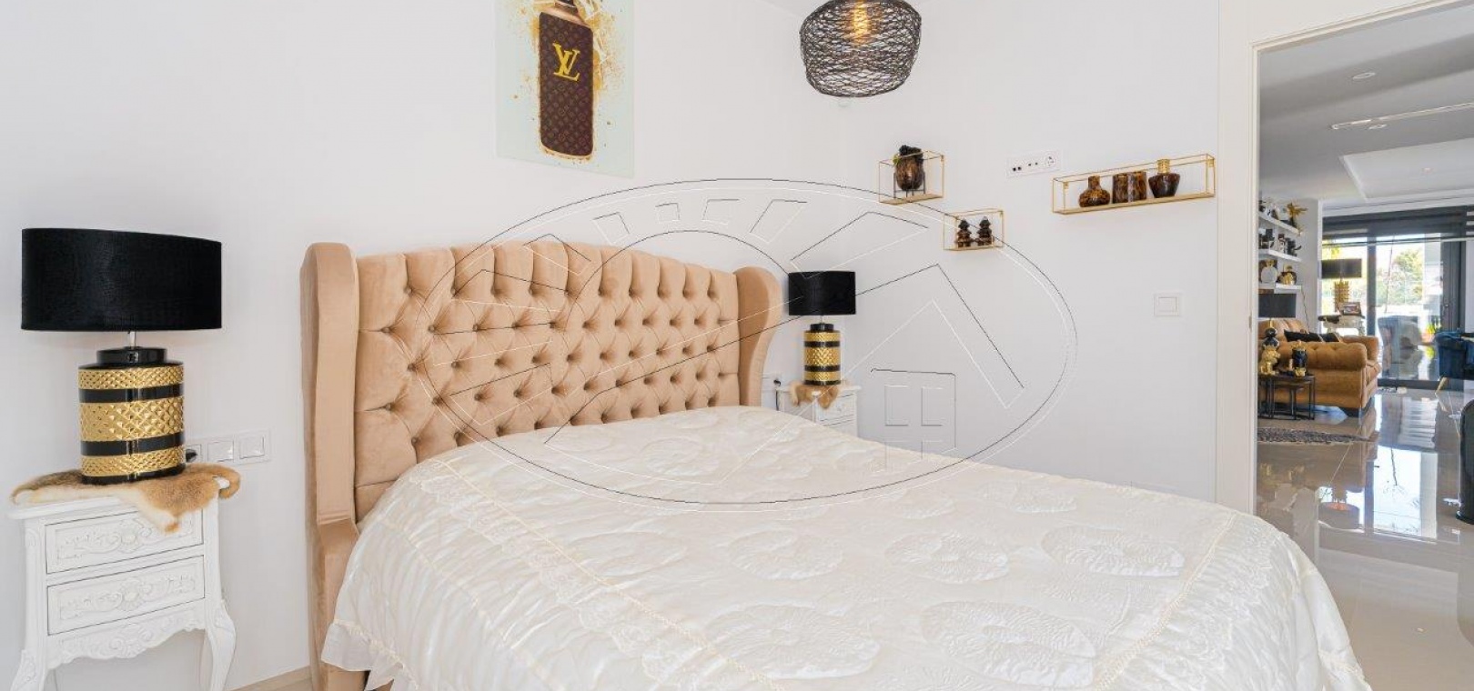 Schlafzimmer : Die Villa verfügt über 3 Schlafzimmer, von denen das Hauptschlafzimmer über einen begehbaren Kleiderschrank verfügt. Badezimmer : Es gibt 3 Badezimmer, davon 2 en suite (beide im 1. Stock). Wohnfläche : ca. 150 m² (Erdgeschoss und 1. Stock). Gesamtfläche inkl. teilweise überdachter Terrassen : 226,80 m². Grundstücksgröße : 630 m², Ausrichtung Südwesten. Baujahr : 2020, jedoch erst 2022 vom Erstbesitzer gekauft. Mehrere Terrassen und eine großzügige L-förmige Veranda : Ein Teil der Veranda kann mit Screens abgetrennt werden. Dachterrasse : 56 m². Privater Swimmingpool : 6 x 4 Meter mit Heiztuch auf einer Rolle. Parken : Privater Parkplatz für 2–3 Autos mit Carport. Lagerraum : Neben einem Lagerraum/Hauswirtschaftsraum am Haus gibt es auch einen schönen separaten Lagerraum aus Aluminium.