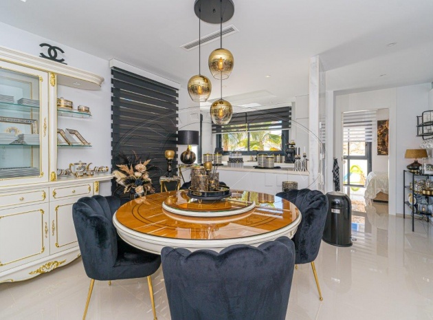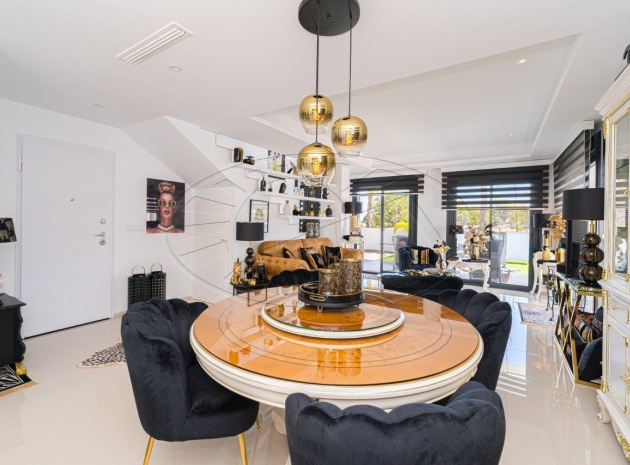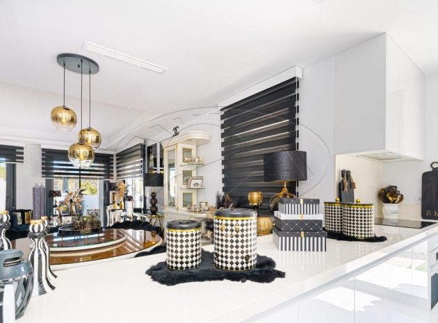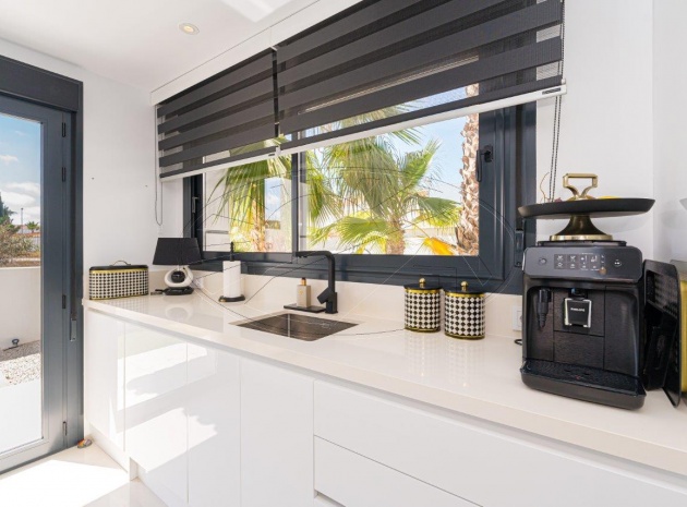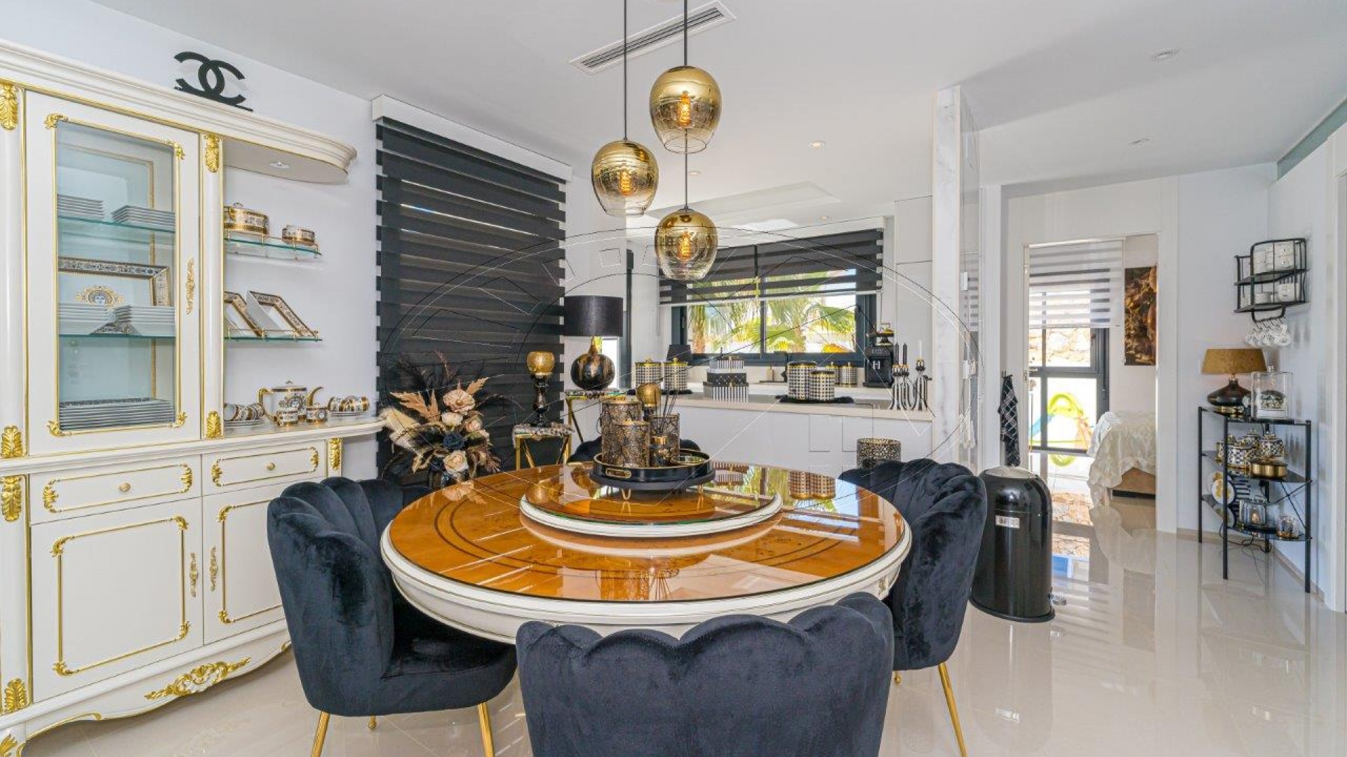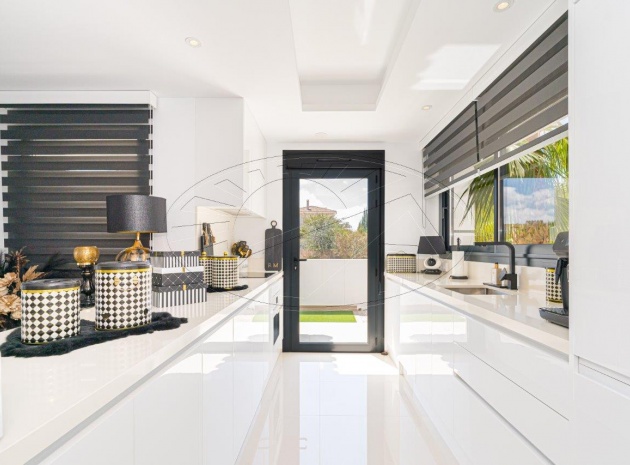 Die Villa verfügt über eine geräumige Auffahrt und einen schönen Carport. Der Eingang führt zum Essbereich und zur modernen offenen Küche mit Bosch-Einbaugeräten und einer Kochinsel. Der Sitzbereich des Wohnzimmers bietet einen Blick auf die Veranda, den Garten und den Swimmingpool. Im Erdgeschoss gibt es außerdem ein geräumiges Badezimmer mit ebenerdiger Dusche, Toilette und Badezimmermöbeln sowie ein Doppelzimmer mit Einbauschrank und viel Licht.