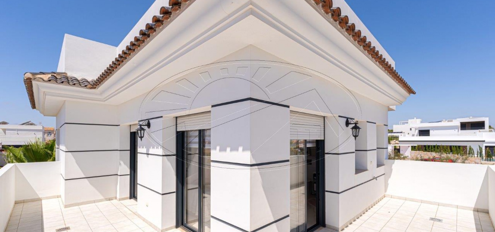 Die 56 m² große Dachterrasse bietet einen atemberaubenden Blick auf das gesamte Veja Baja-Tal und sogar ein Stück des Mittelmeers. Auf der Dachterrasse gibt es mehrere Steckdosen und Vorbereitungen für einen Whirlpool. Kurz gesagt, ein einzigartiger Ort, um Ruhe, Luxus und die wunderschöne Landschaft zu genießen.