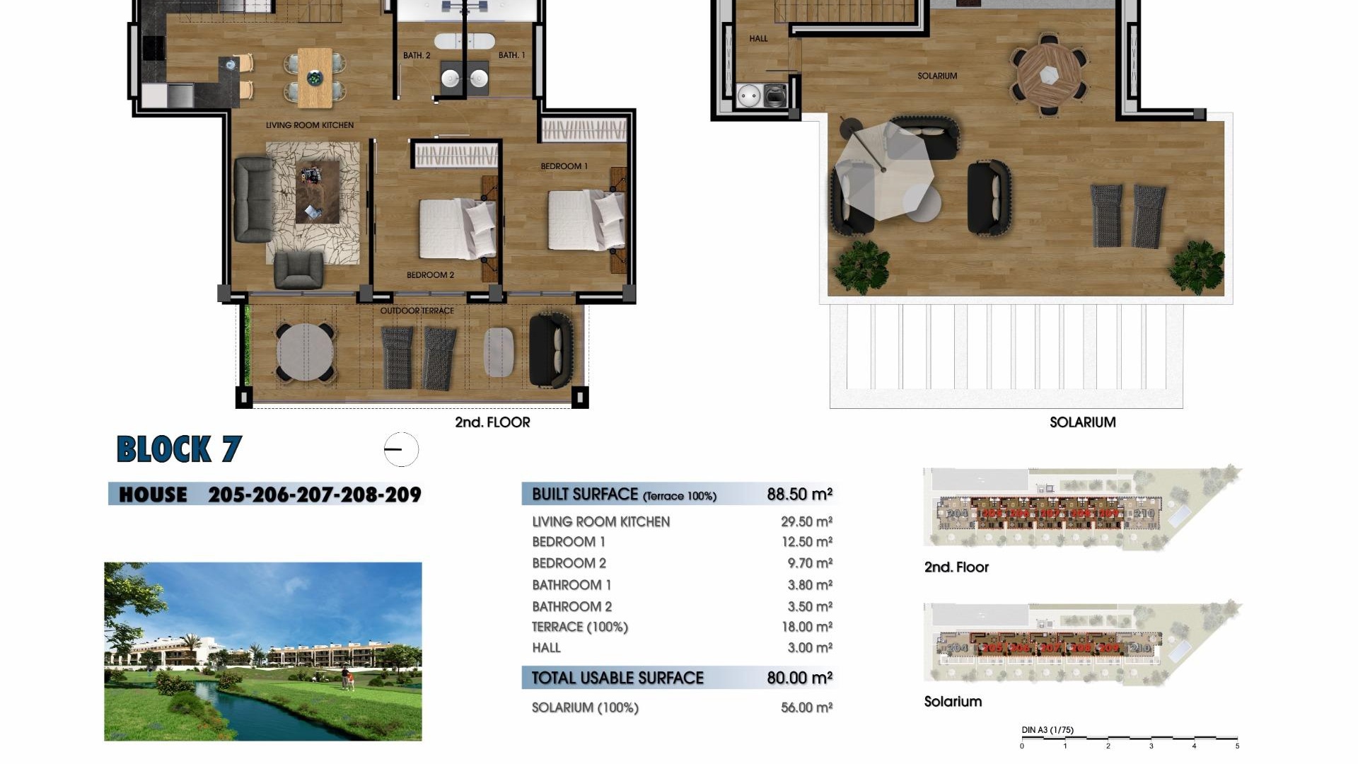 Dieser erstaunliche Komplex wird aus 244 Wohnungen mit 2 und 3 Schlafzimmern bestehen, die in 8 Blöcke und 20 private Villen aufgeteilt sind.