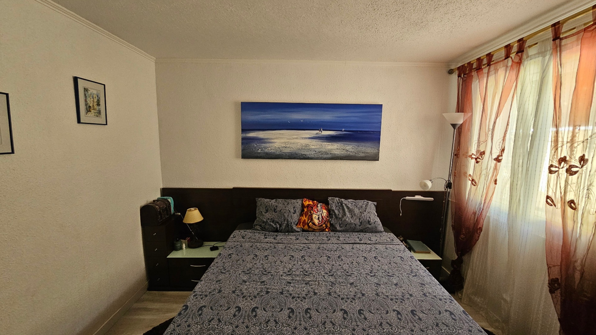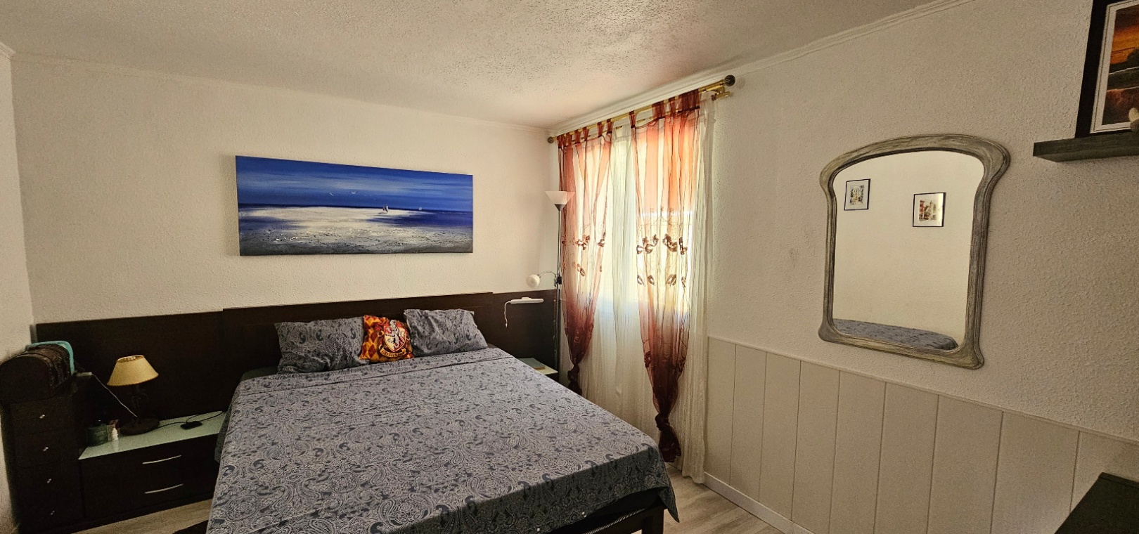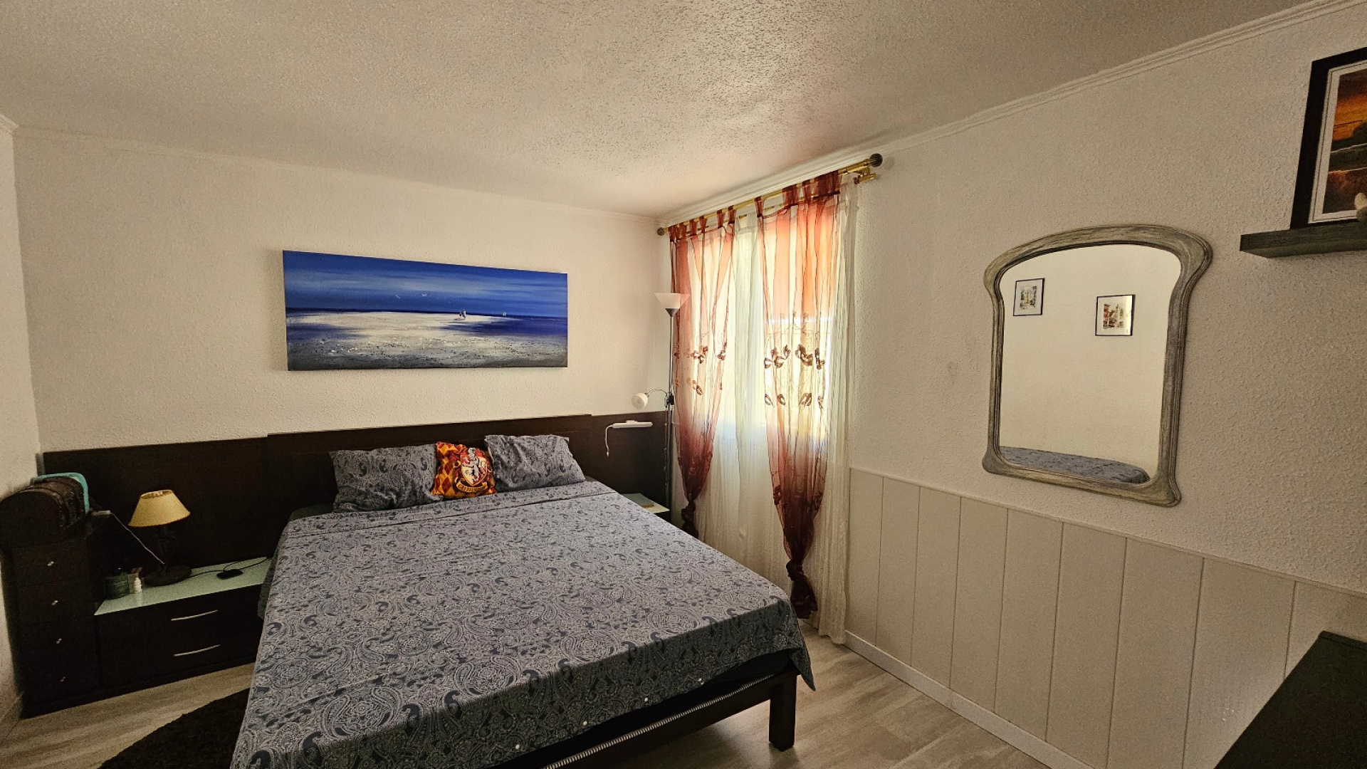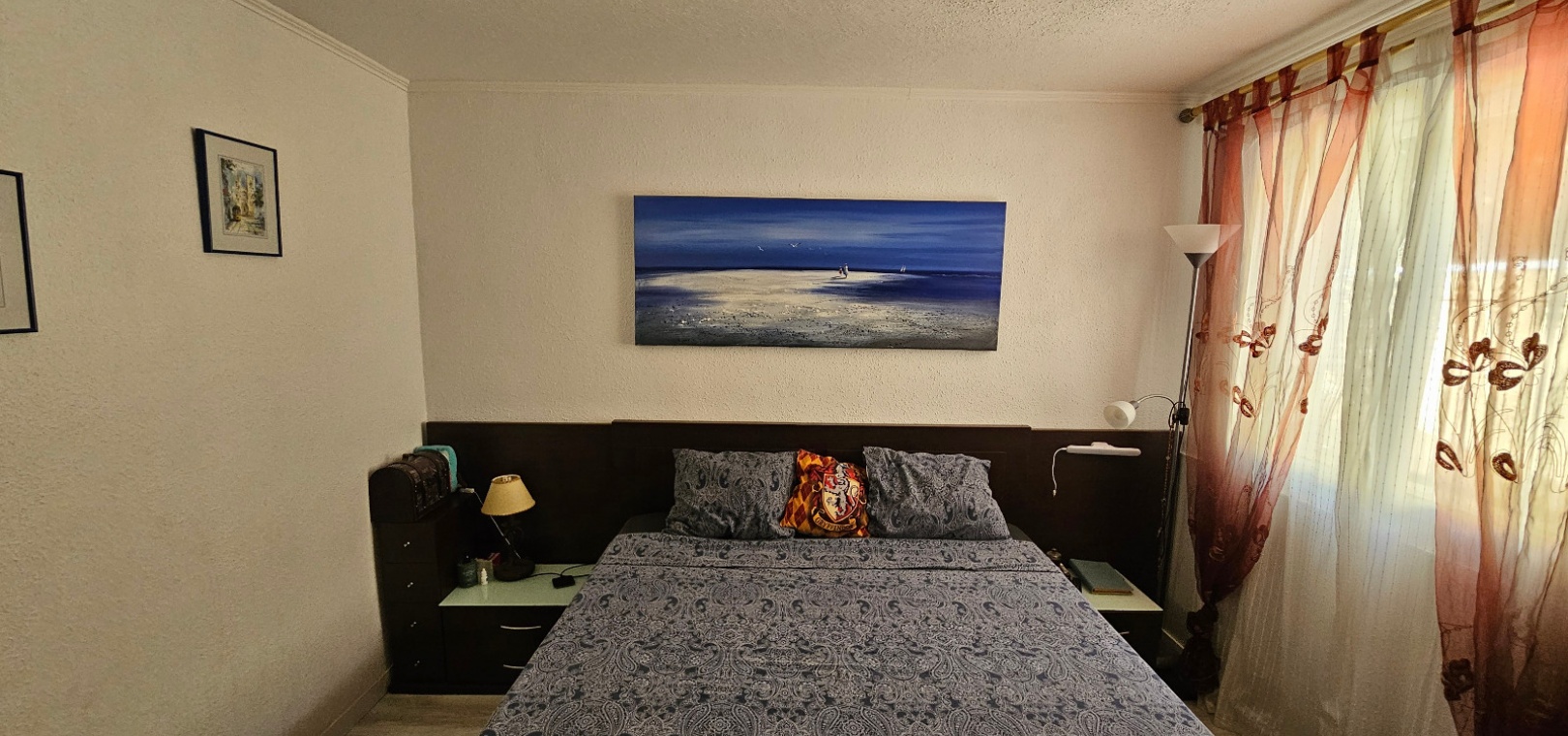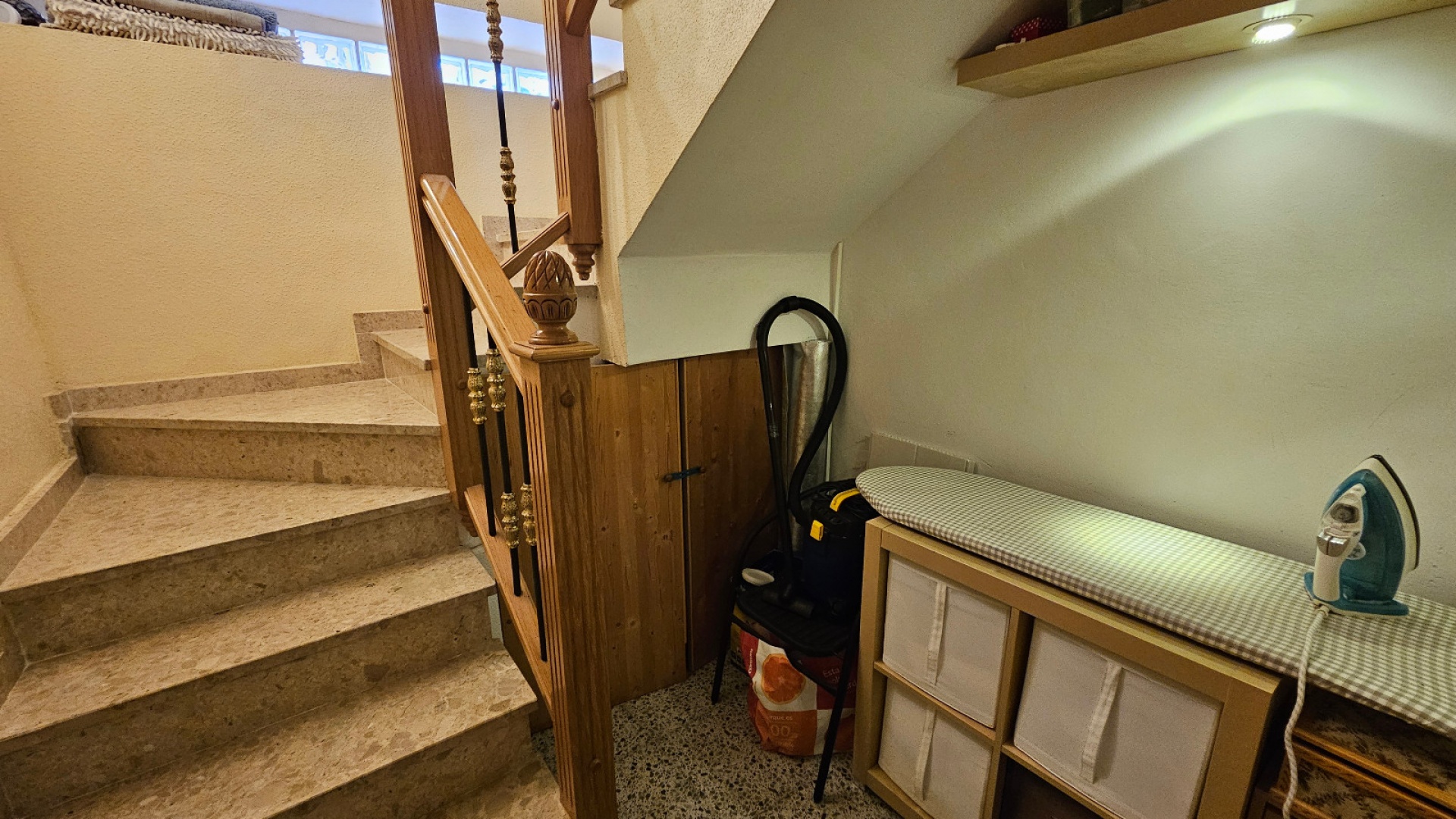 Auf der 1. Etage befinden sich 2 Doppelzimmer, beide mit Einbauschränken und Klimaanlage warm/kalt, 1 großes Familienbadezimmer und 1 großer sonniger Balkon mit Meerblick.